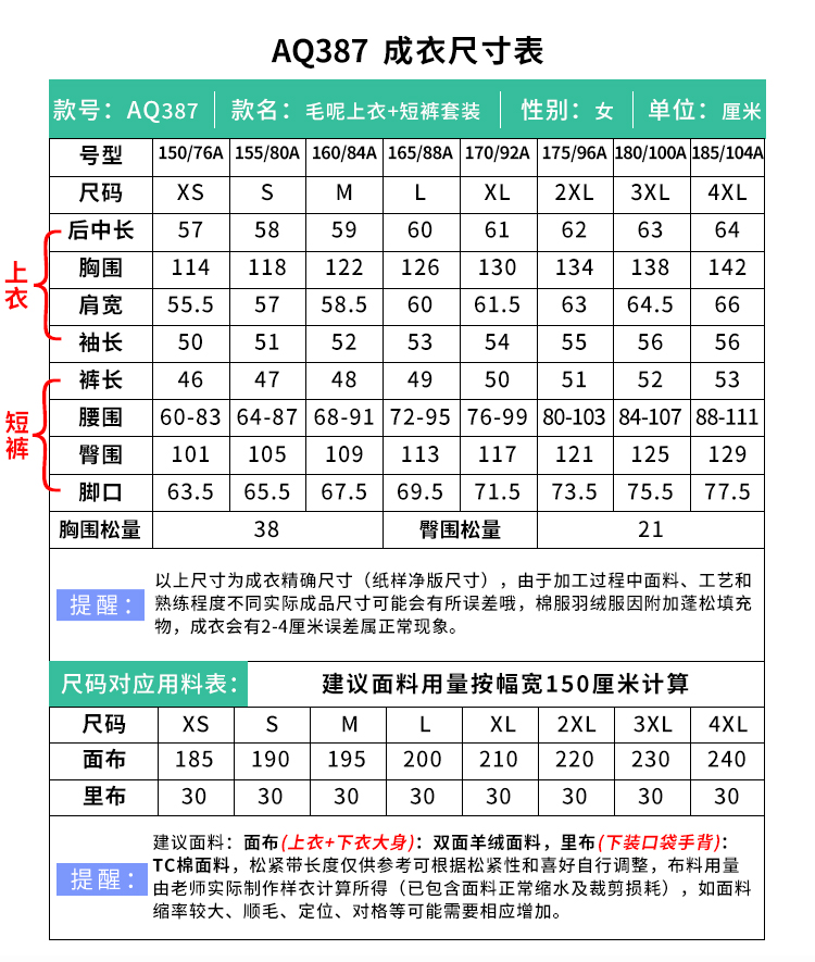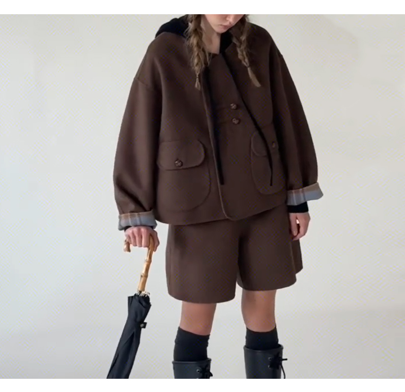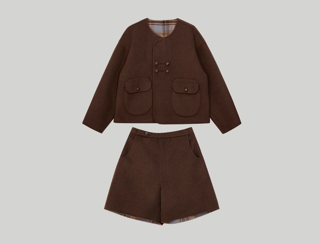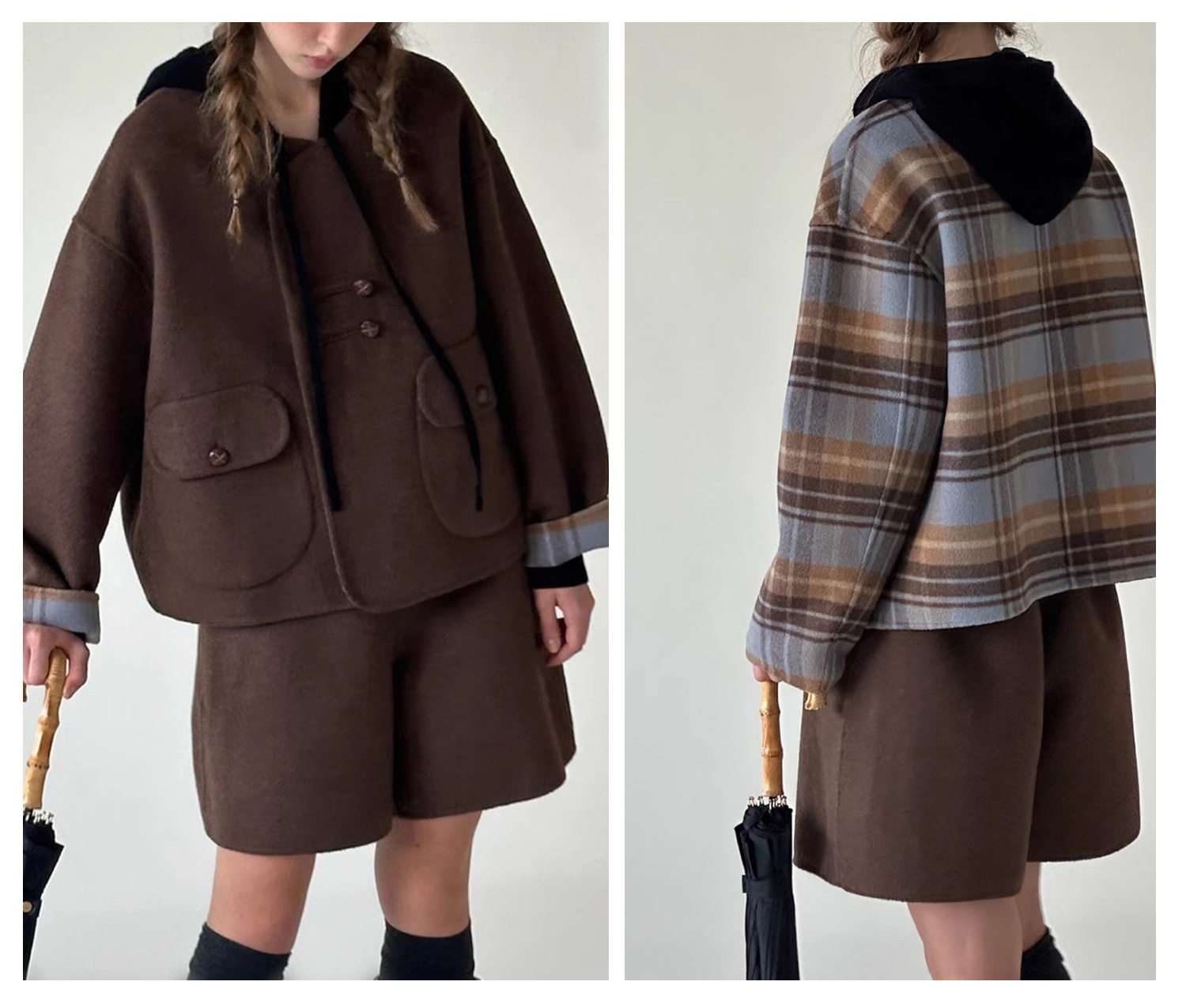 裁缝学苑AQ387双面呢两穿双排扣短款大衣短裤套装纸样女装样板