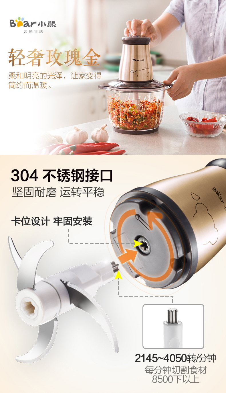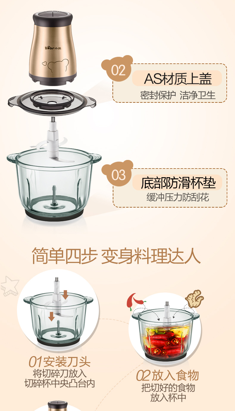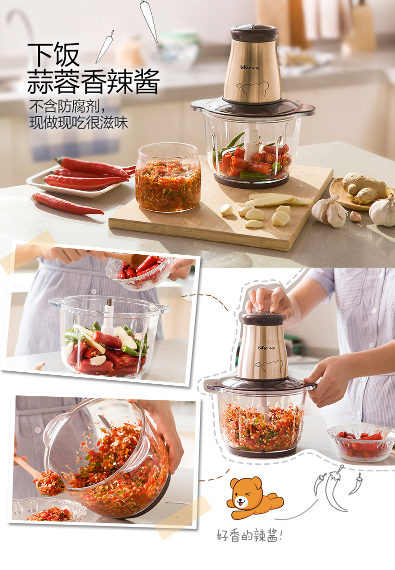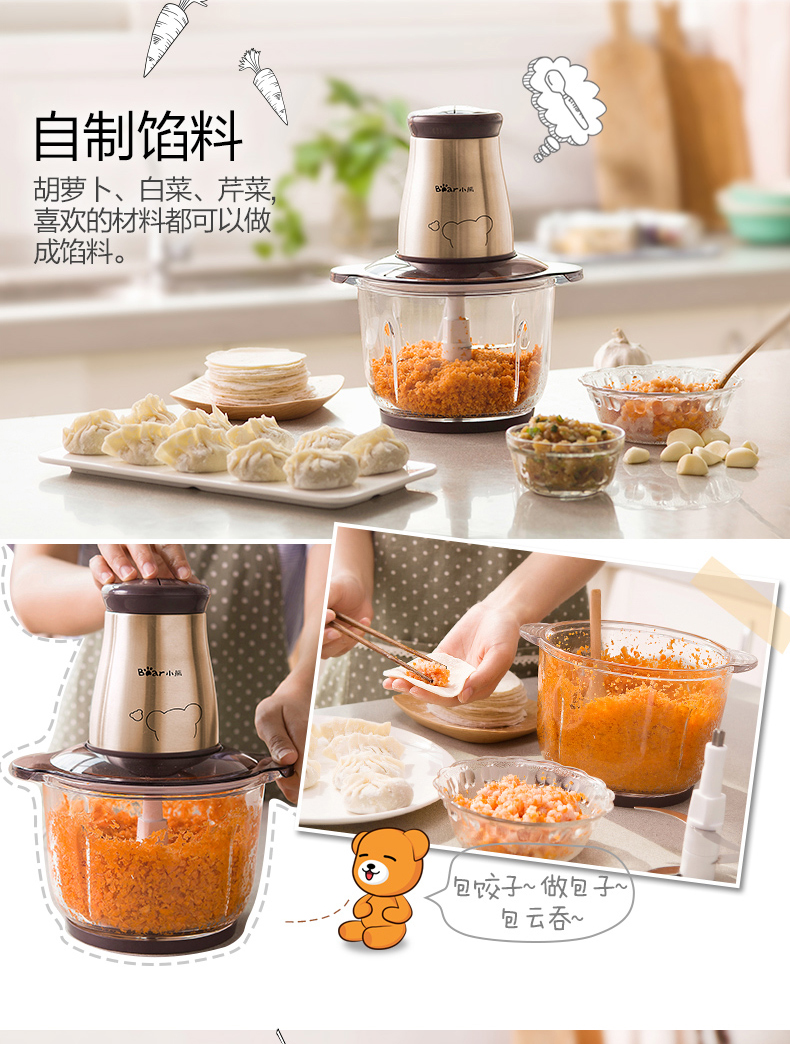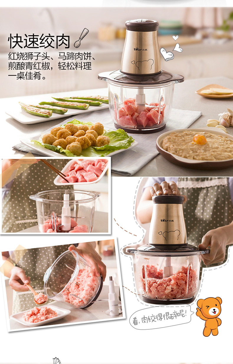 小熊料理机绞肉机 家用电动小型 搅拌打肉馅 蒜泥 神器 切碎机 辅食机