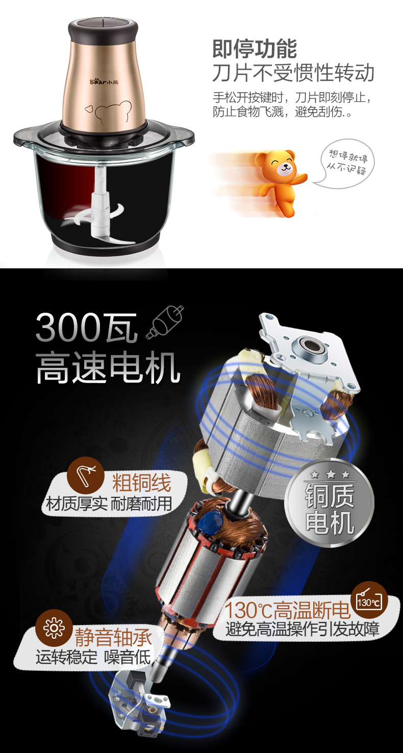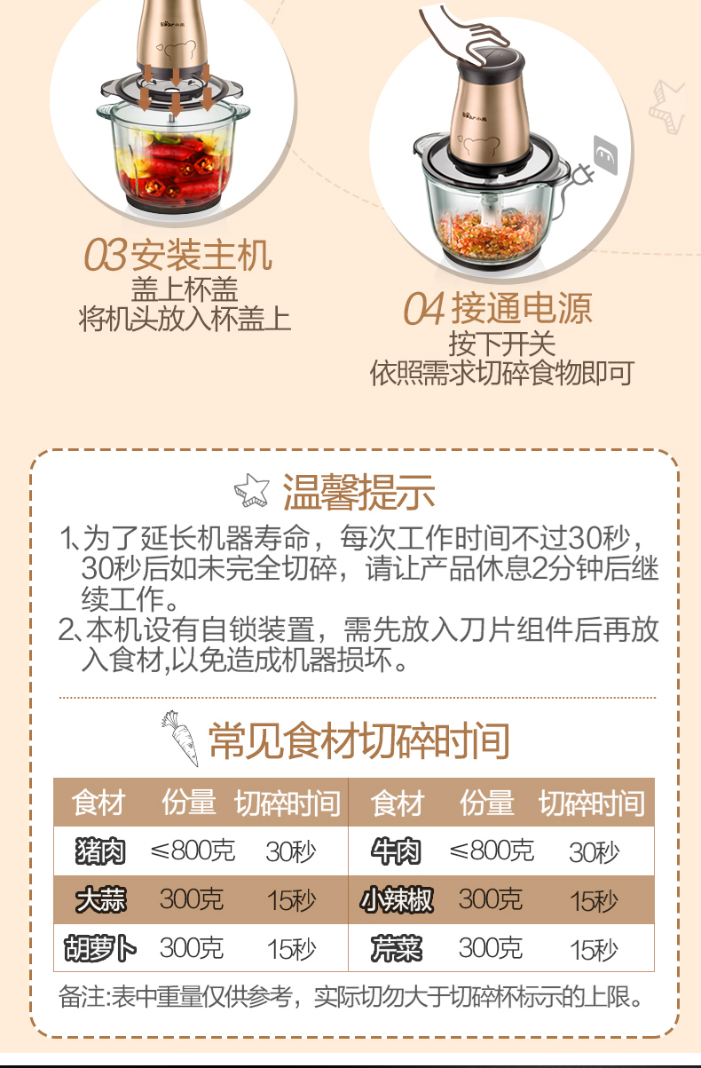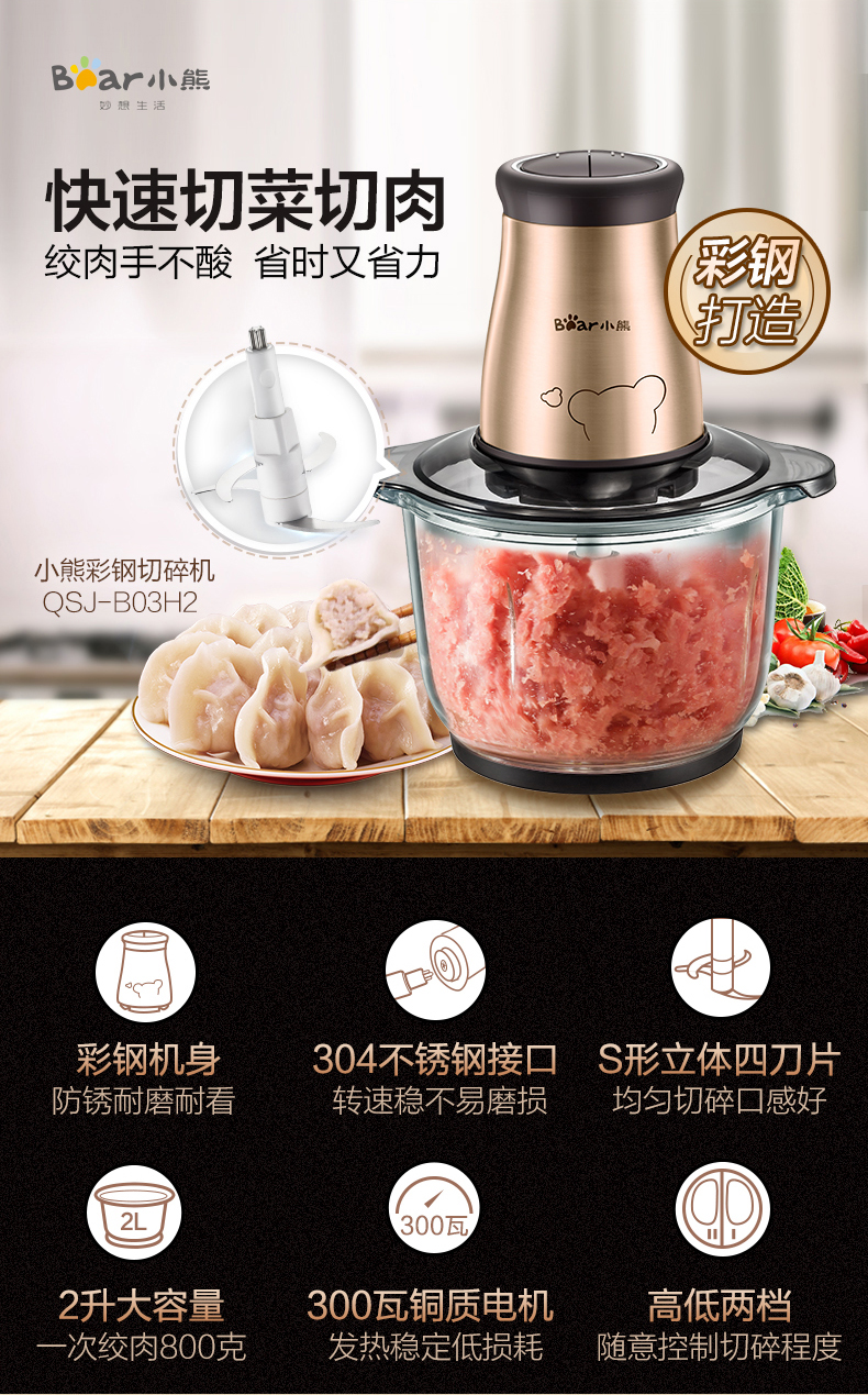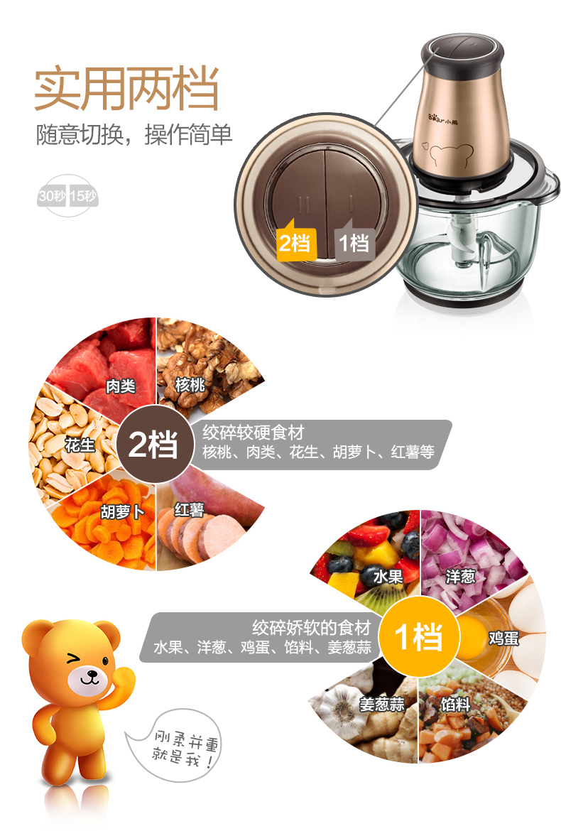 小熊料理机绞肉机 家用电动小型 搅拌打肉馅 蒜泥 神器 切碎机 辅食机