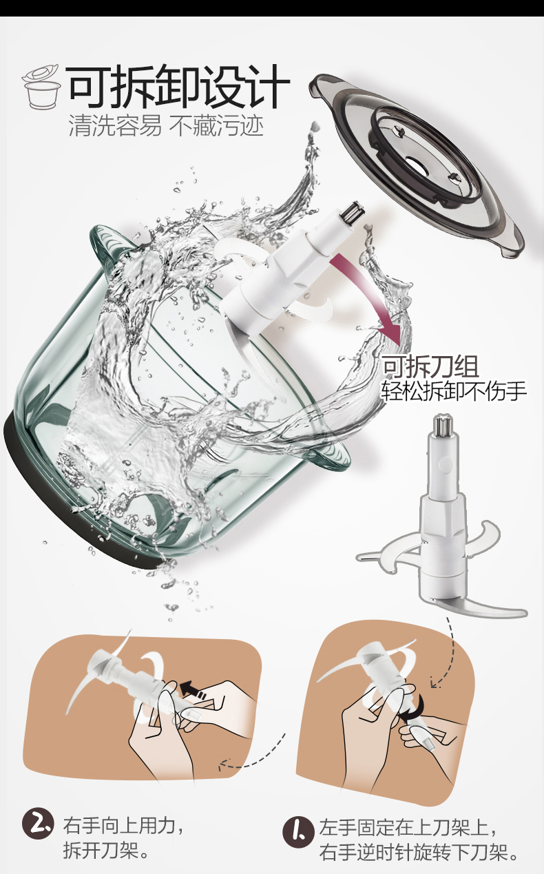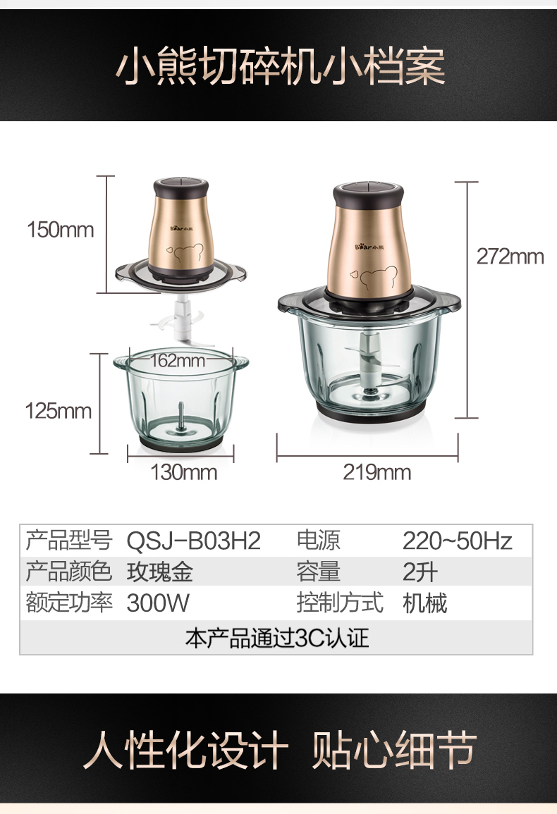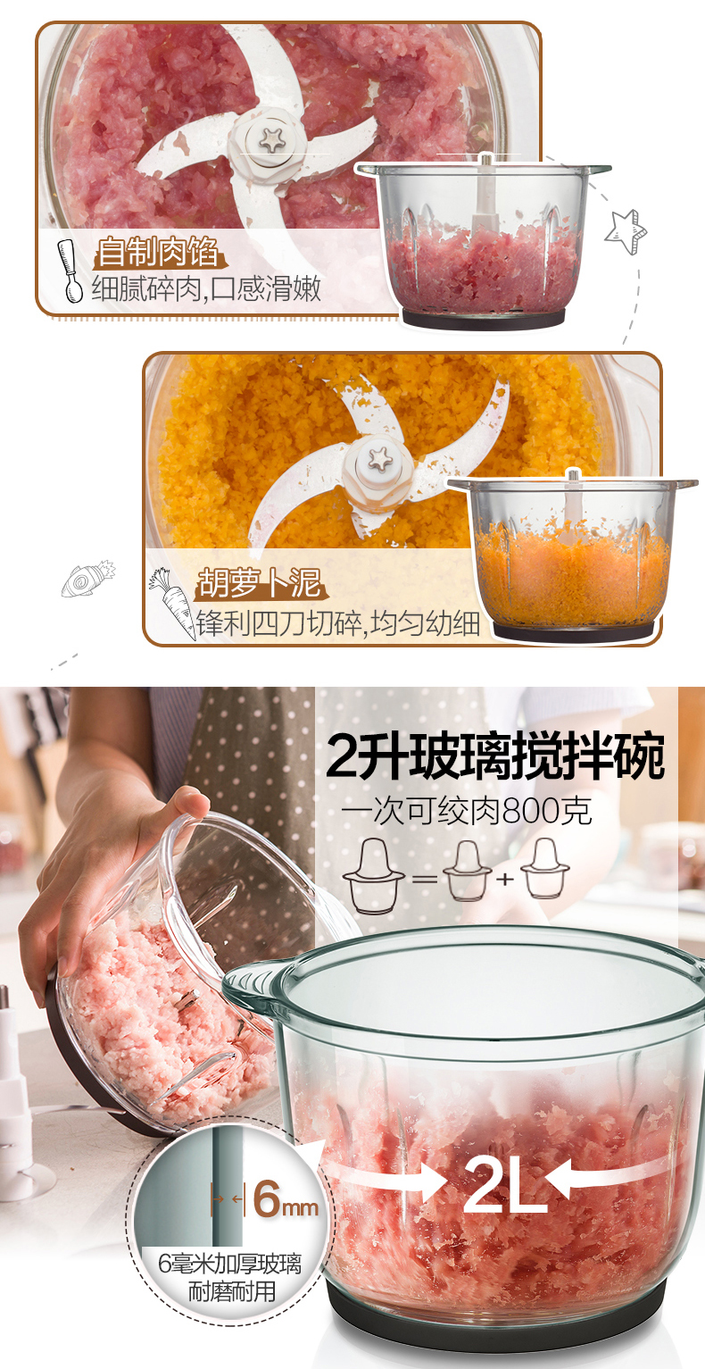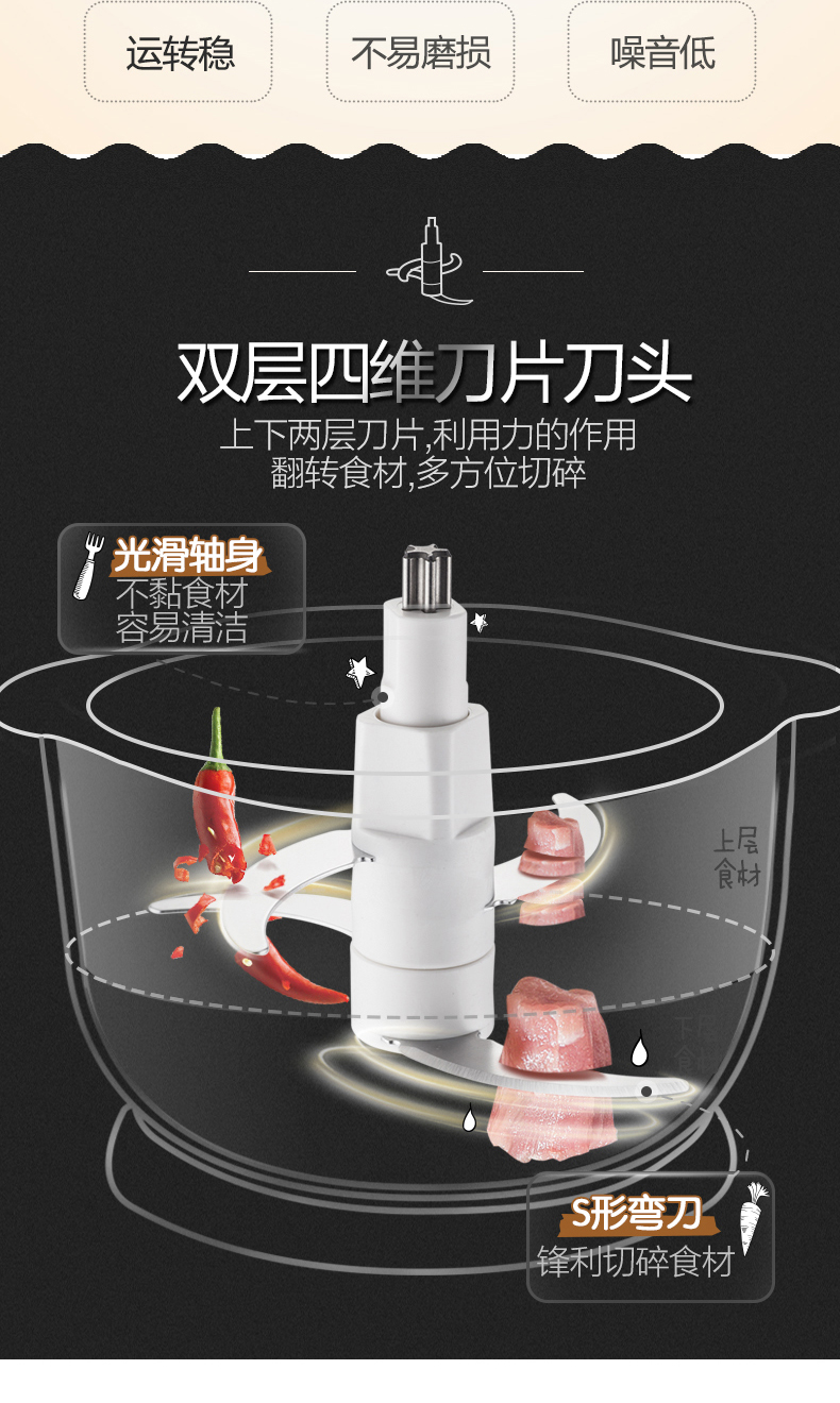 小熊料理机绞肉机 家用电动小型 搅拌打肉馅 蒜泥 神器 切碎机 辅食机