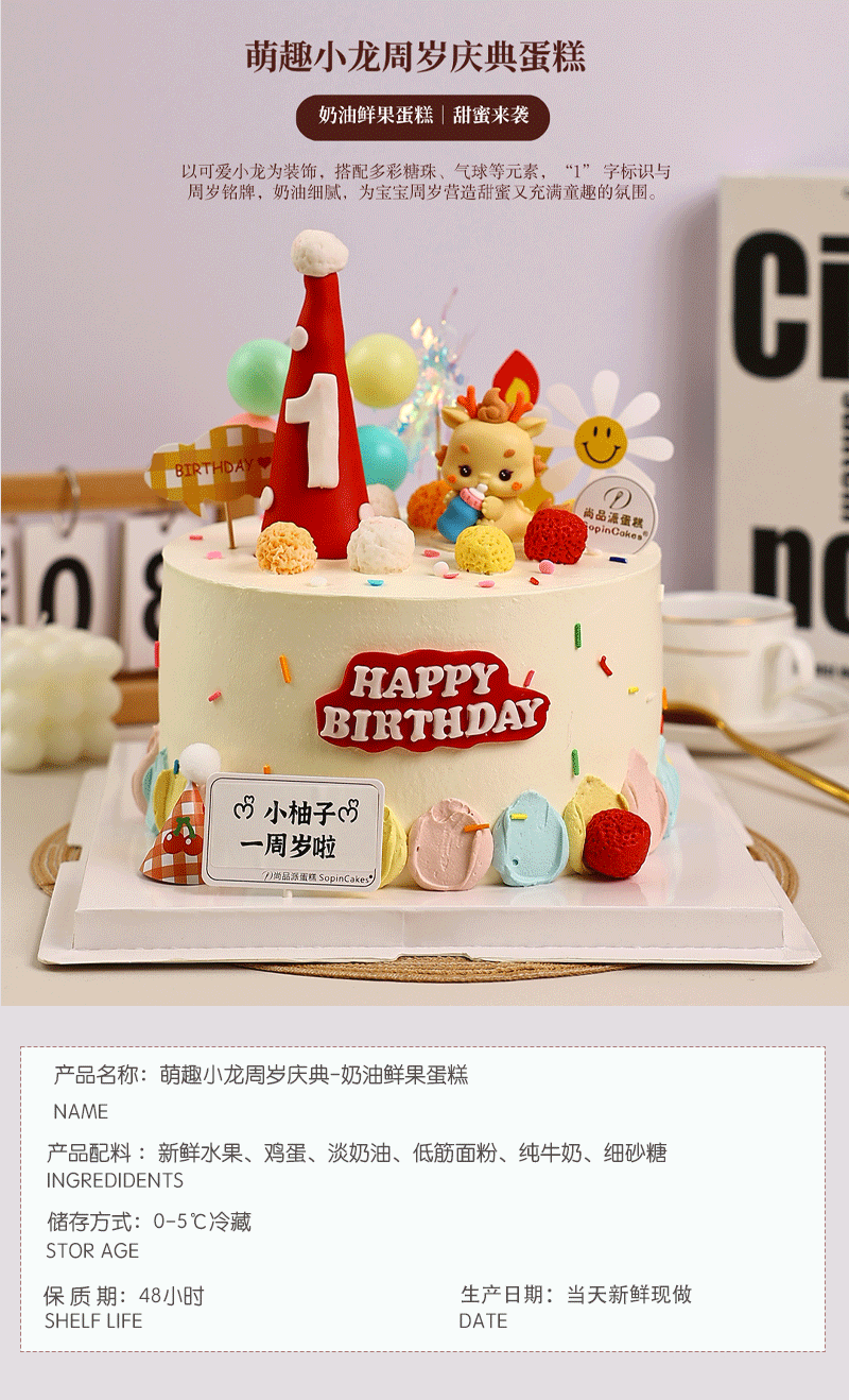 萌趣小龙周岁庆典鲜果蛋糕,甜蜜来袭【惠州】