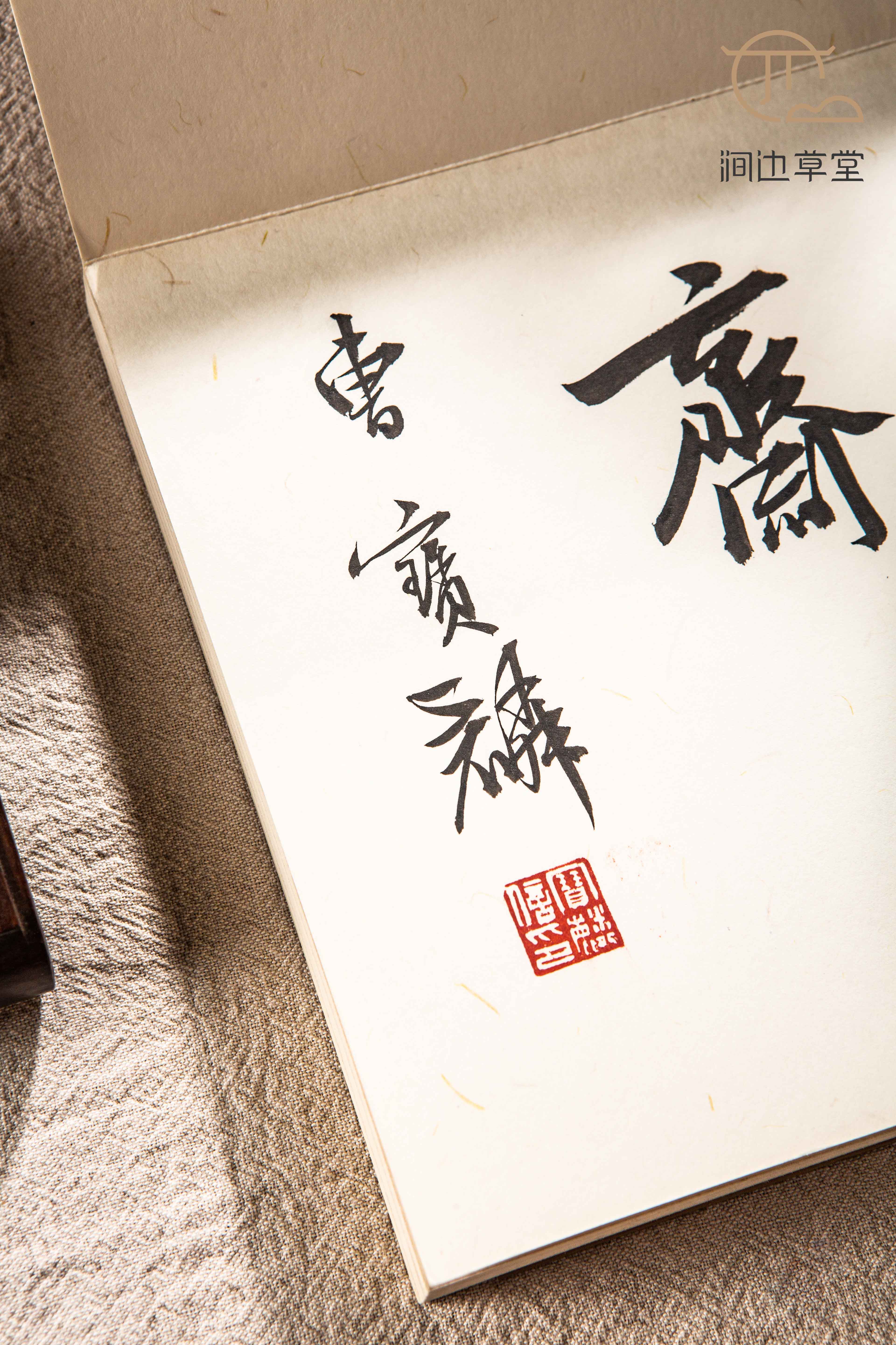 《书法神探曹宝麟》题斋号本,本书讲述了曹宝麟先生的学书生涯,有很多值得我们借鉴学习的地方,最难得的是曹宝麟先生在书籍扉页亲笔题写了斋号“容鼎斋”,有容乃大,何况能容其鼎,对于没有斋号的朋友可以直接使用此斋号,并可将此斋号刻剪切下来装裱,十分难得。