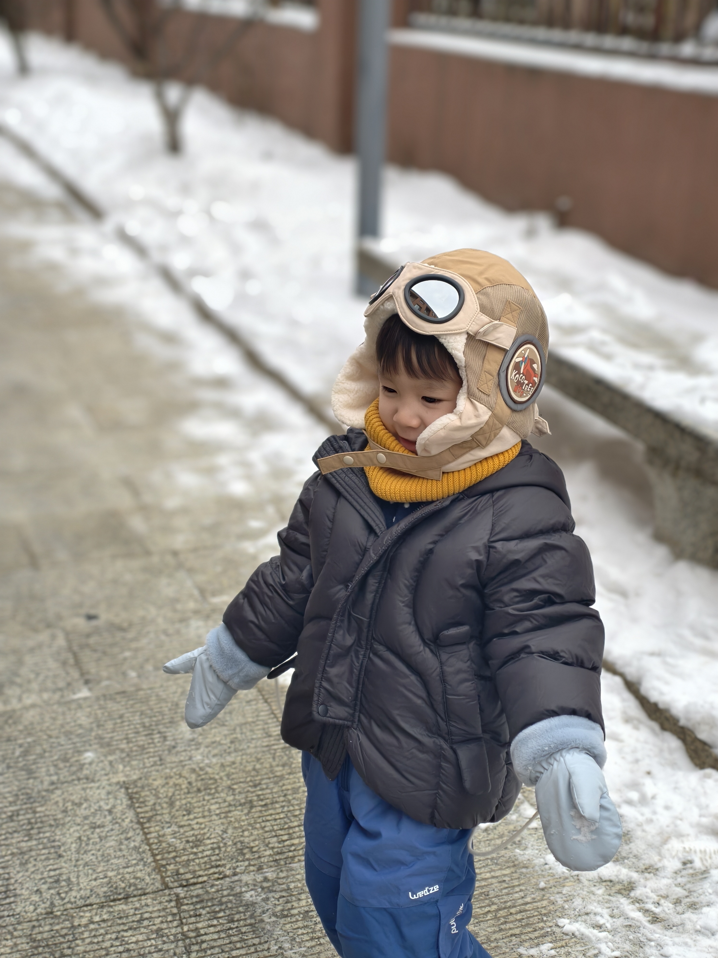 KK树这个飞行员冬帽真可爱!不仅外形好看,保暖性也特别好!护耳设计,直接保护小耳朵,而且自带防雪盲眼镜,超级方便啊!可调节帽围,孩子戴上几年都没问题呢