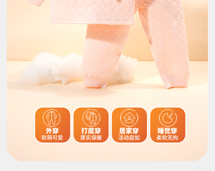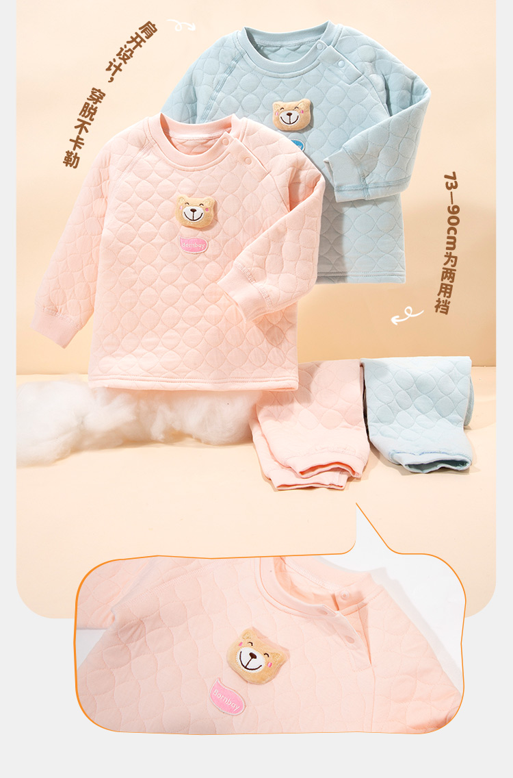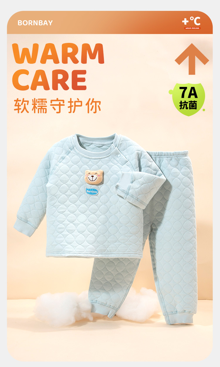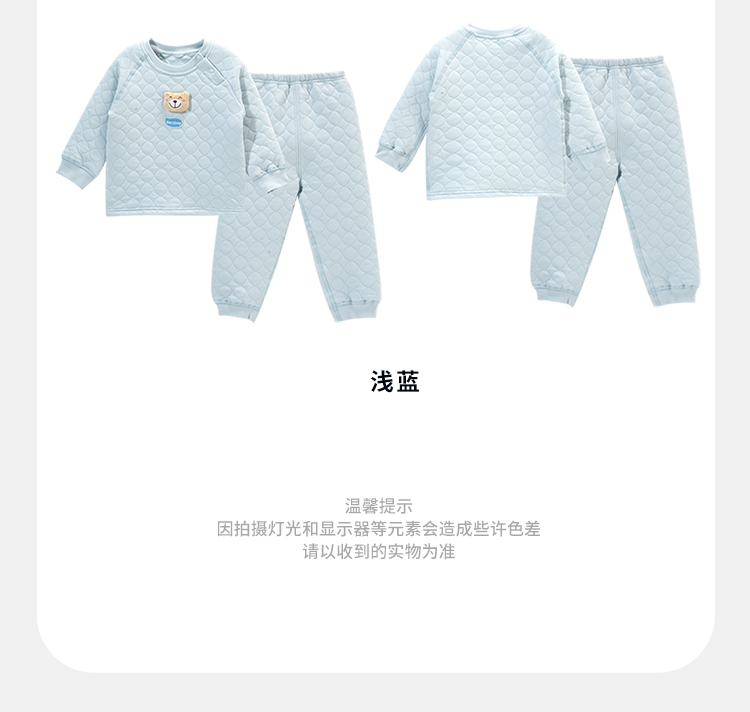 贝贝怡童装儿童三层暖棉套头套装男女宝宝家居服两件套保暖春秋冬ZB4DT001