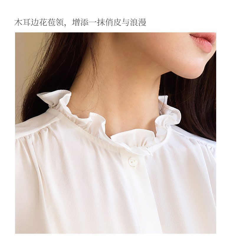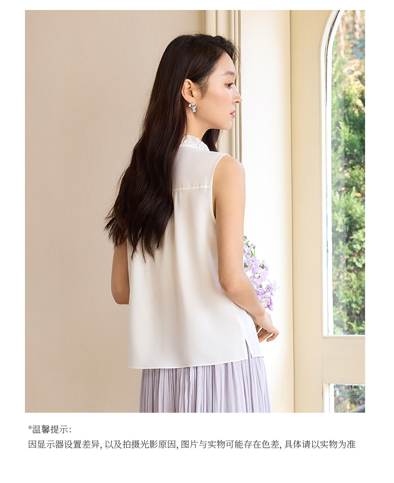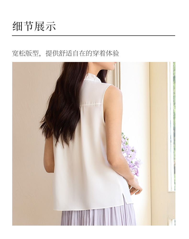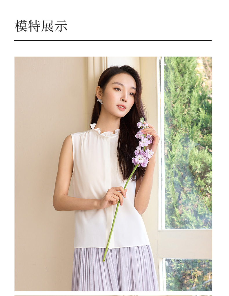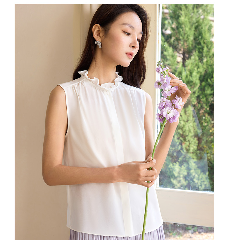玳莎木耳边领真丝无袖衬衫女2025春季新款100%桑蚕丝白色内搭上衣 FA31002