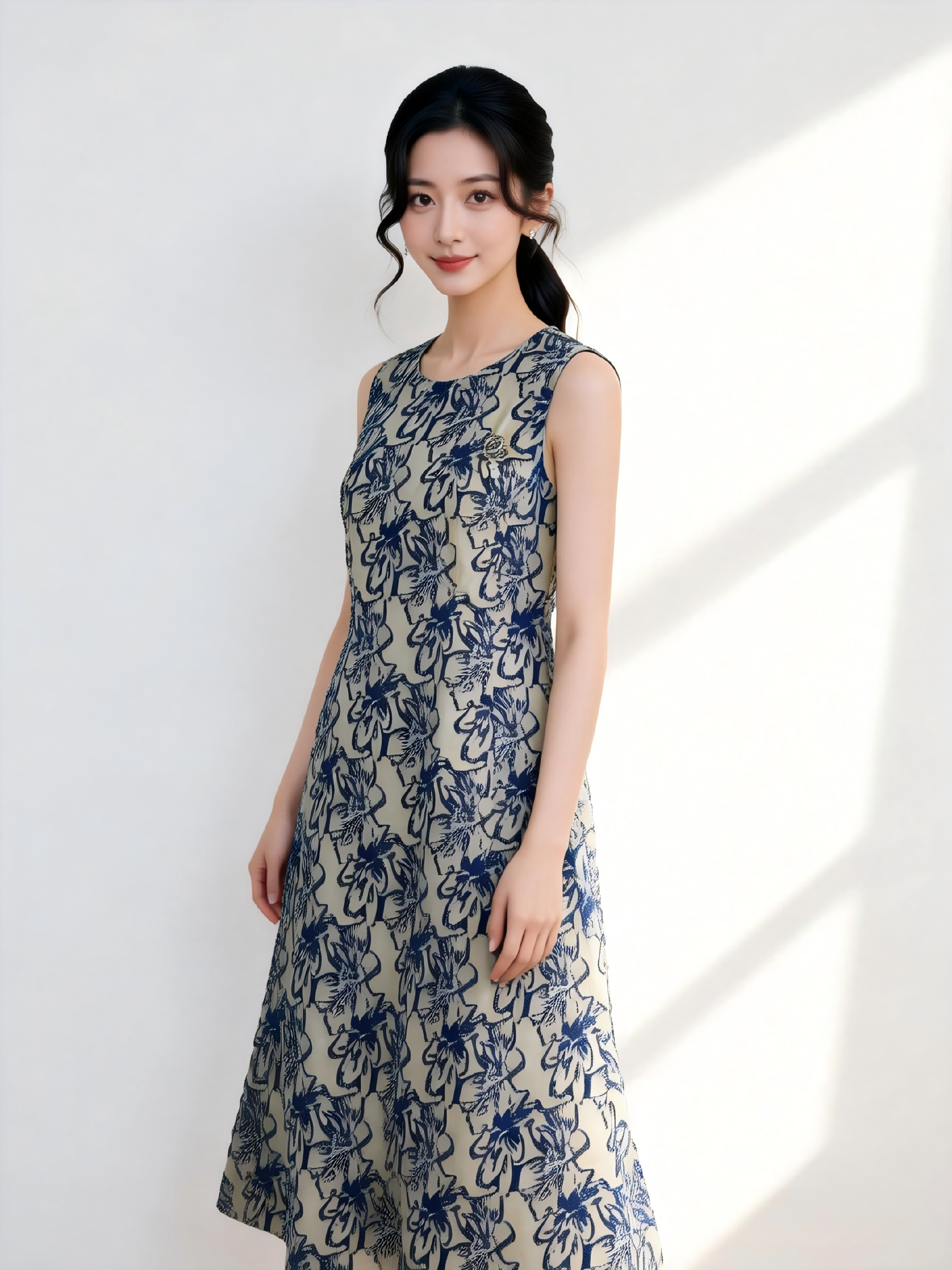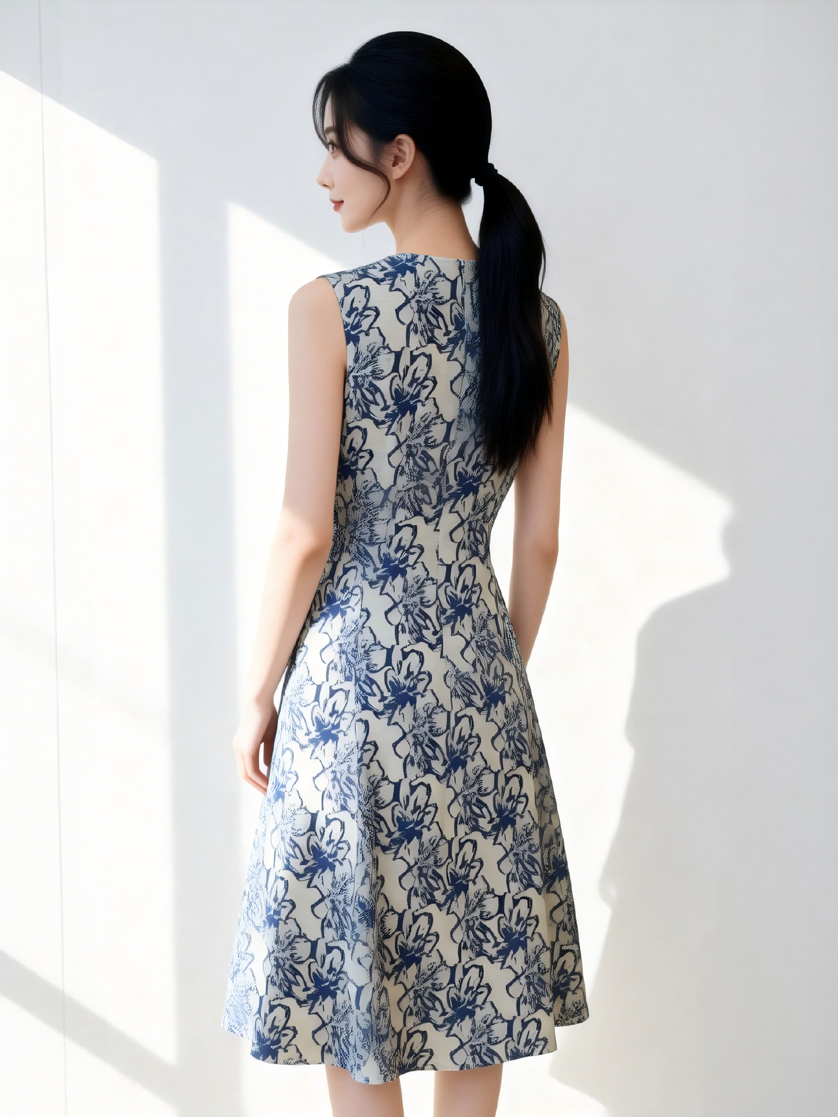 SZ3S57_青鸾色_连衣裙_春夏_圆领收腰优雅气质_高级女装_BERNIEELEN 伯妮斯茵