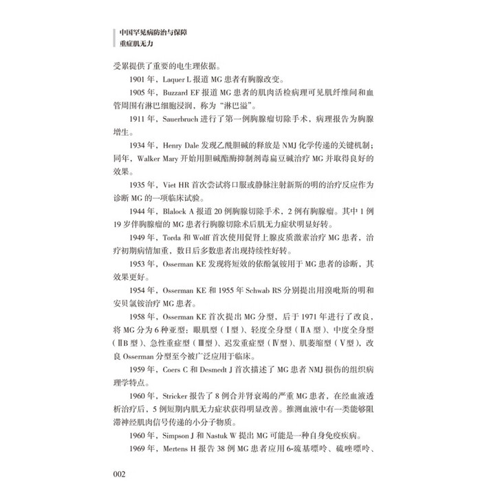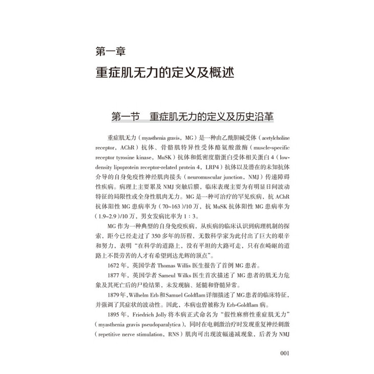 本书共8章,汇集重症肌无力最新进展,并对发展现状进行剖析和重点研究,主要包括重症肌无力定义及概述,重症肌无力流行病学研究,临床特点与诊断,重症肌无力治疗现状和前沿进展,重症肌无力与特殊人群,重症肌无力患者管理与预后,重症肌无力药物研发与注册,重症肌无力疾病负担研究、重症肌无力社会关爱组织发展,重症肌无力保障进展研究。本书专家权威,有一定前瞻性,将有助于进一步推动我国在罕见病重症肌无力诊治与保障方面的发展。