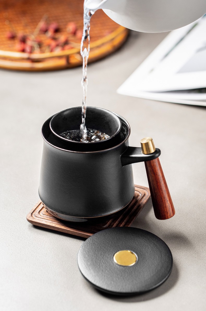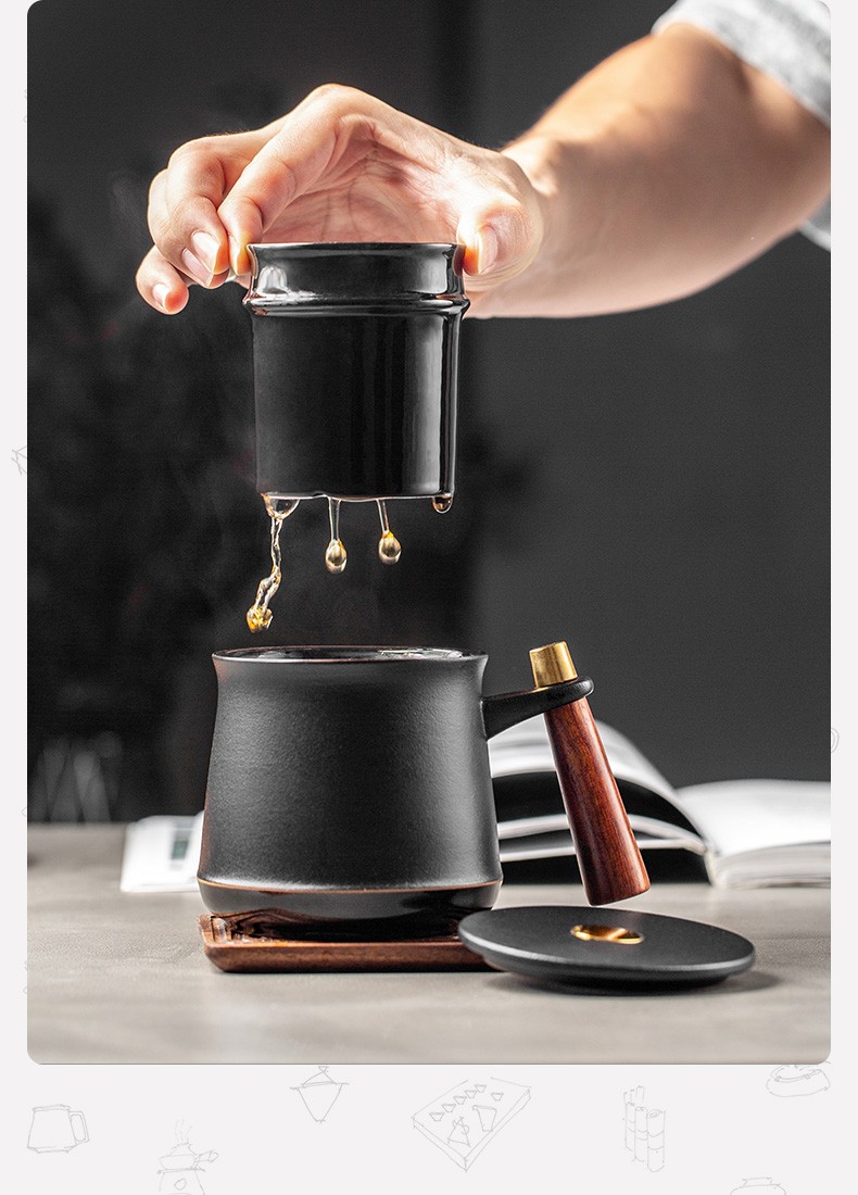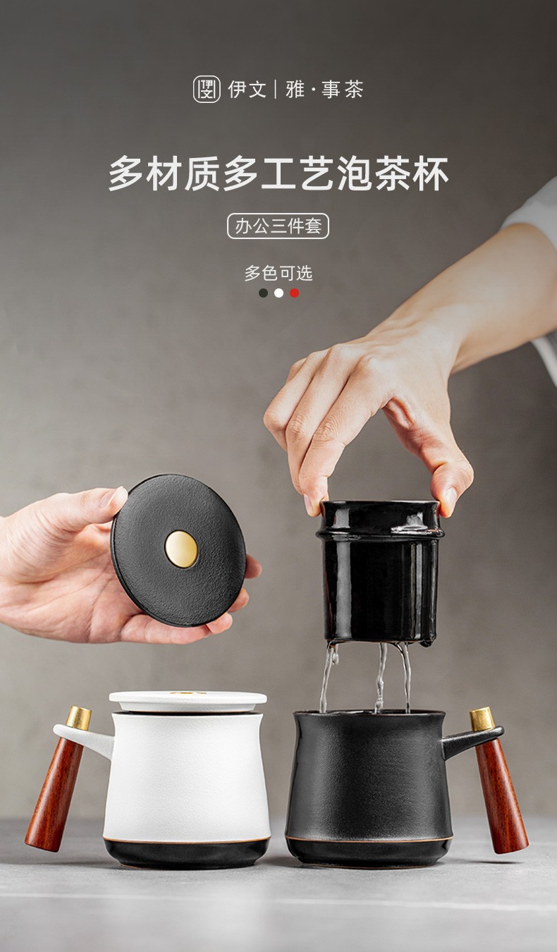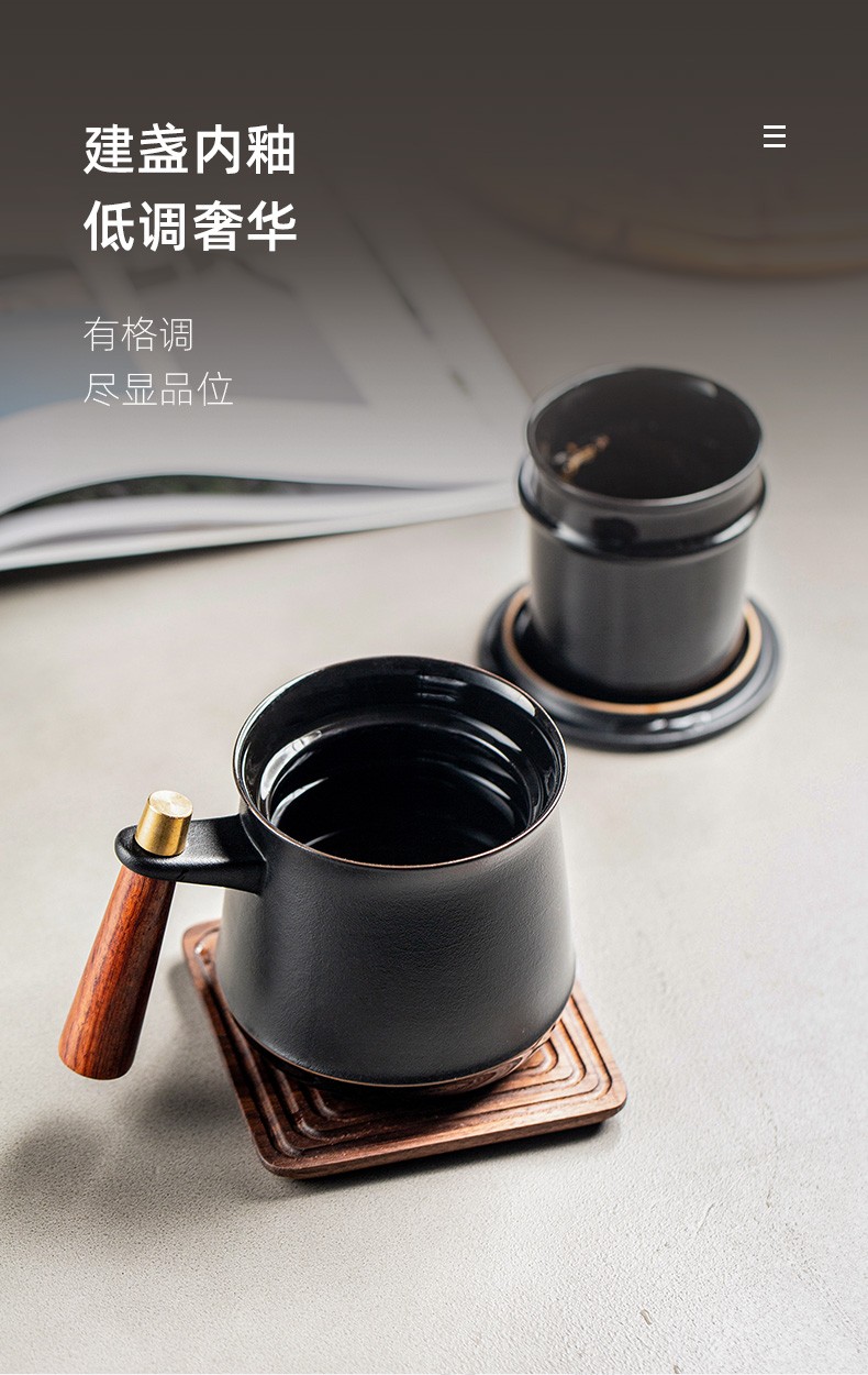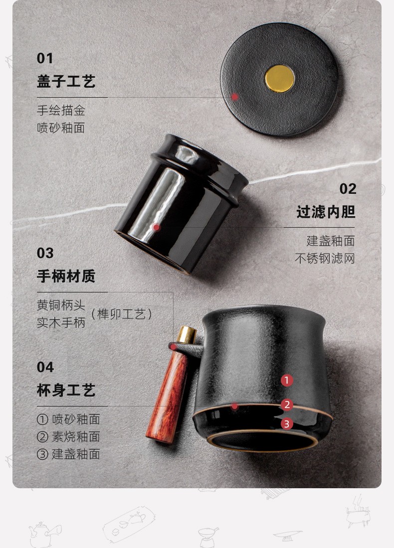 陶瓷办公室会议杯描金茶水分离泡茶杯防烫带盖大容量家用喝水杯子 尚贤泡茶杯(黑)VN29