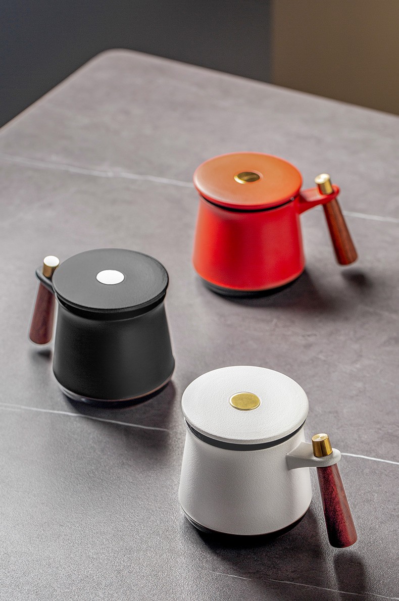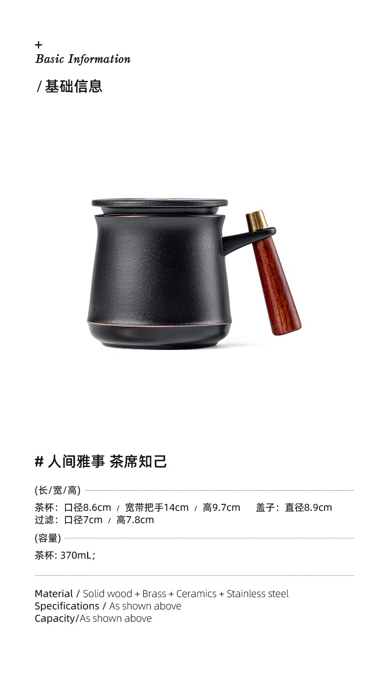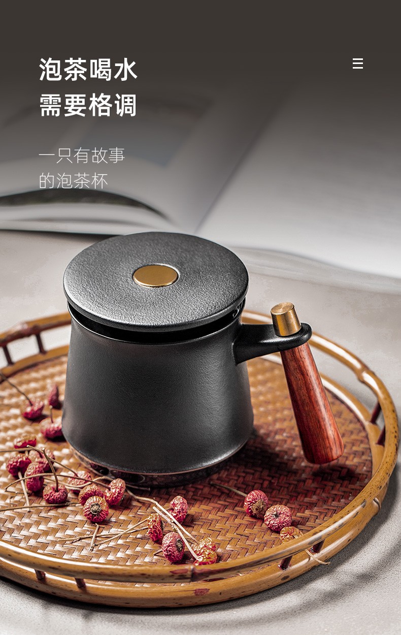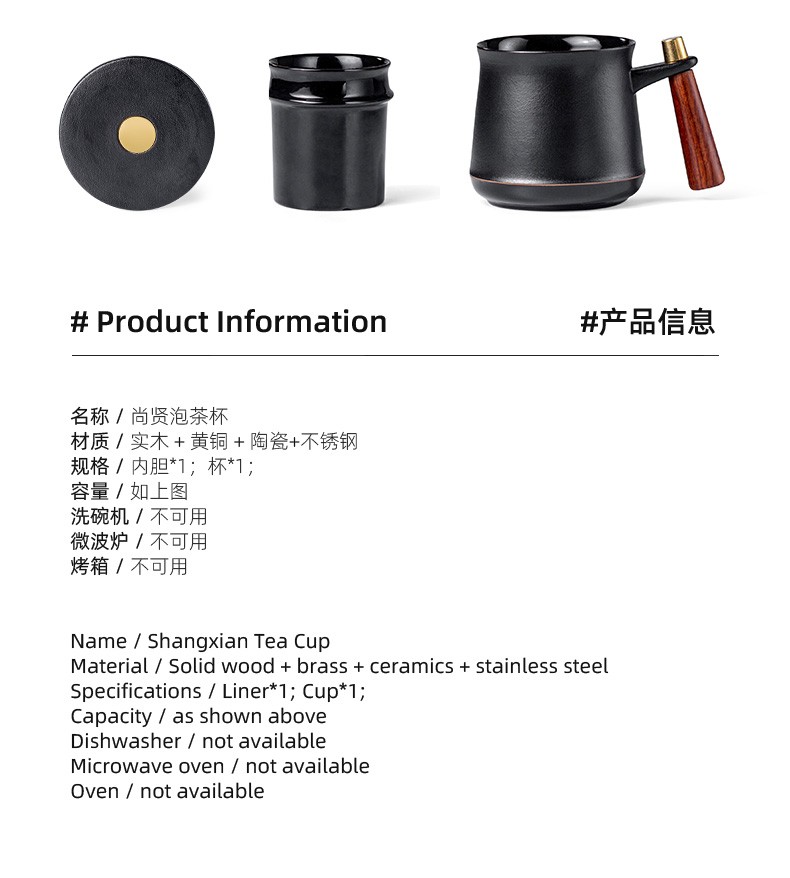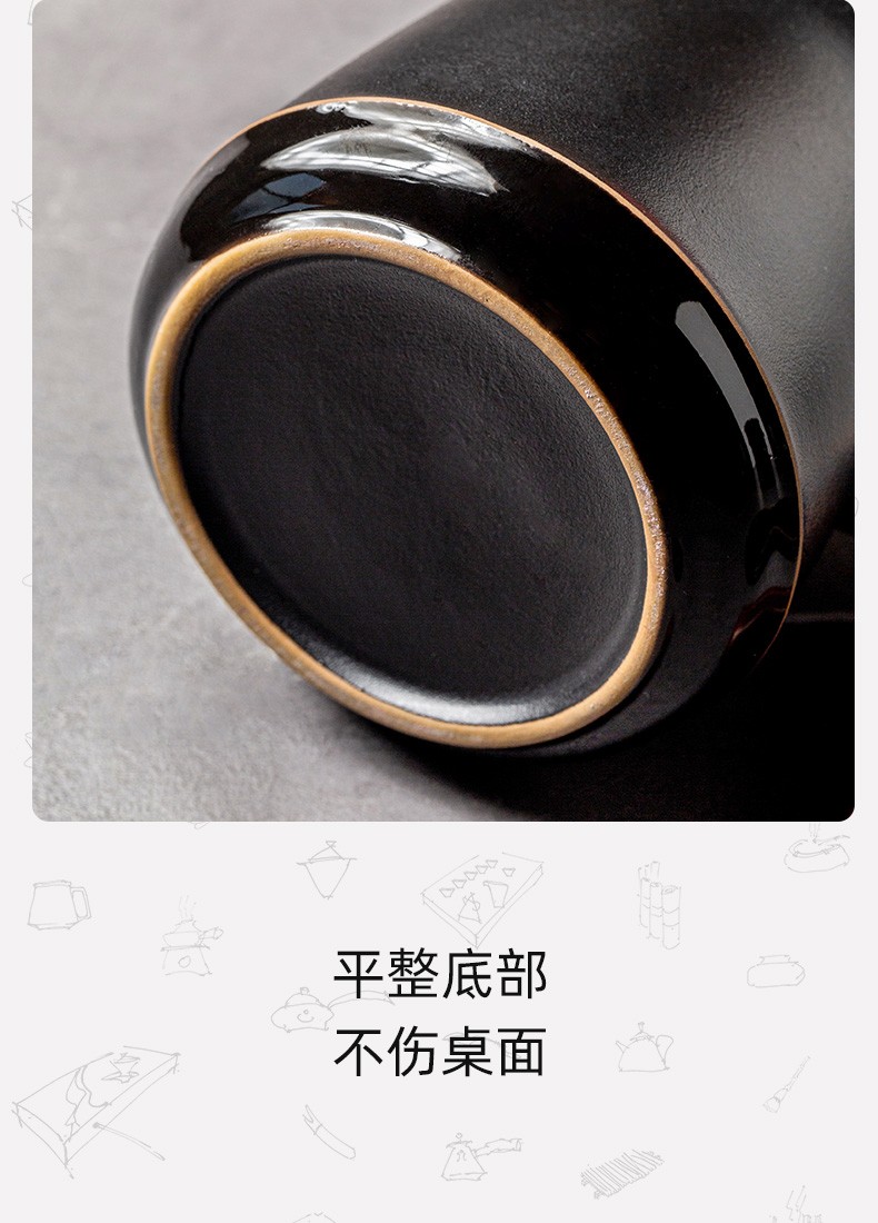 陶瓷办公室会议杯描金茶水分离泡茶杯防烫带盖大容量家用喝水杯子 尚贤泡茶杯(黑)VN29