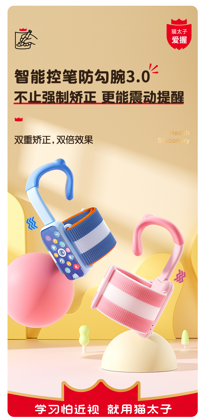 猫太子第四代智能防勾腕矫正器小学生握笔姿势幼儿园初学者握笔器学写字勾手腕内钩纠正器儿童拿控笔训练神器