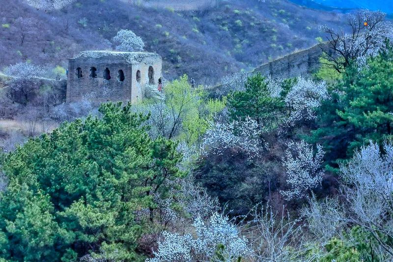 抗日战争时期,著名的长城抗战中,敌我双方争夺最激烈的地方就是将军楼。整个蟠龙山景区不大,强度也适中,大部分人体力都可以爬上去,最近北京北边山里杏花正当季,是一个绝佳的赏长城杏花的地点,关键还人不多。