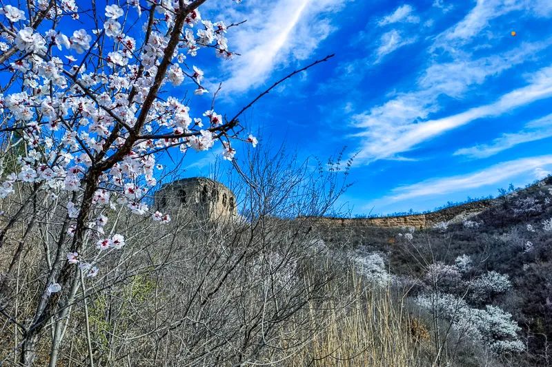 蟠龙山长城上密布着19座敌楼,将军楼和24眼楼是这段长城的建筑精华。将军楼地处蟠龙山的制高点,是设置指挥机关的地方,这段长城的城墙也独具特色,有土墙、后墙、砖墙等不同风格。七郎坟、令公庙、琉璃影壁靠大道、一步三眼井、两步三座庙。春季漫山遍野的山杏花盛放,清凉的风里弥漫着淡淡苦味的清香。