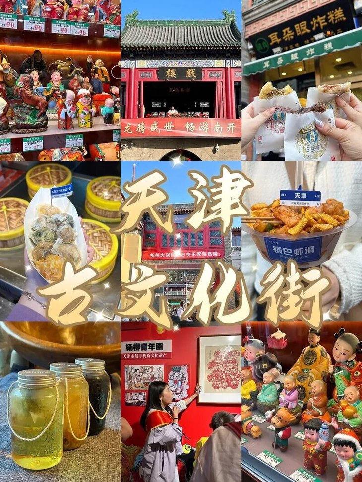 内有近百家店堂。是天津老字号店民间手工艺品店的集中地,有地道美食:狗不理包子,耳朵眼炸糕,煎饼果子,老翟药糖,天津麻花等。旅游景点有天后宫,喜马拉雅,大清邮币,泥人张彩塑等。