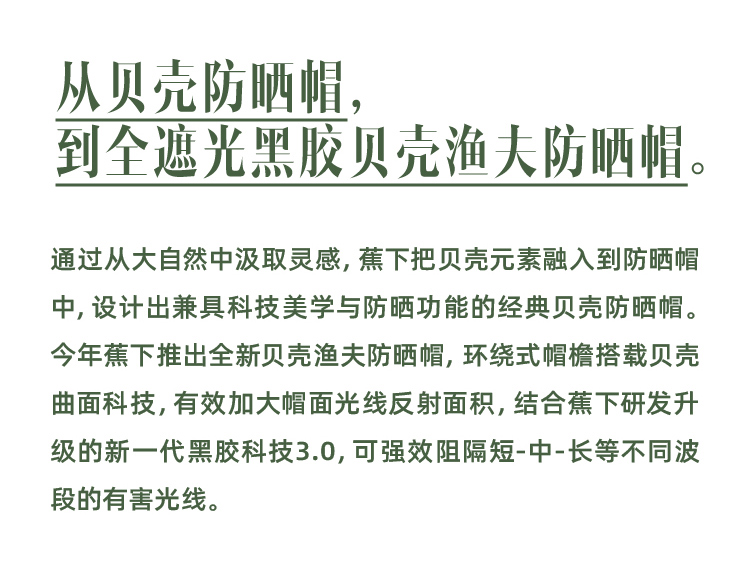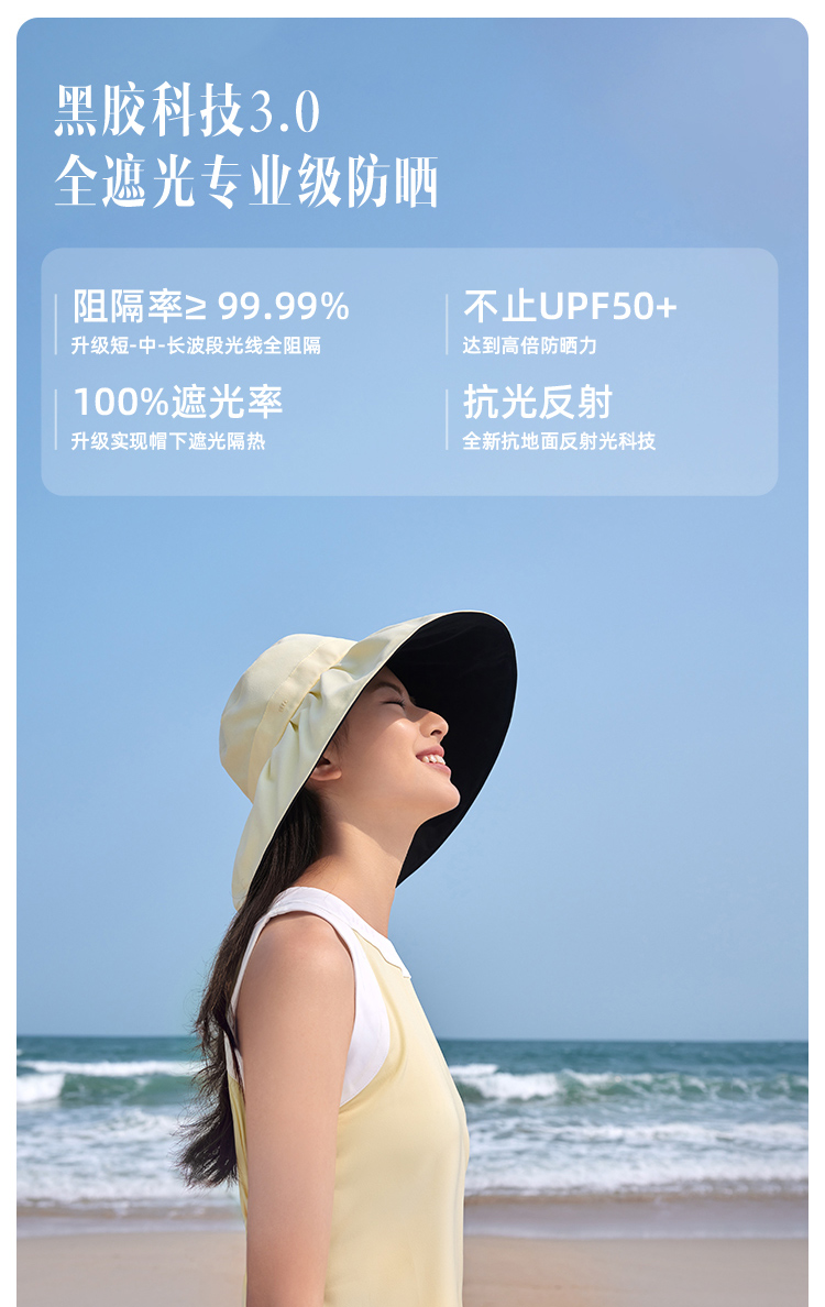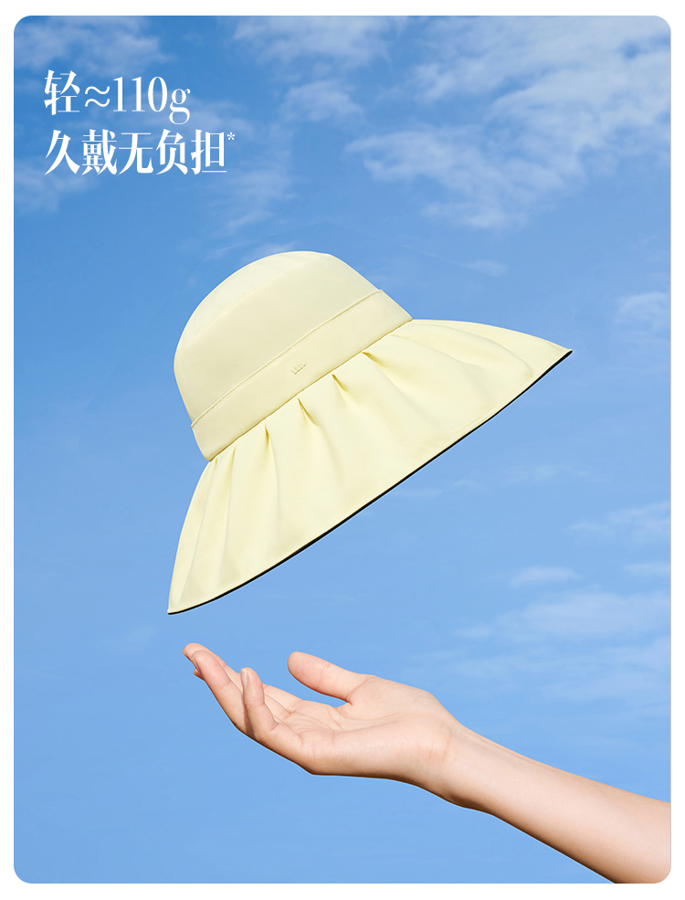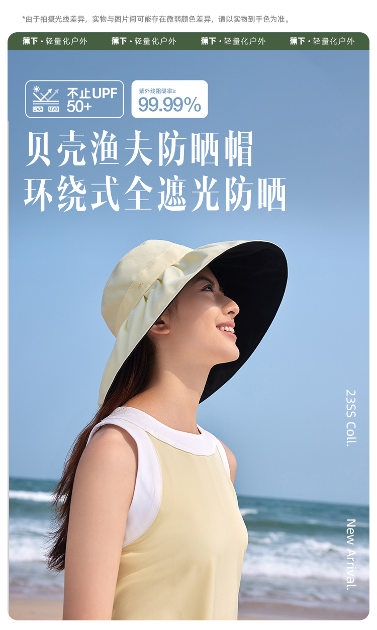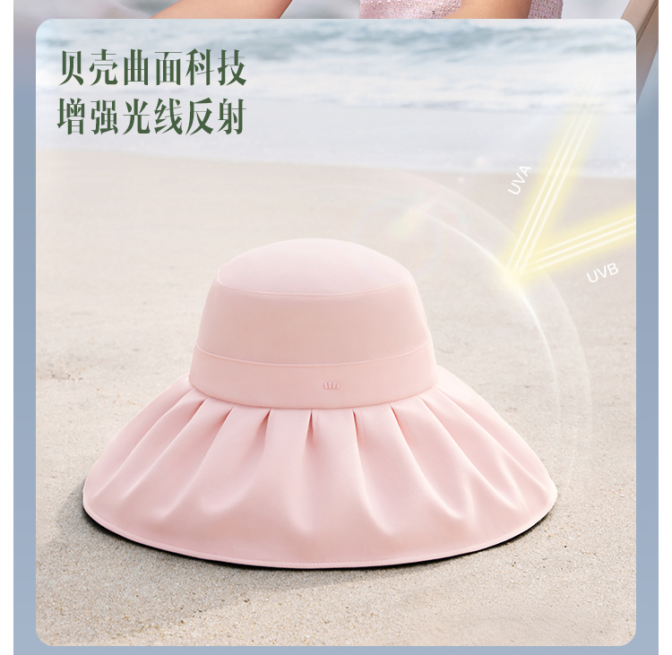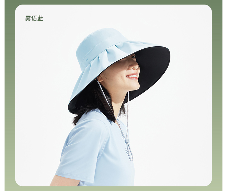 蕉下贝壳丝绒黑胶渔夫帽防晒帽超大檐夏遮脸女防紫外太阳帽遮阳帽