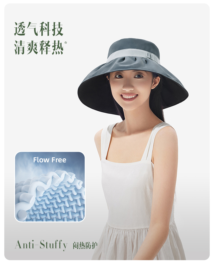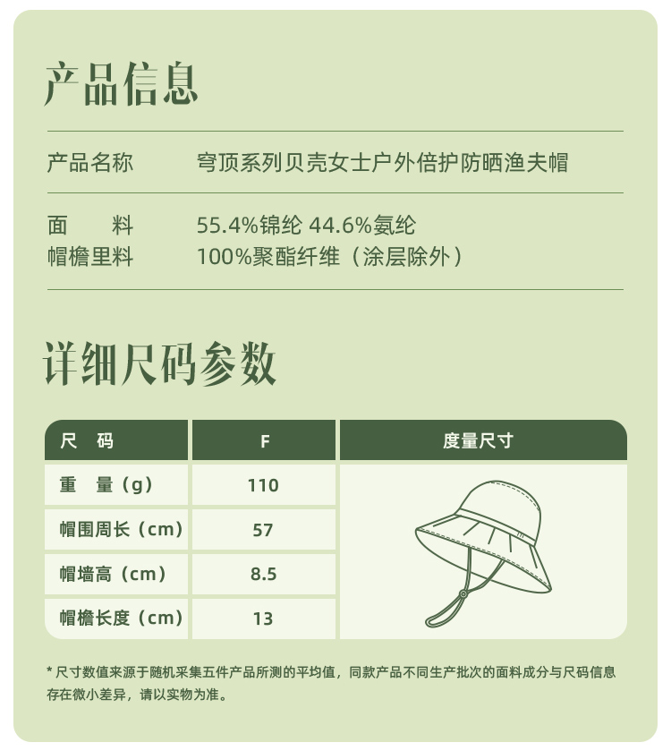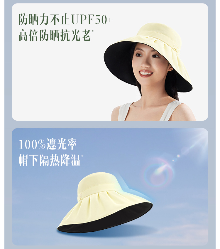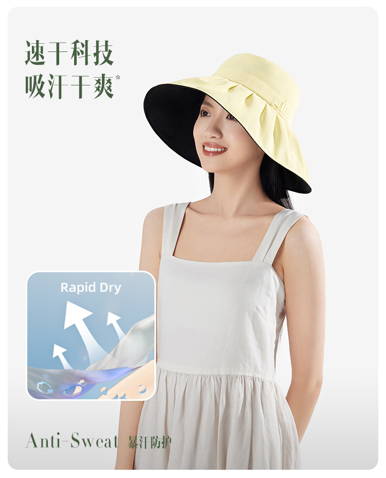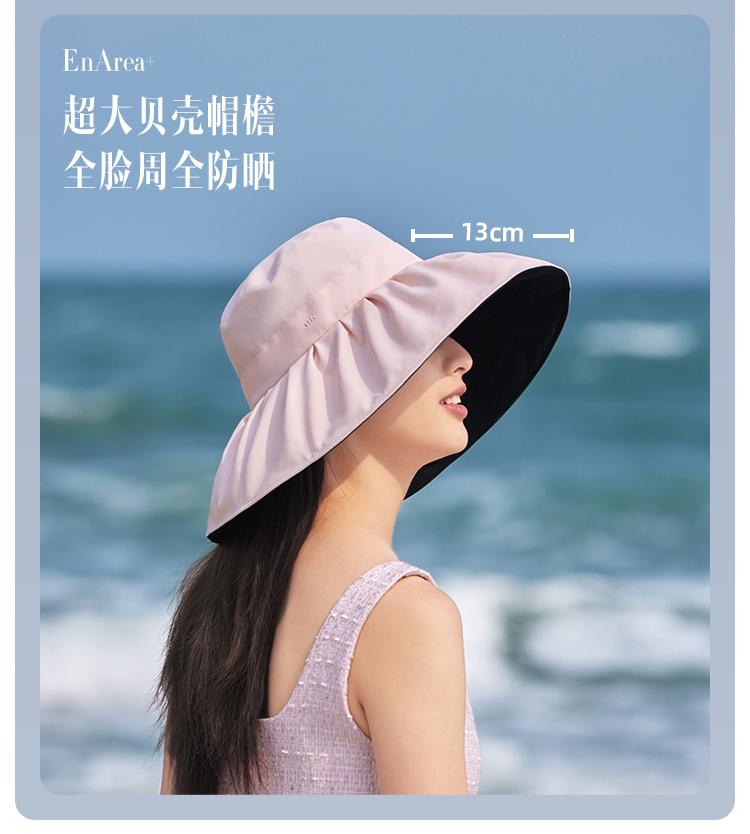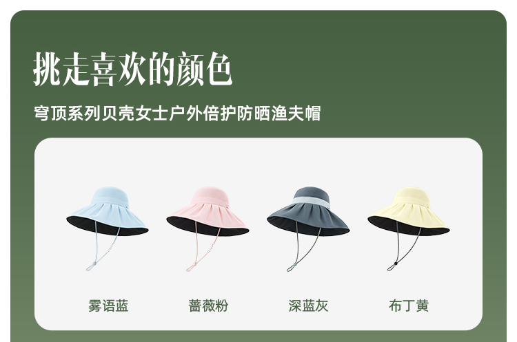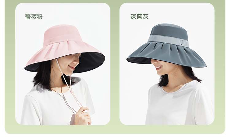 蕉下贝壳丝绒黑胶渔夫帽防晒帽超大檐夏遮脸女防紫外太阳帽遮阳帽
