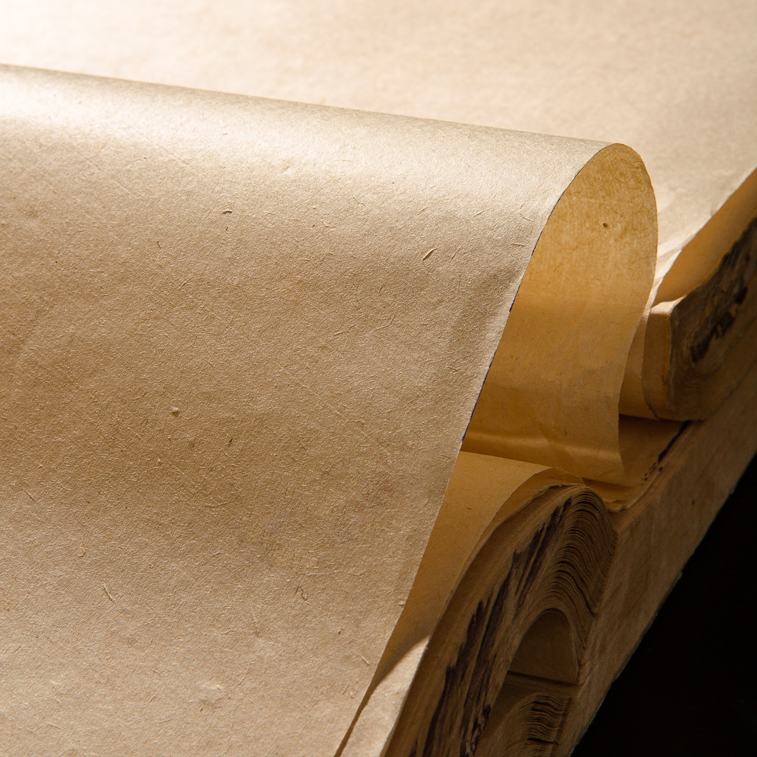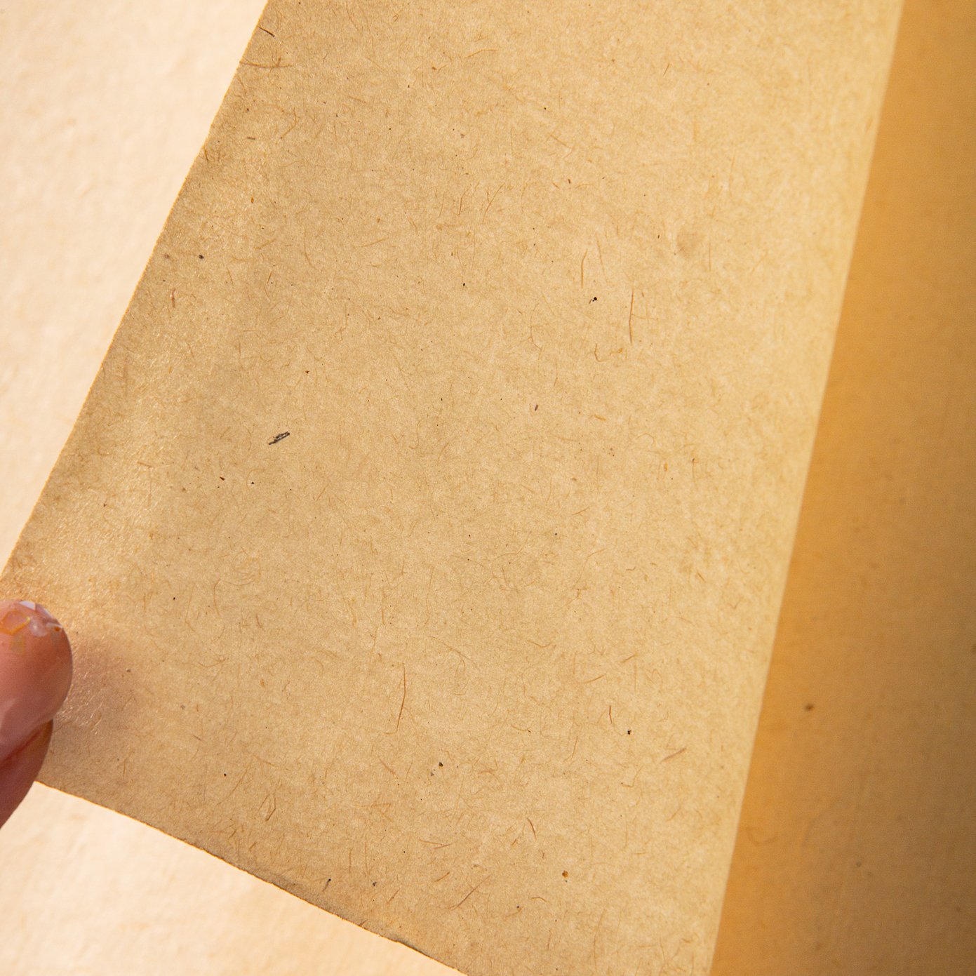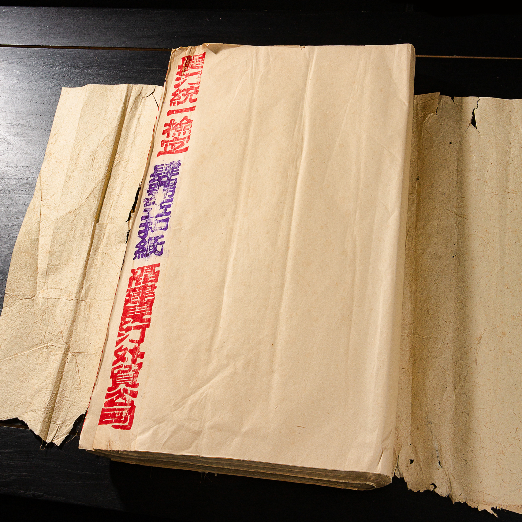 60-70年代福建长汀外贸公司出口玉扣老纸。此纸采用嫩竹为原材料,古法手工精制,纸质柔韧厚实,纤维交错均匀,帘纹精细,纸面光洁如玉,手感细腻,颜色古朴,是可遇不可求之好纸。