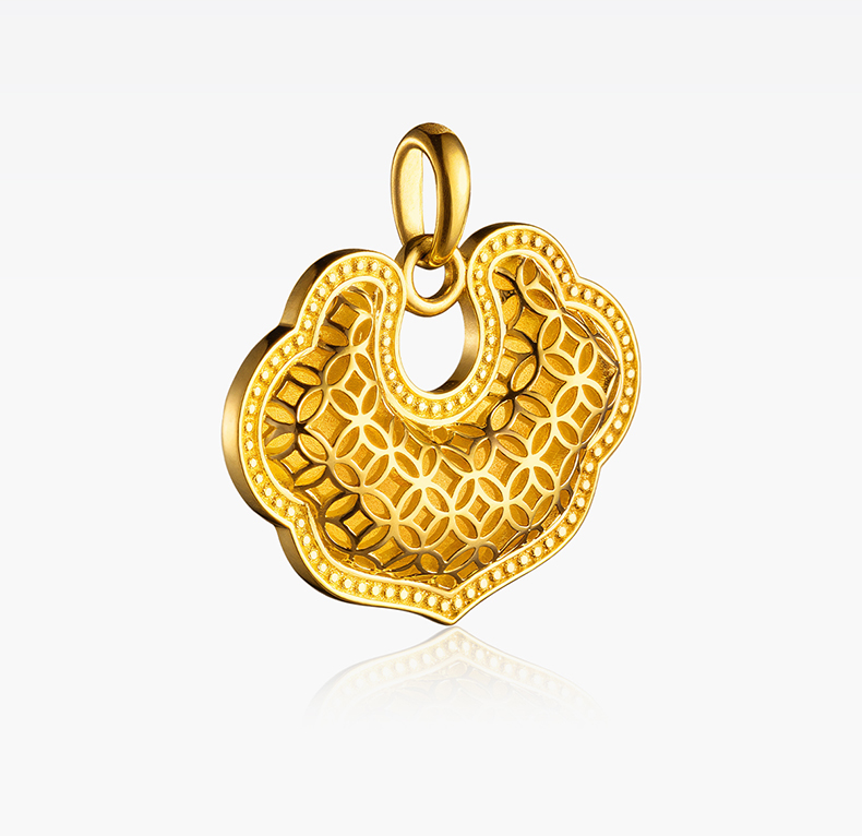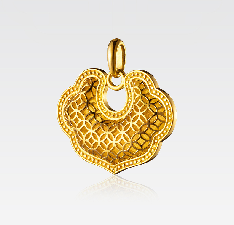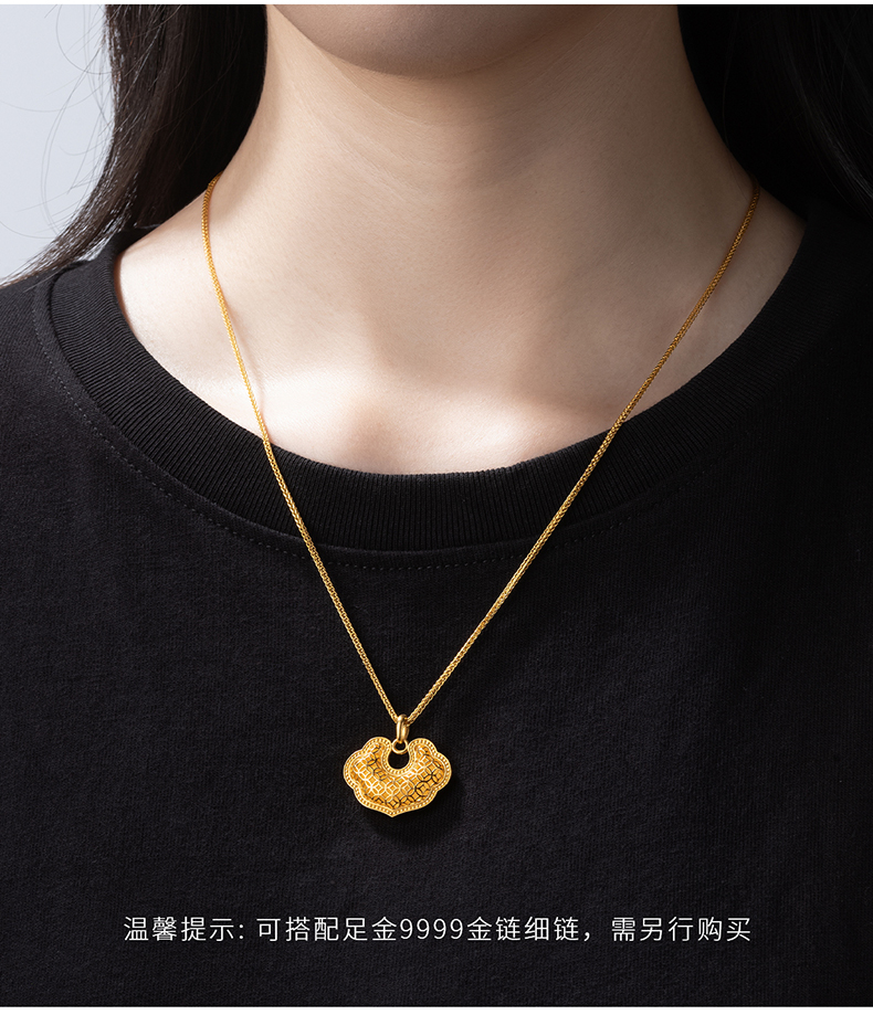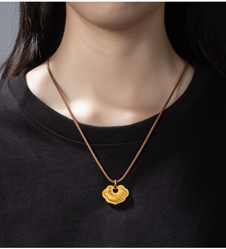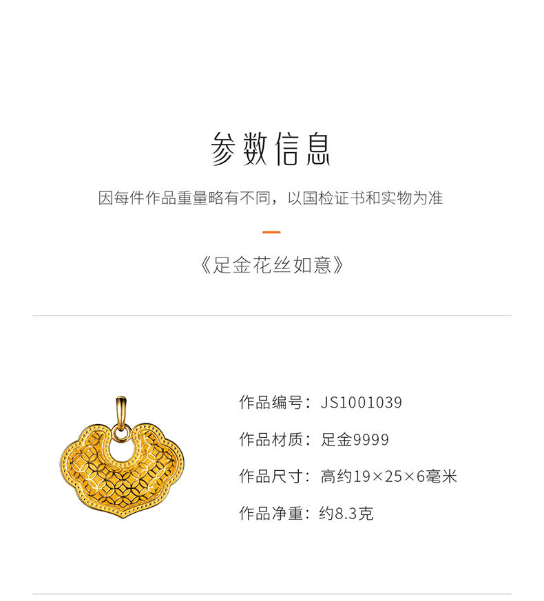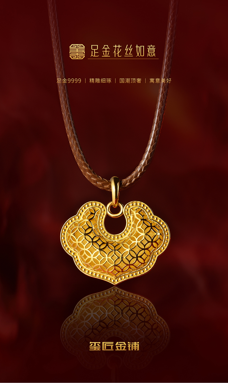 玺匠金铺《足金花丝如意》足金9999黄金吊坠 吉祥饰品挂件