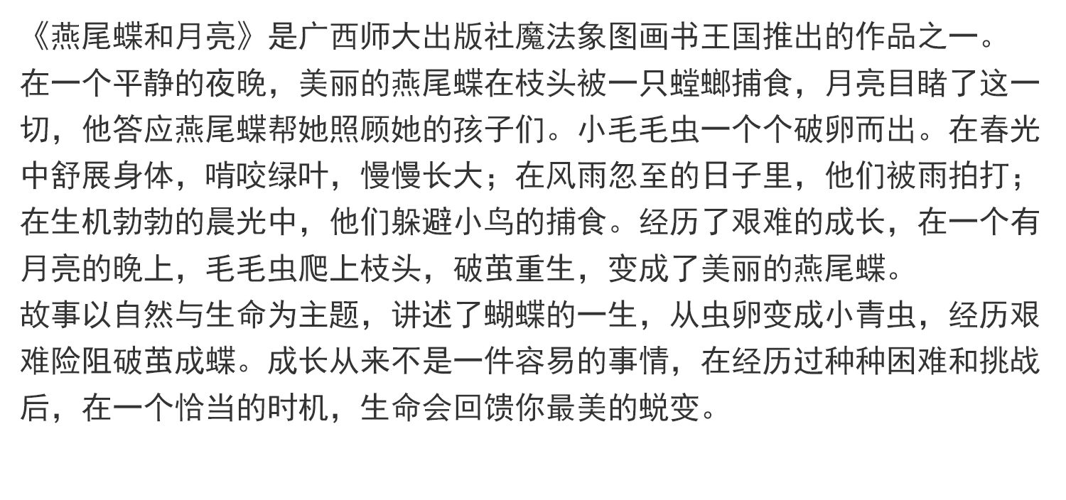 【独秀书香卡】魔法象 燕尾蝶和月亮 〔韩〕张荣福/〔韩〕李惠利/绘 启蒙认知 艺术启蒙 日常认知 自然观察 适合4-6岁 广西师范大学出版社