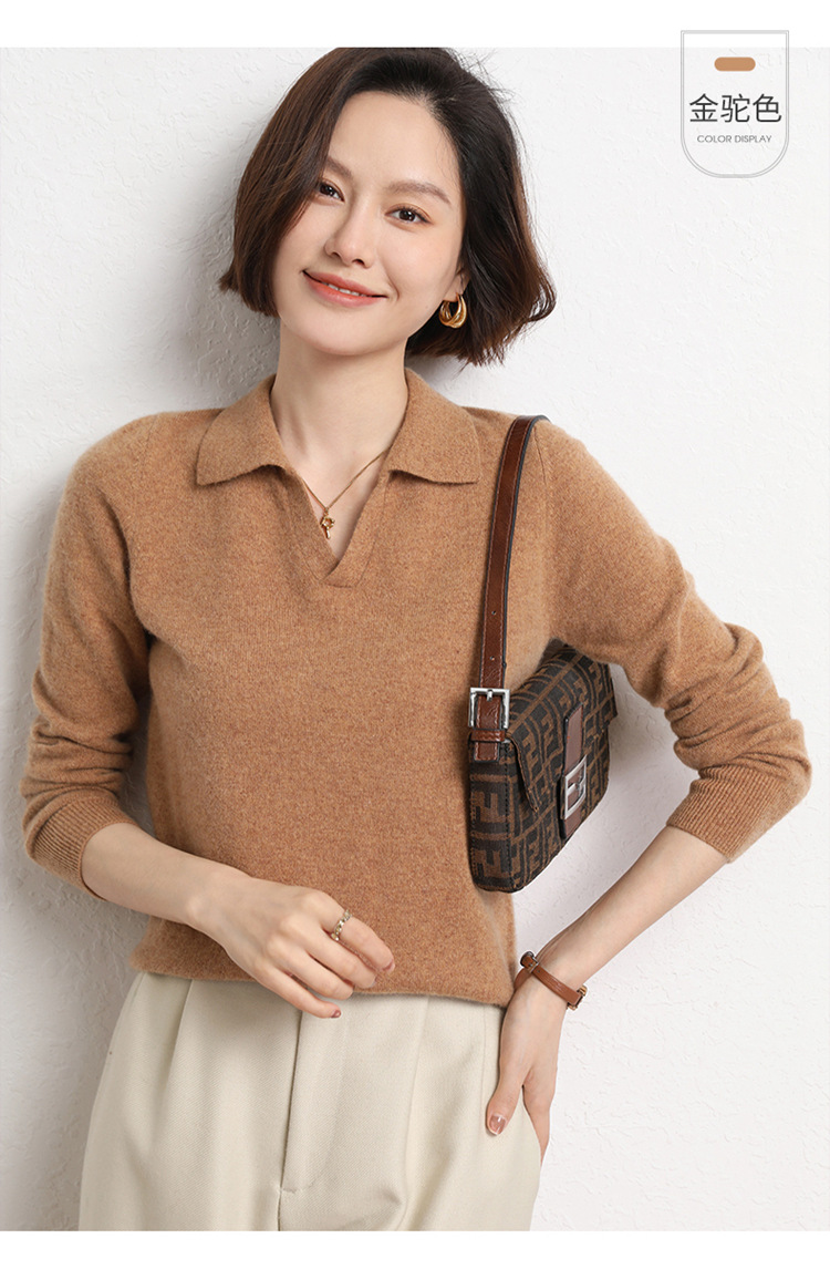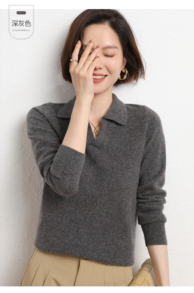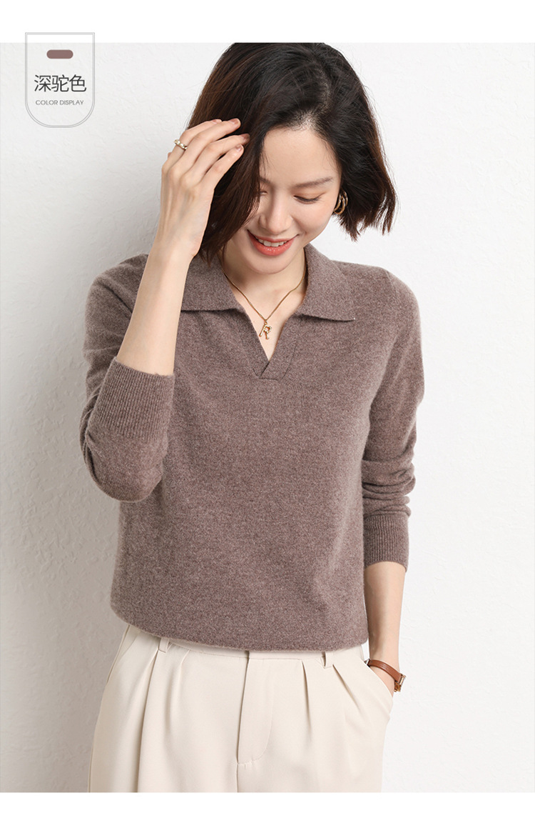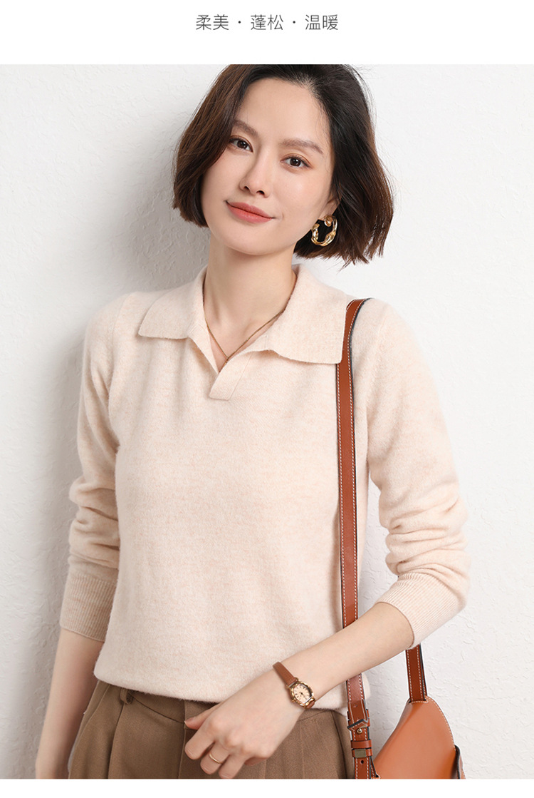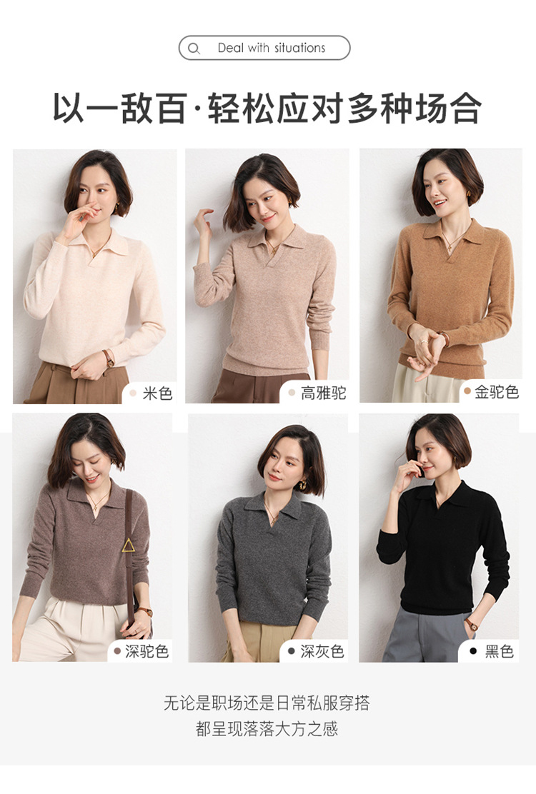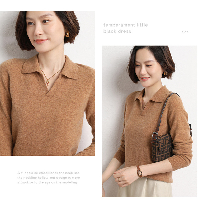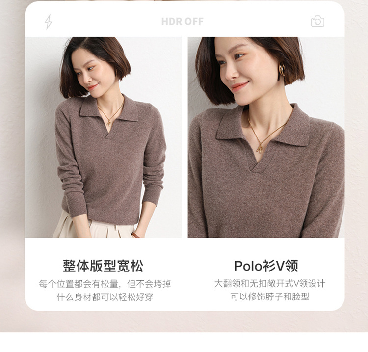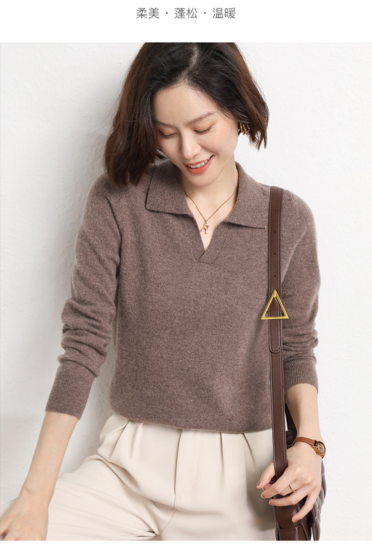 【秋季时尚穿搭】polo领针织衫 经典翻领设计 小众v领上衣 宽松慵懒长袖 百搭显瘦
