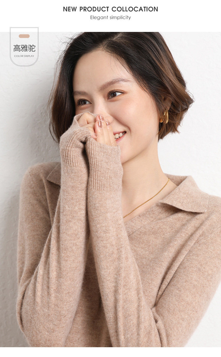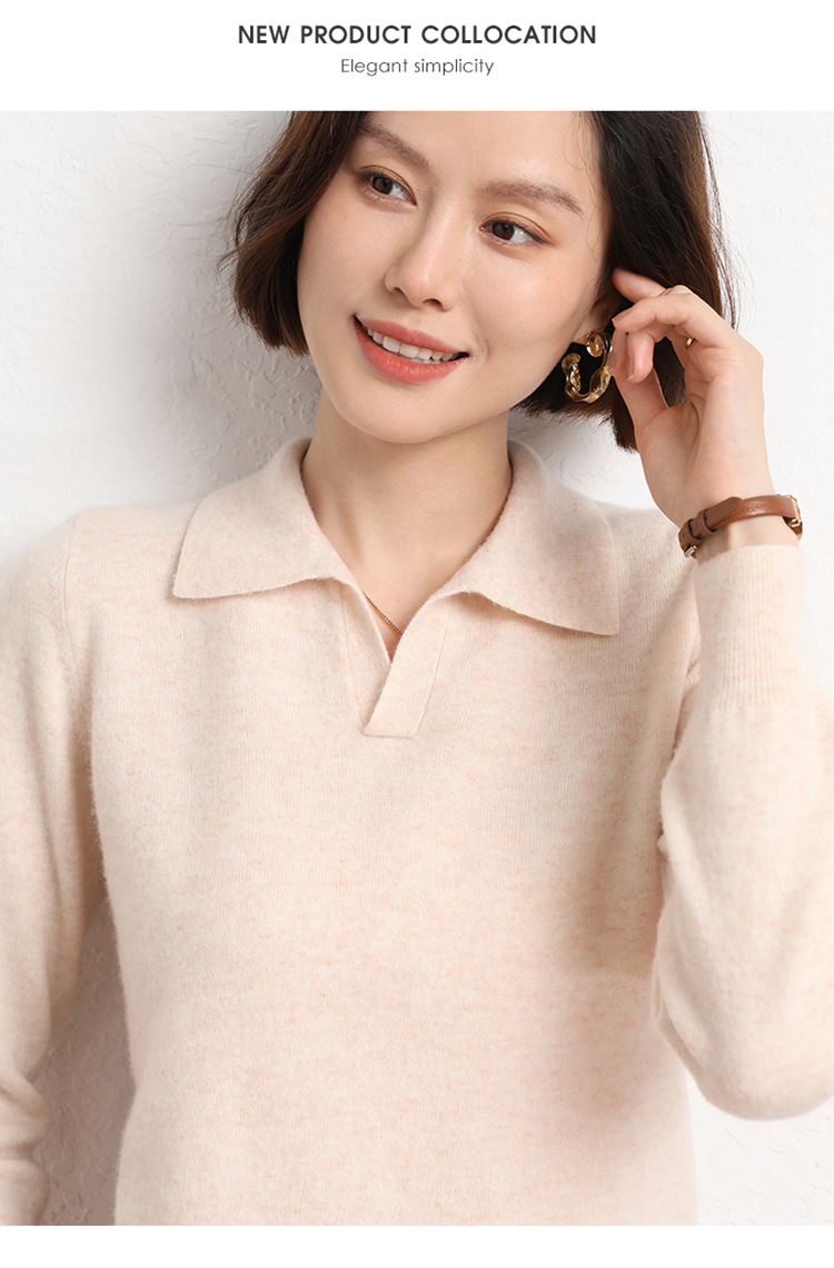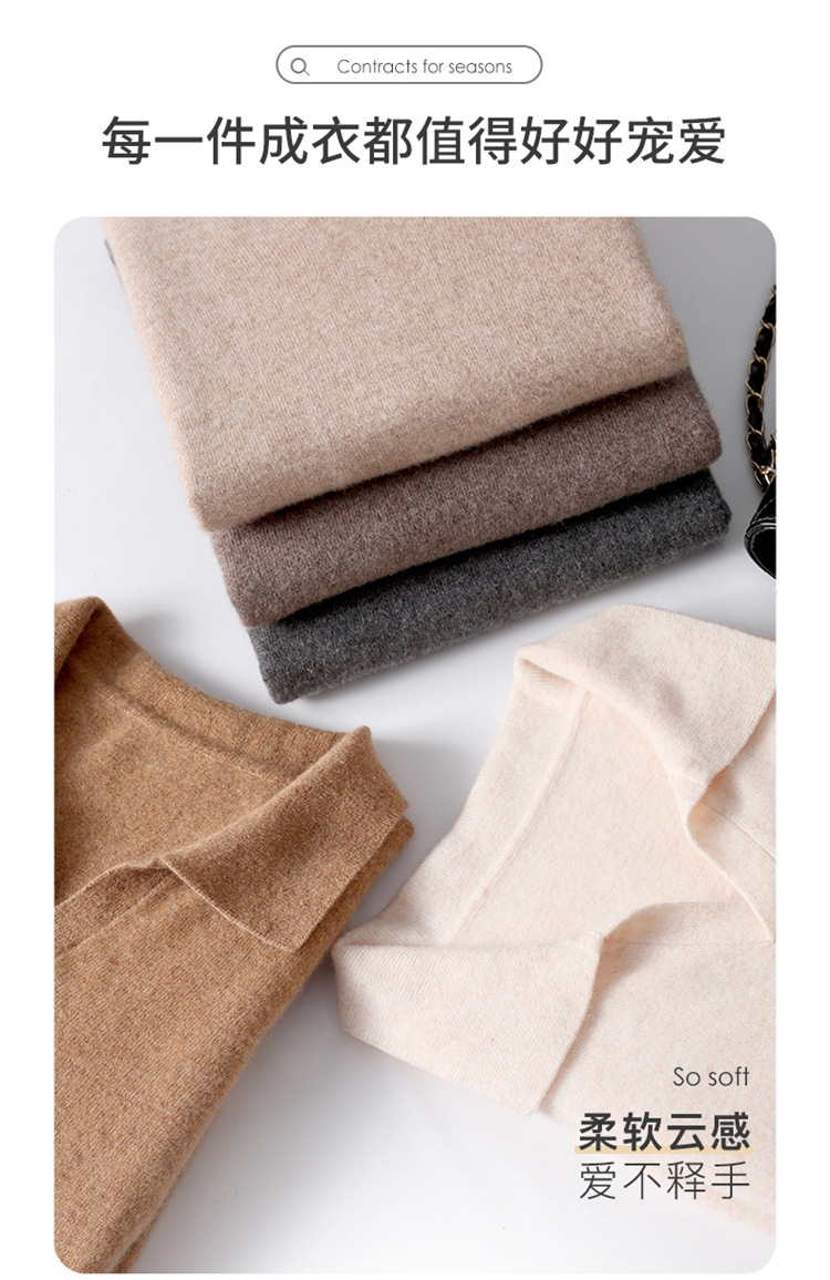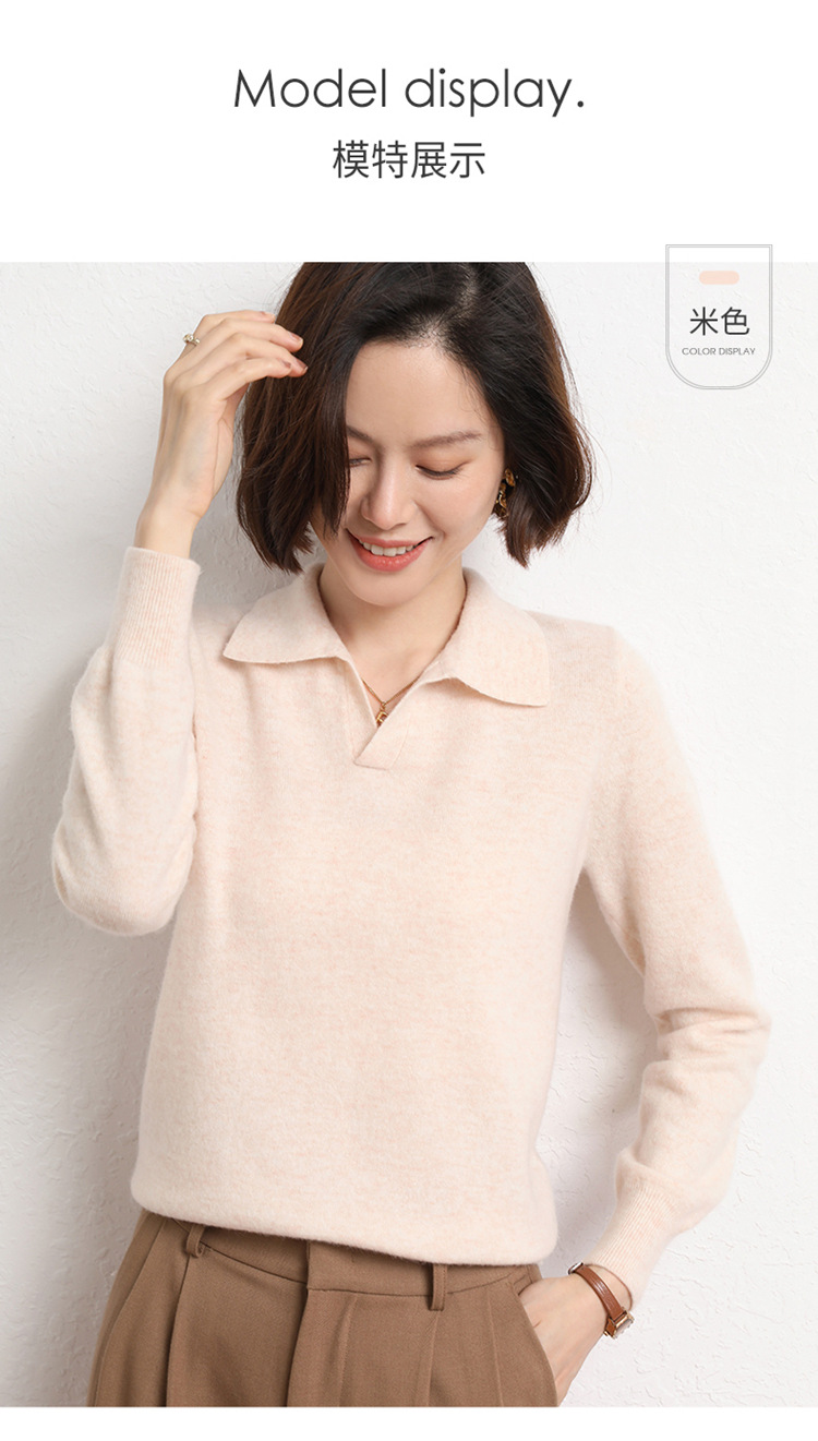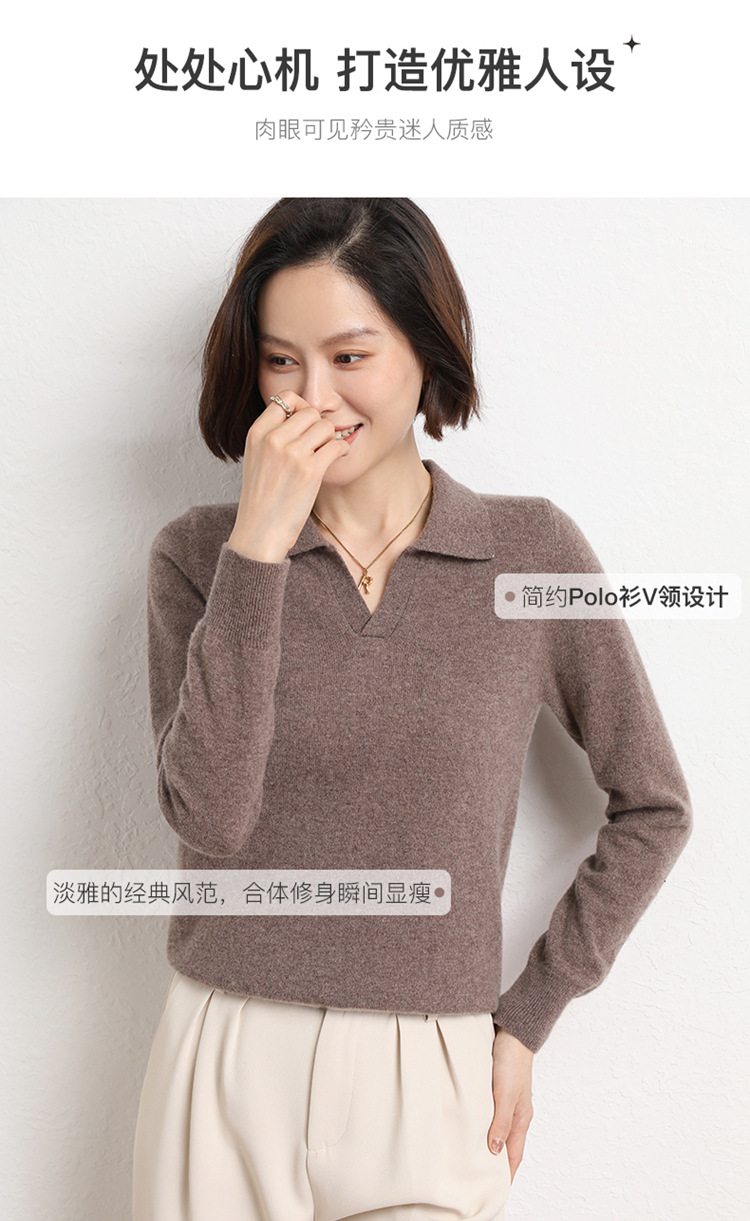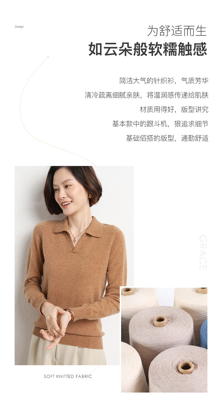 【秋季时尚穿搭】polo领针织衫 经典翻领设计 小众v领上衣 宽松慵懒长袖 百搭显瘦