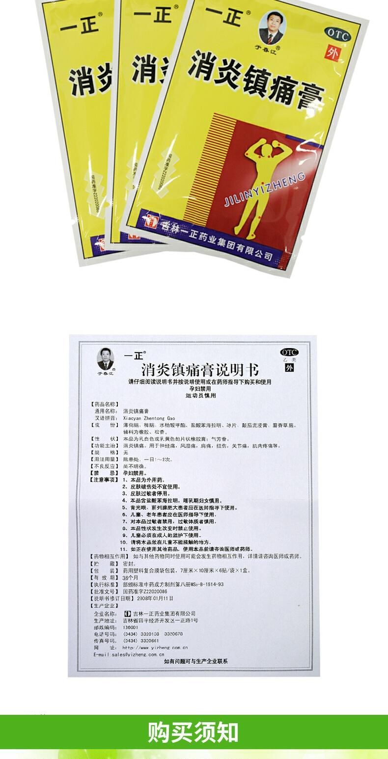 吉林一正 消炎镇痛膏6贴/盒 消炎镇痛神经痛风湿痛肩痛扭伤关节痛