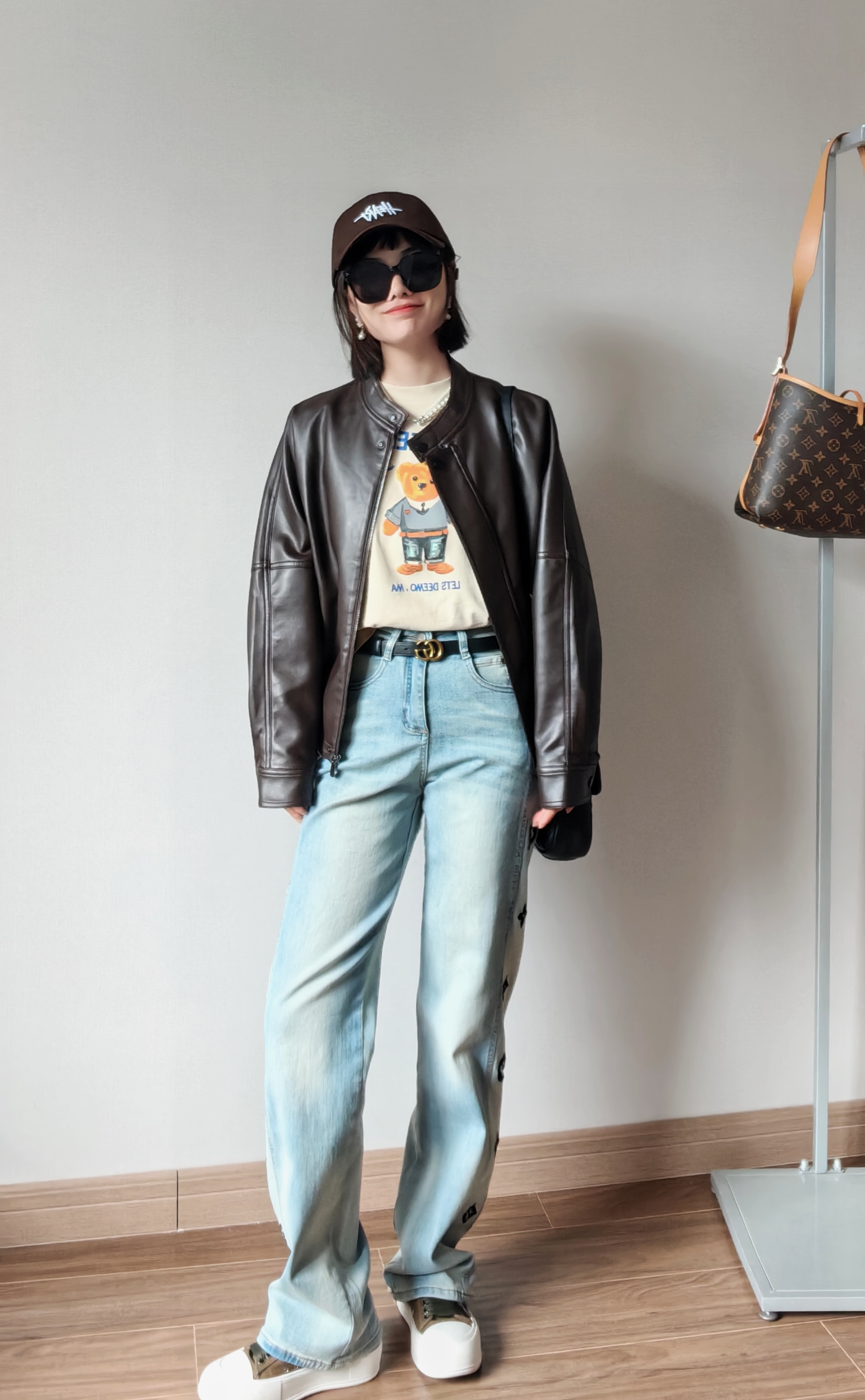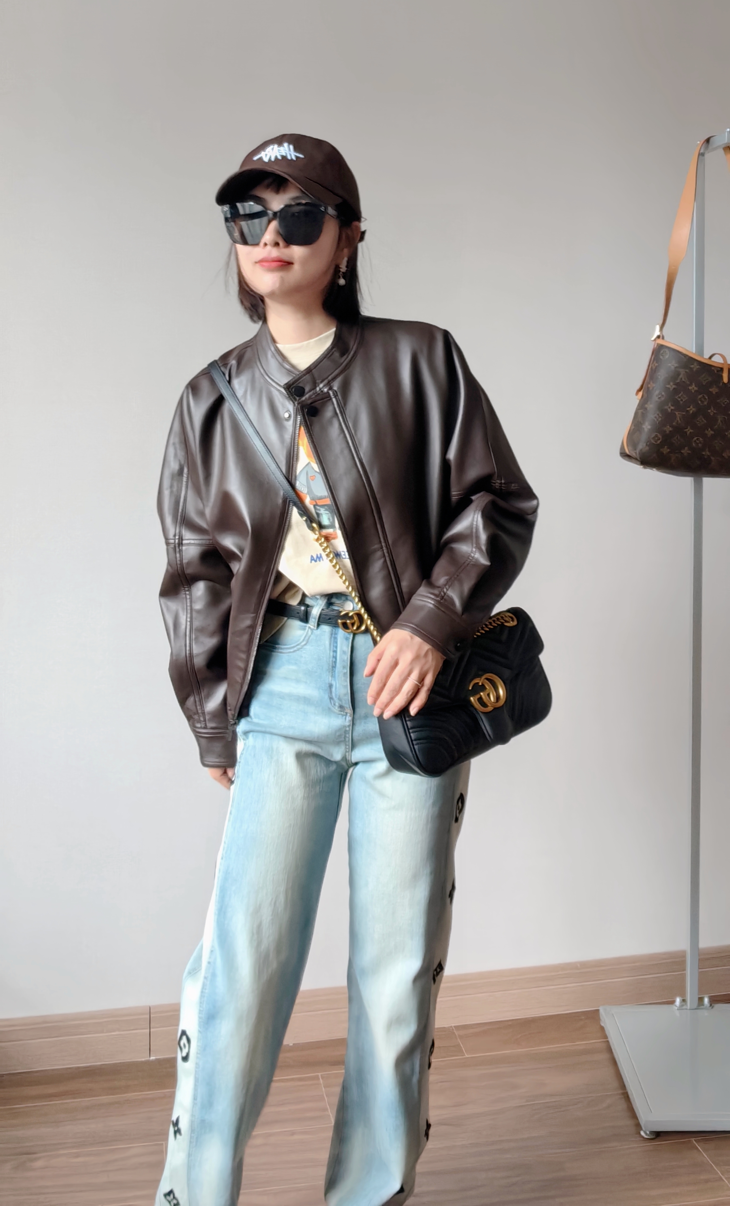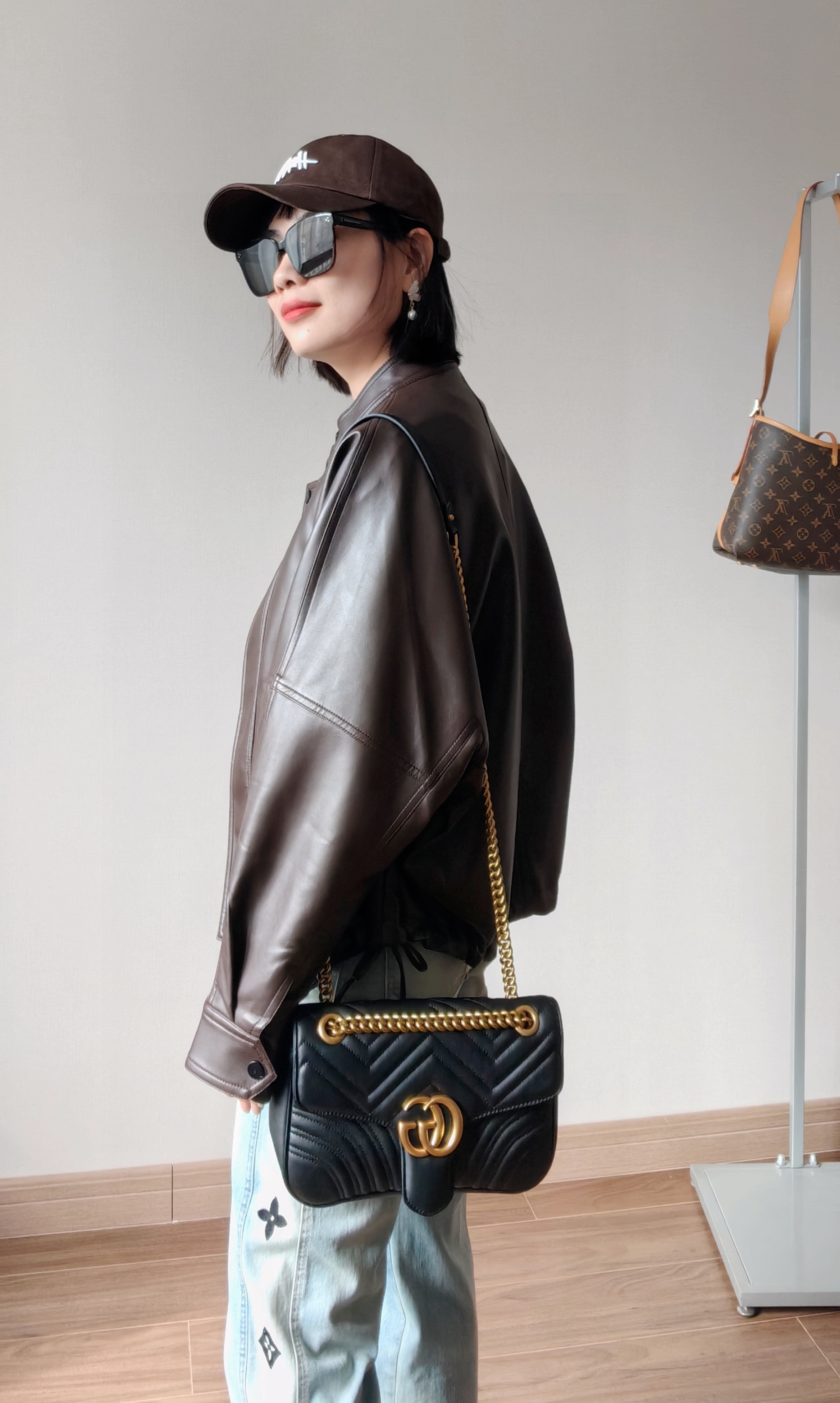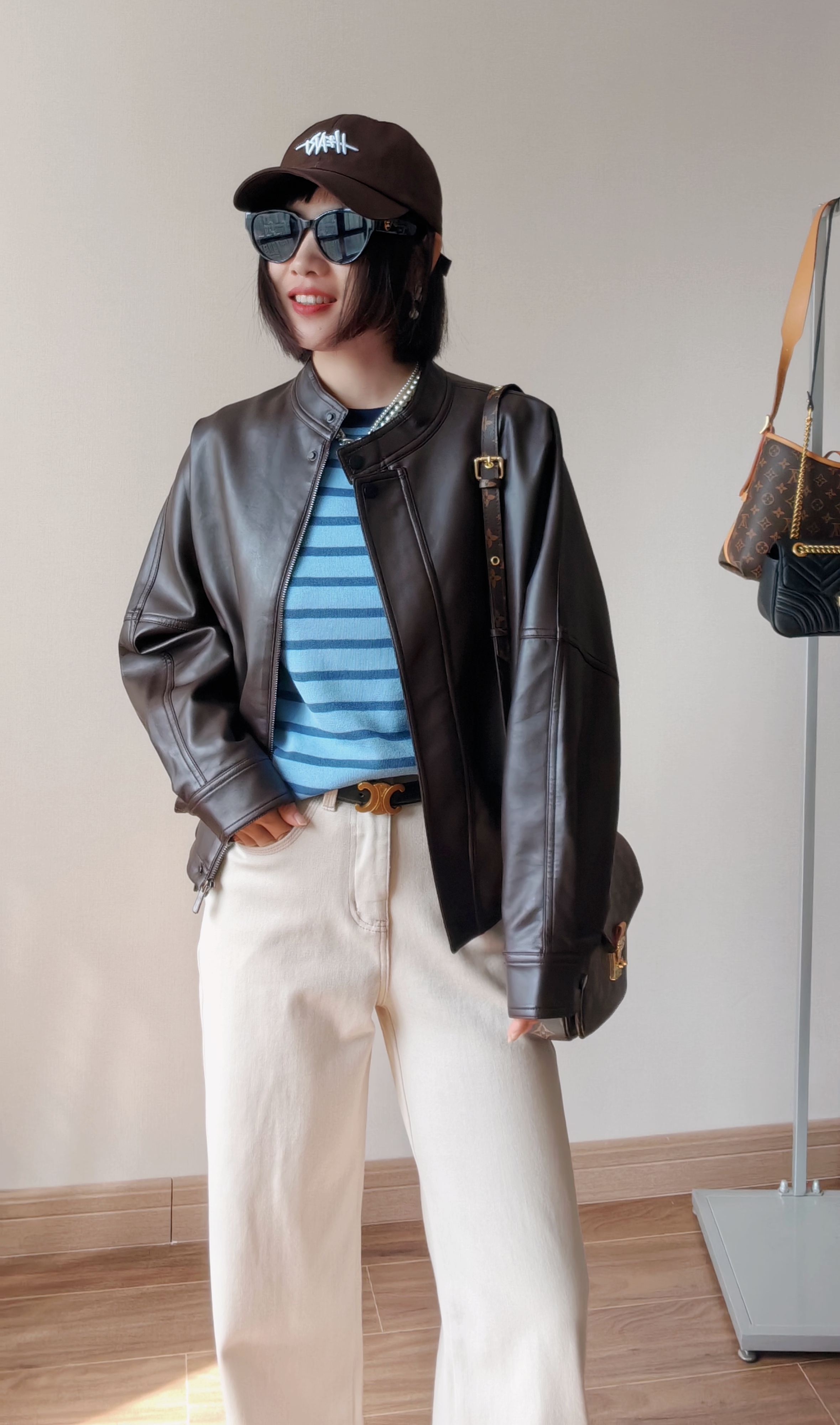 皮料很细腻顺滑,整体版型不压身,面料也不厚重,体感舒适。