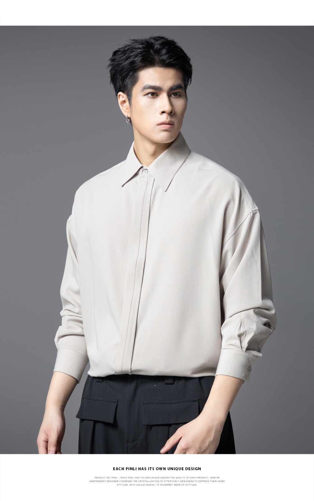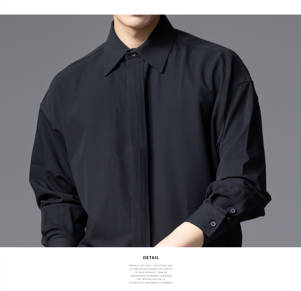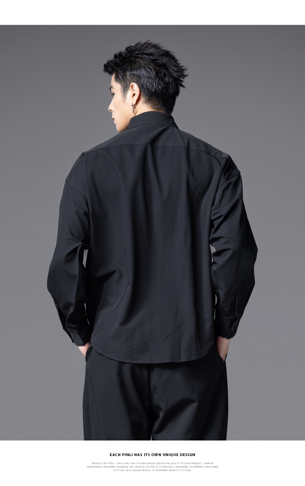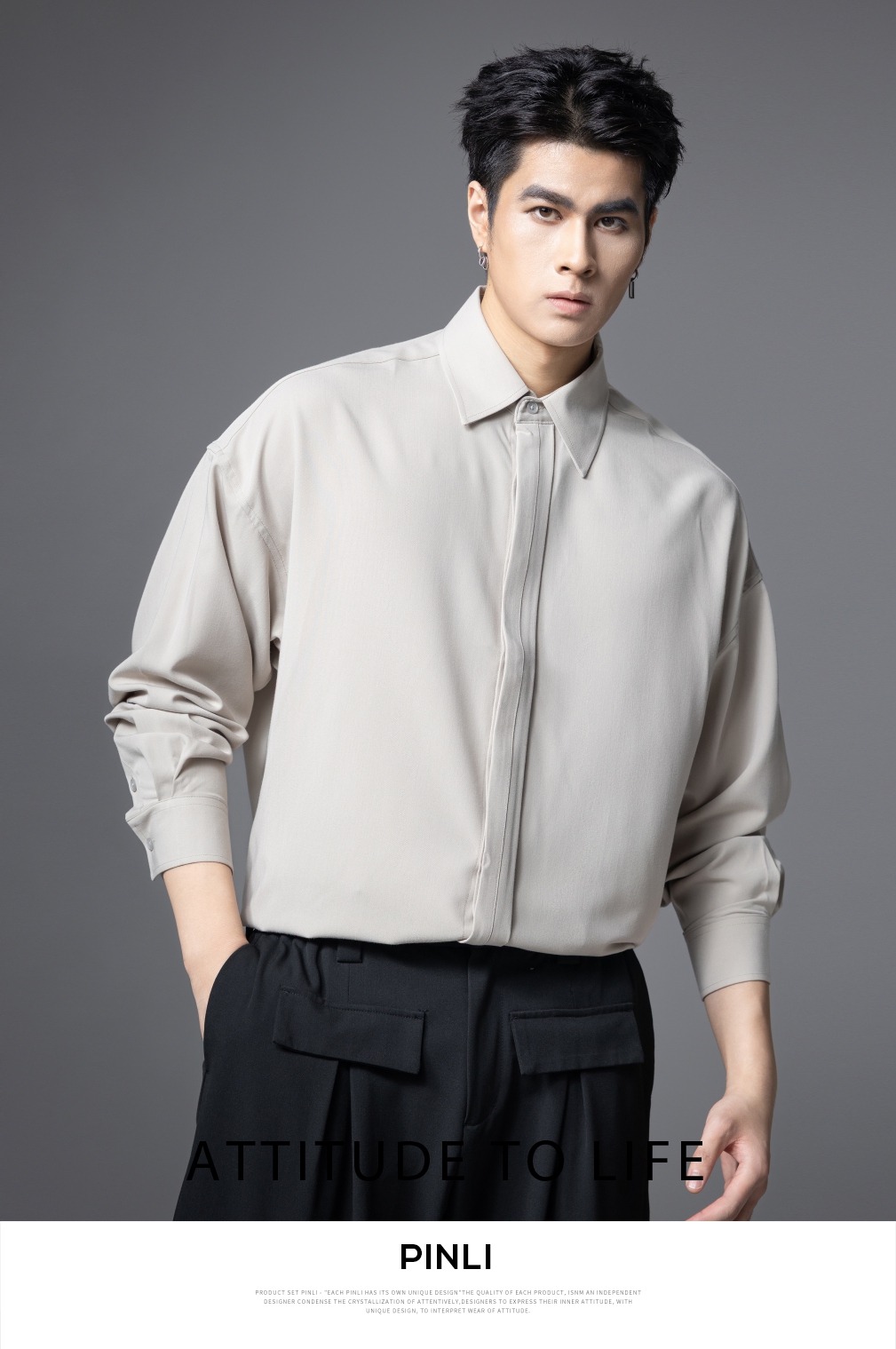PINLI品立2025秋季新款男士宽松尖领纯色打底长袖衬衫休闲衬衣潮GD253113066
