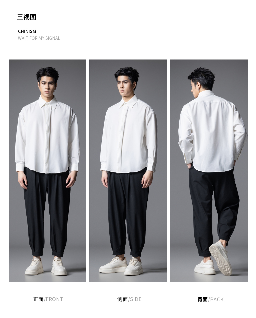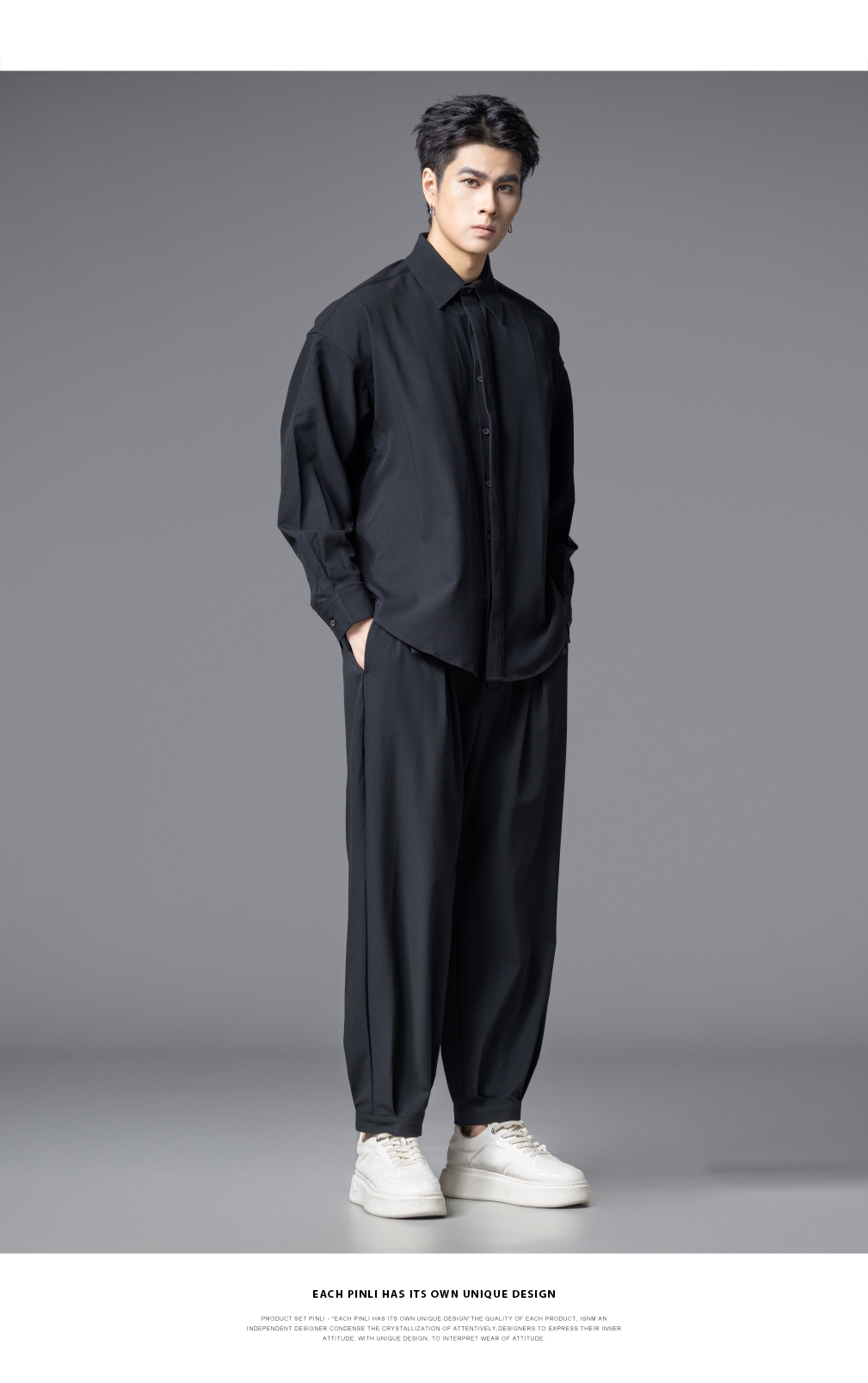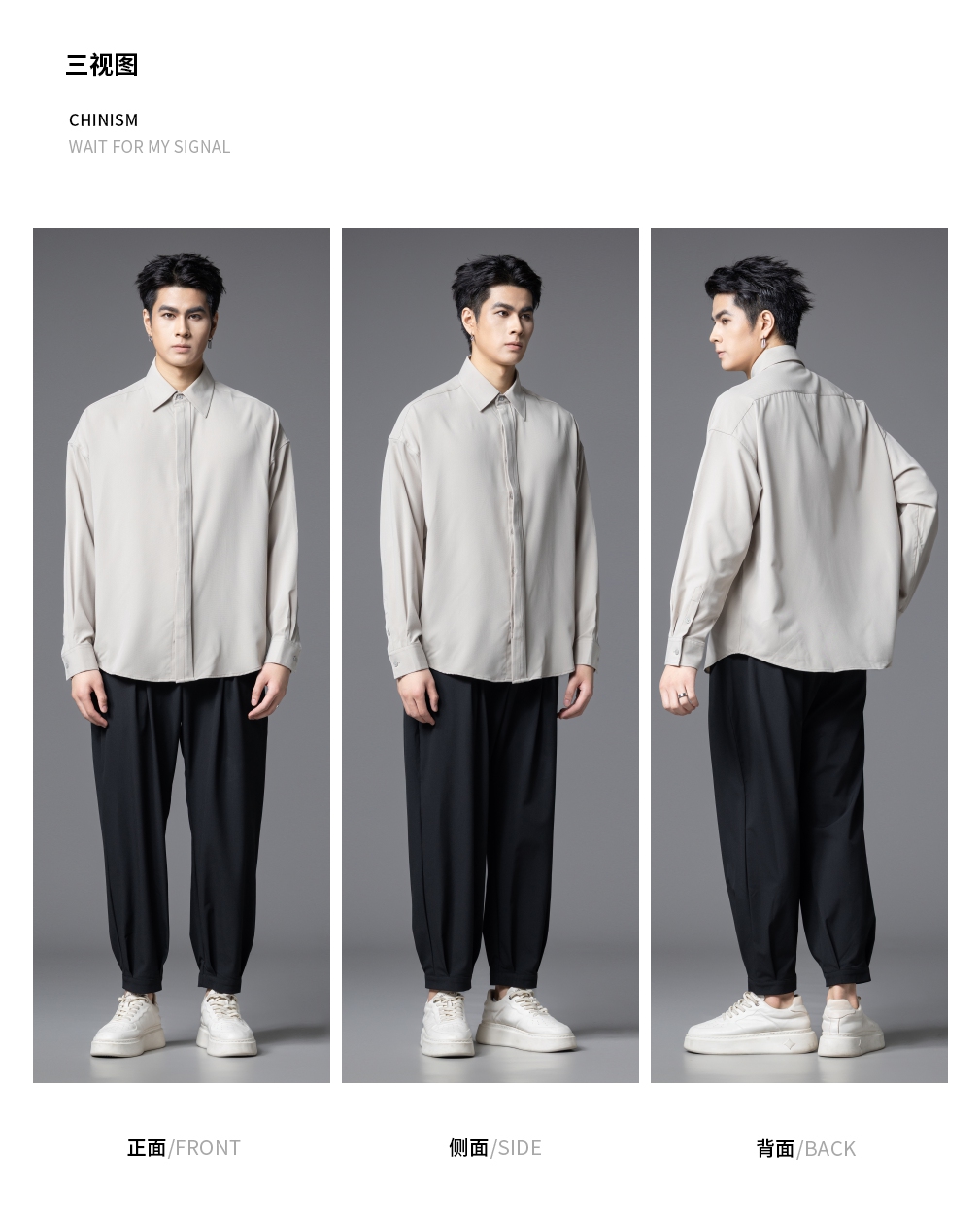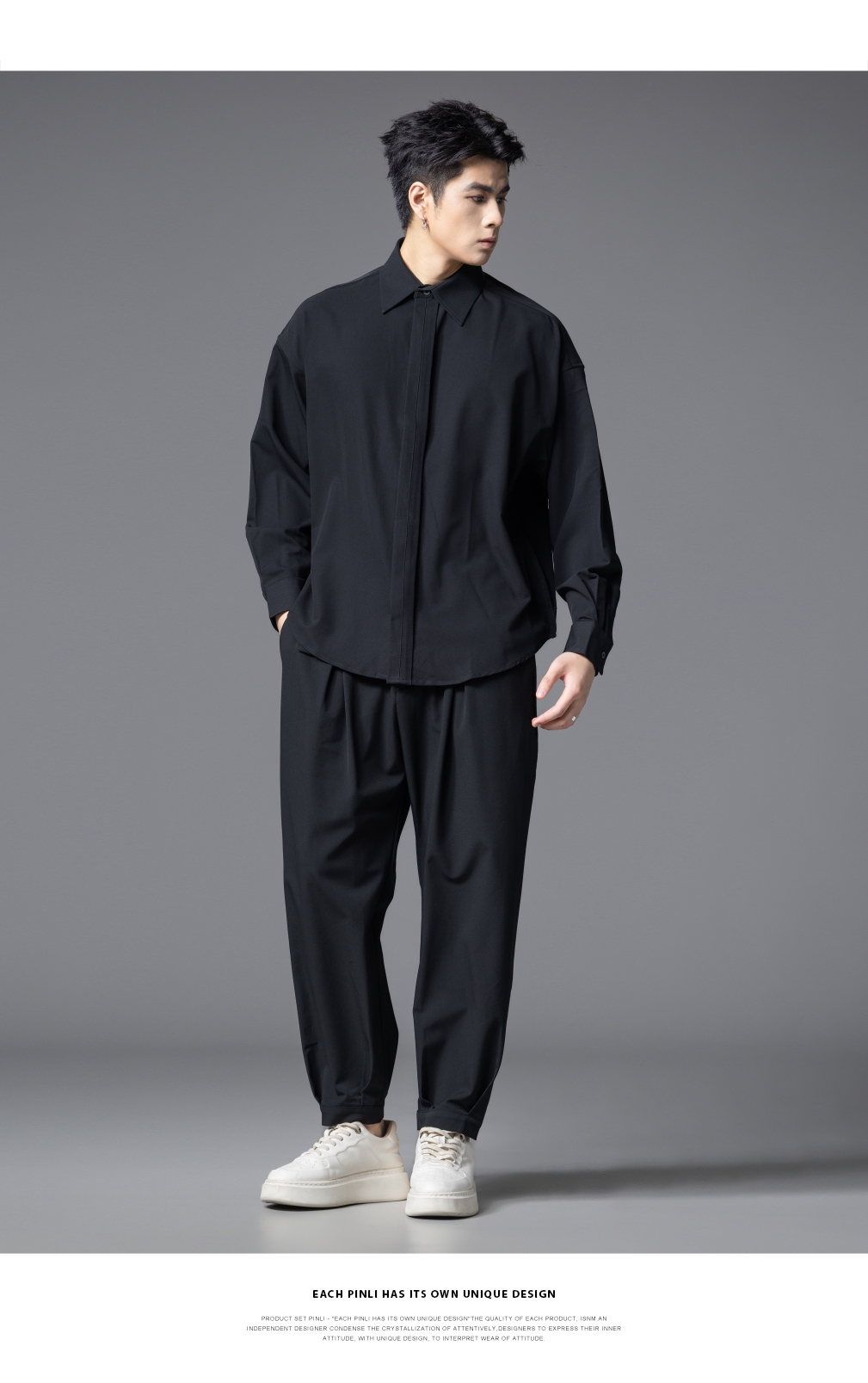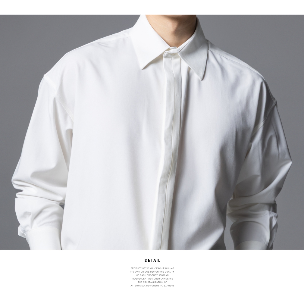 PINLI品立2025秋季新款男士宽松尖领纯色打底长袖衬衫休闲衬衣潮GD253113066