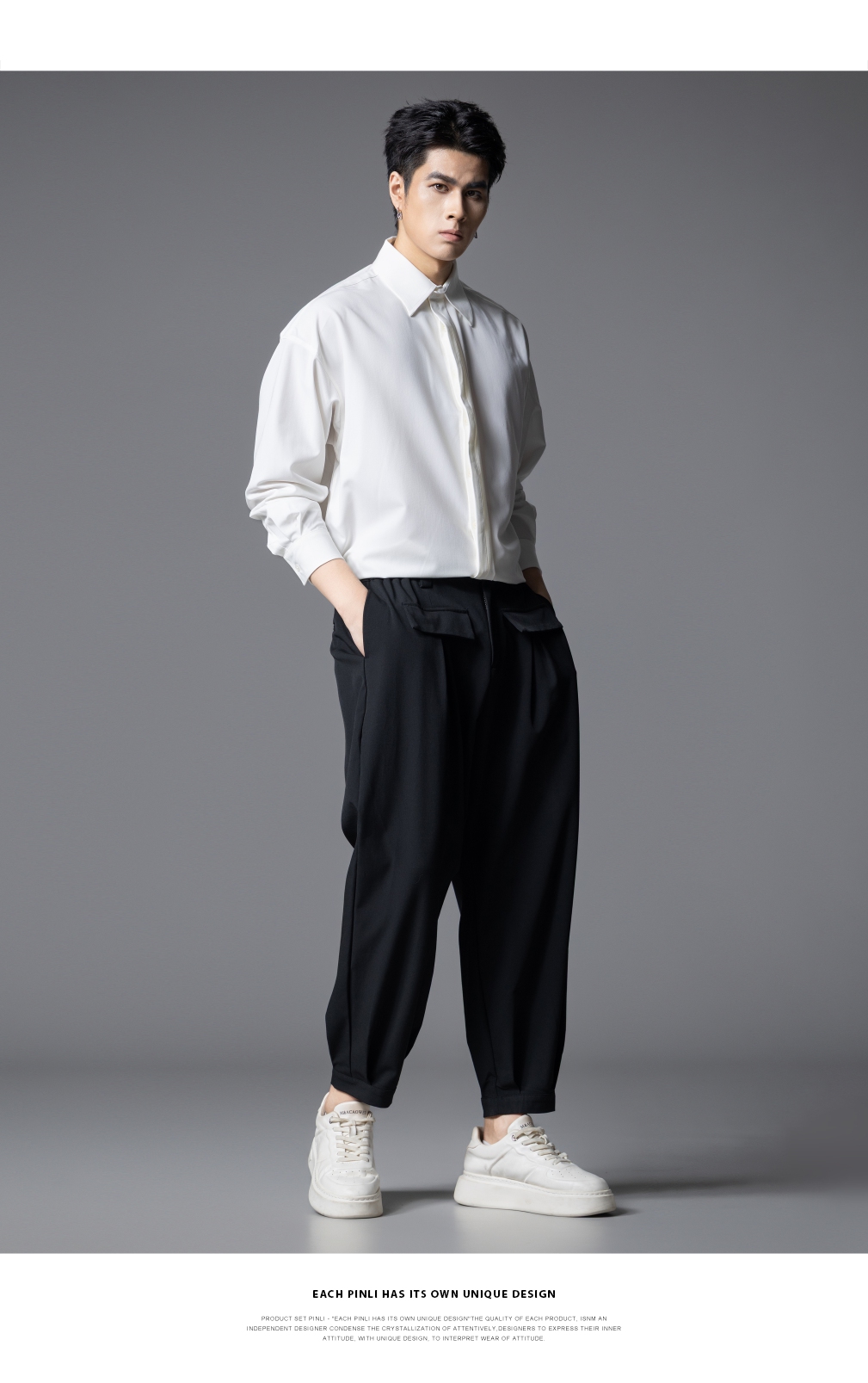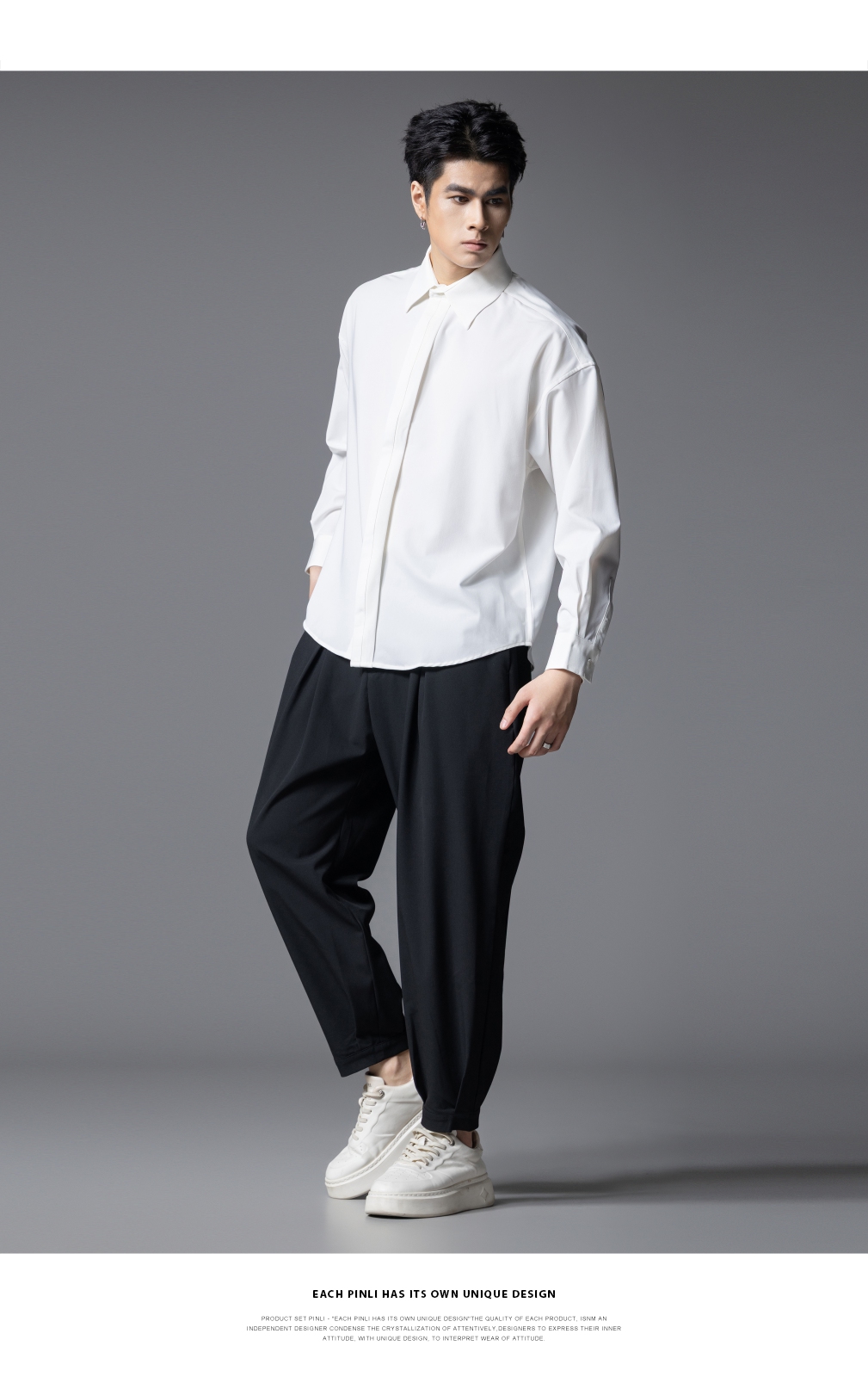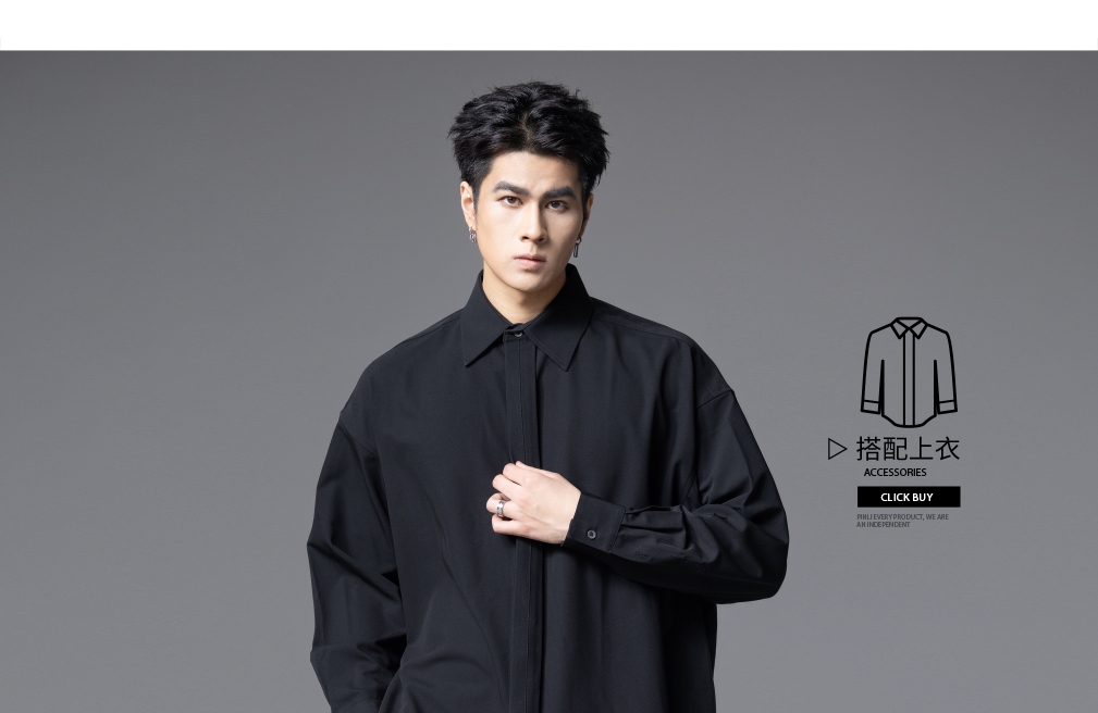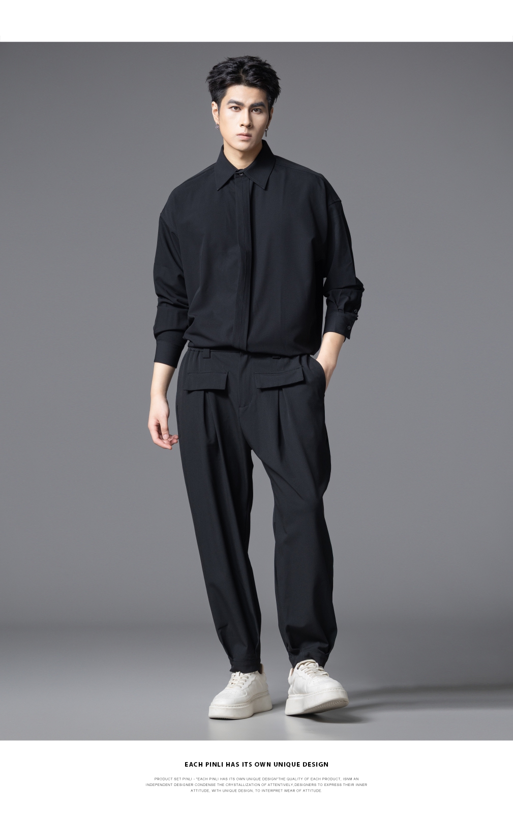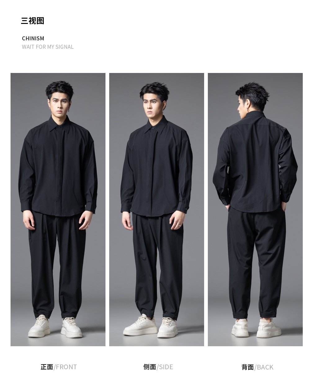 PINLI品立2025秋季新款男士宽松尖领纯色打底长袖衬衫休闲衬衣潮GD253113066