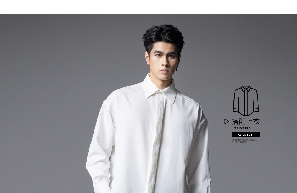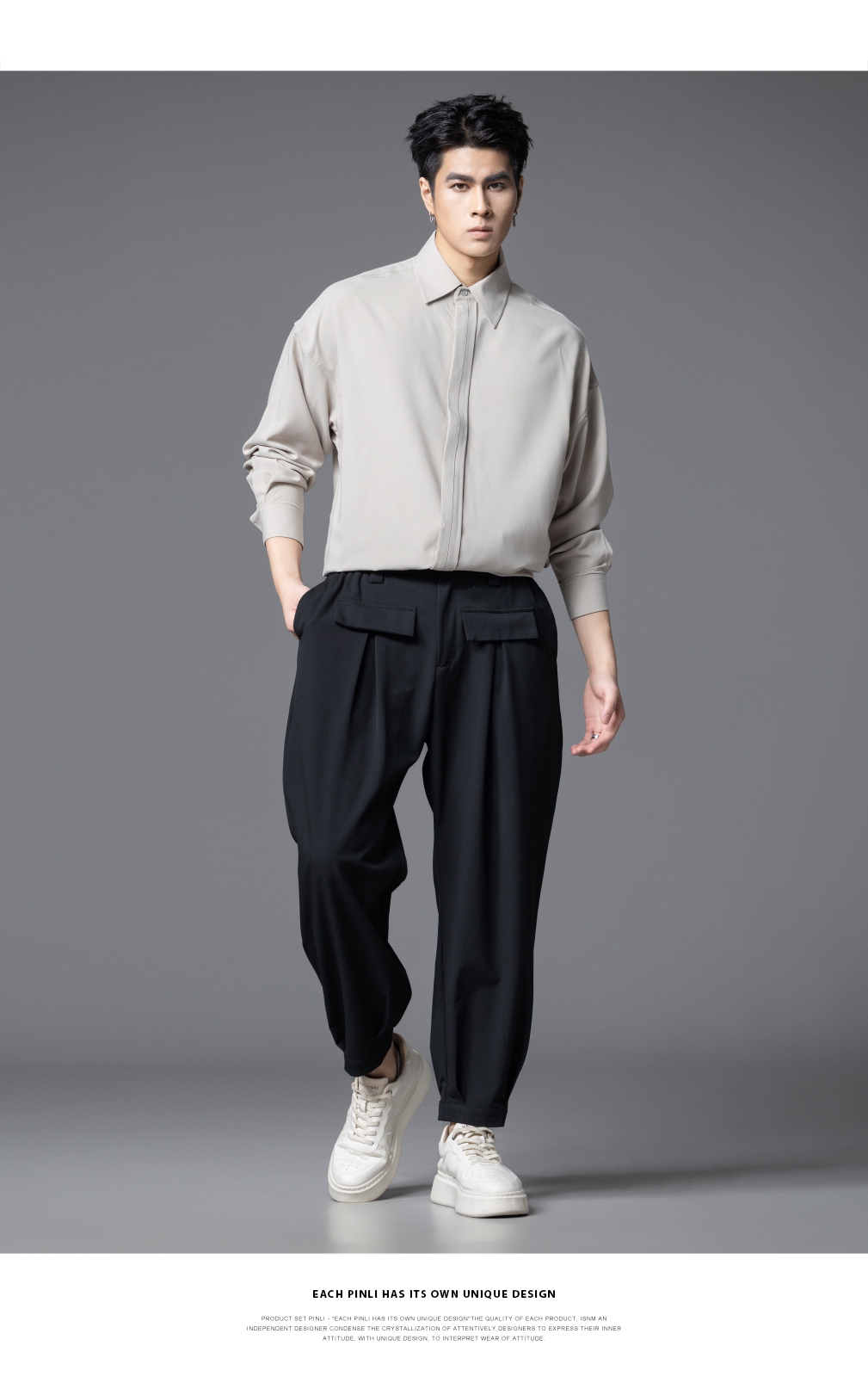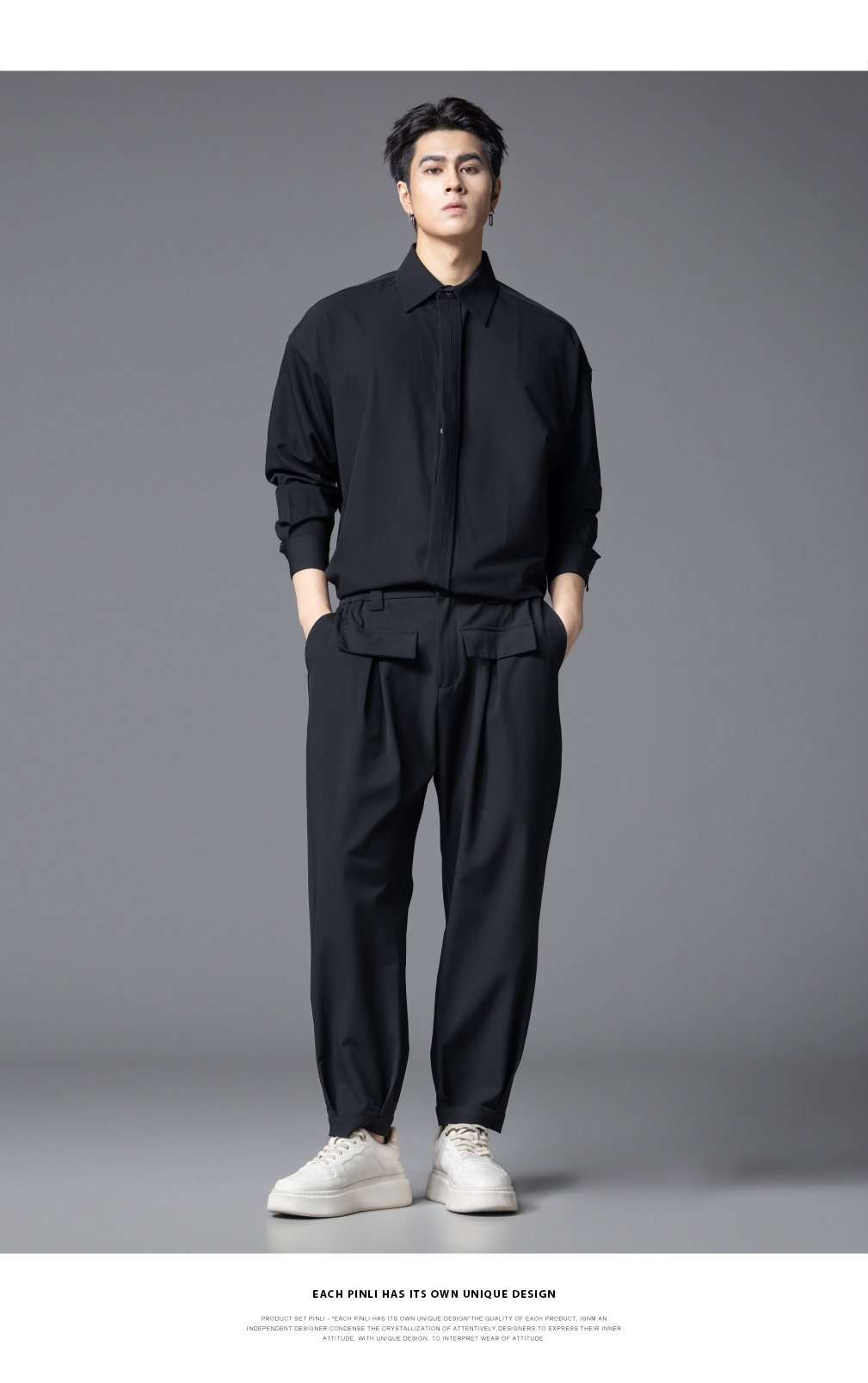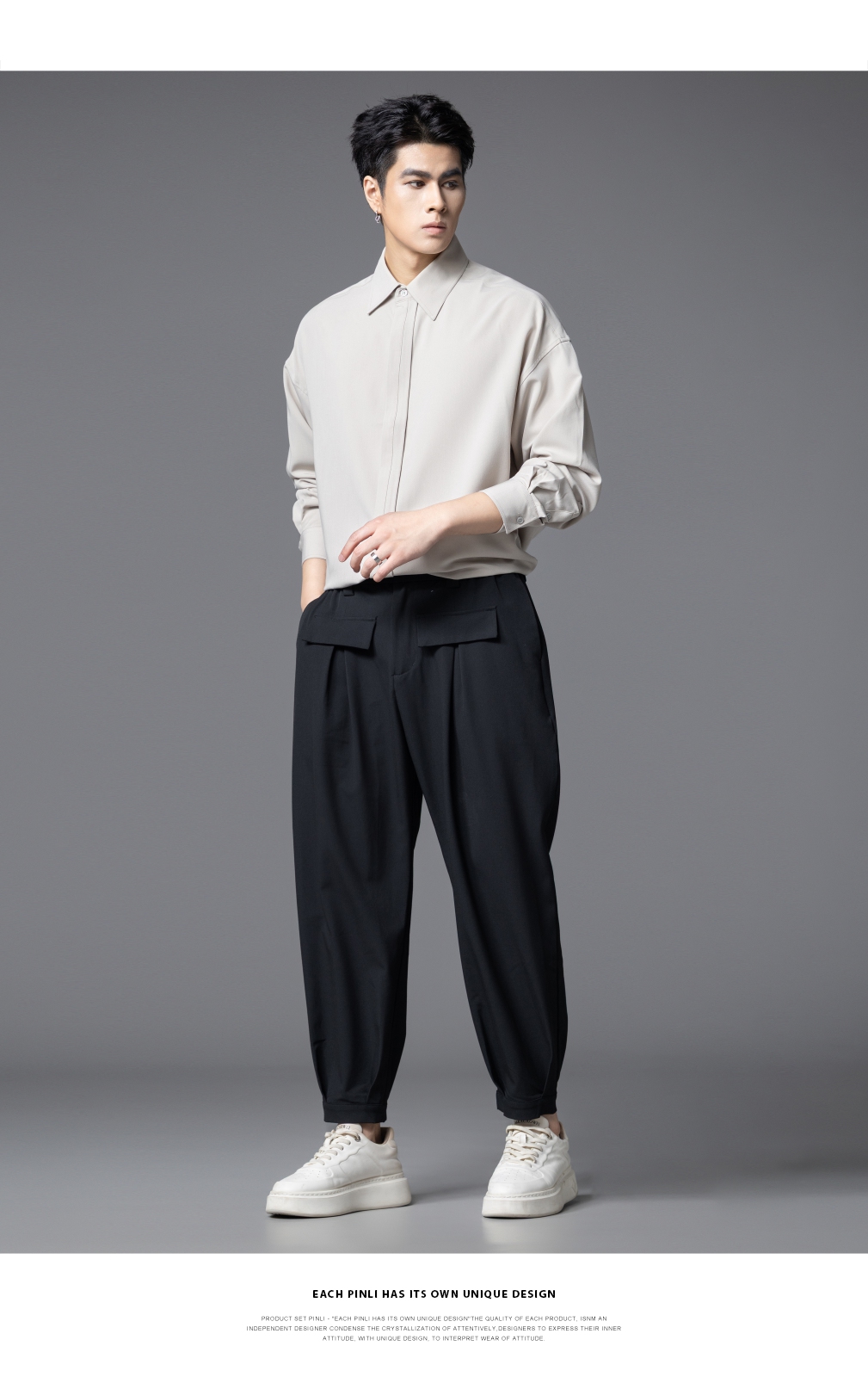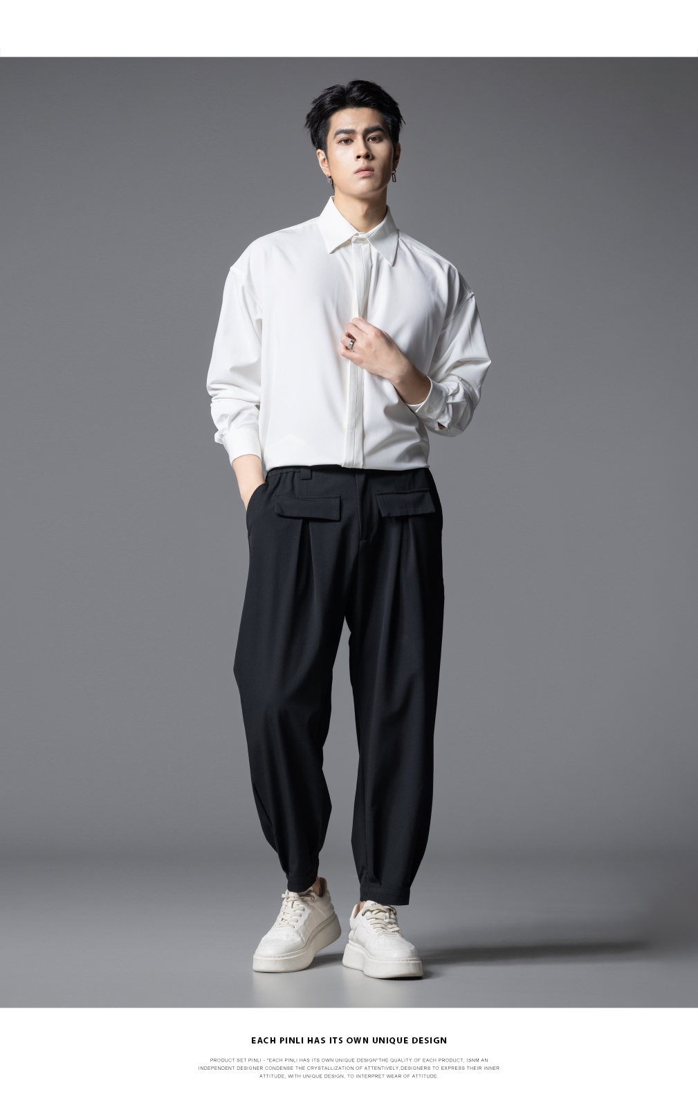 PINLI品立2025秋季新款男士宽松尖领纯色打底长袖衬衫休闲衬衣潮GD253113066