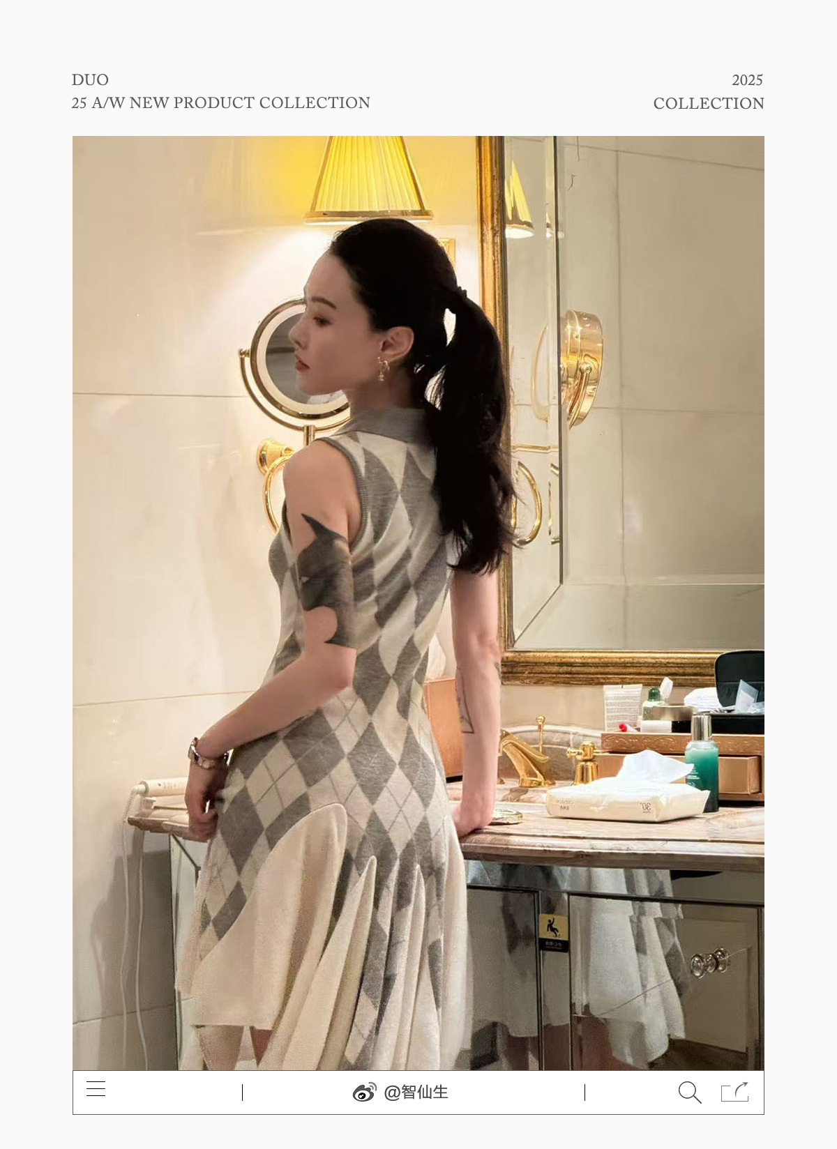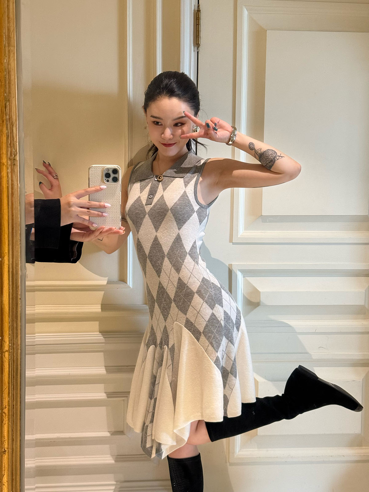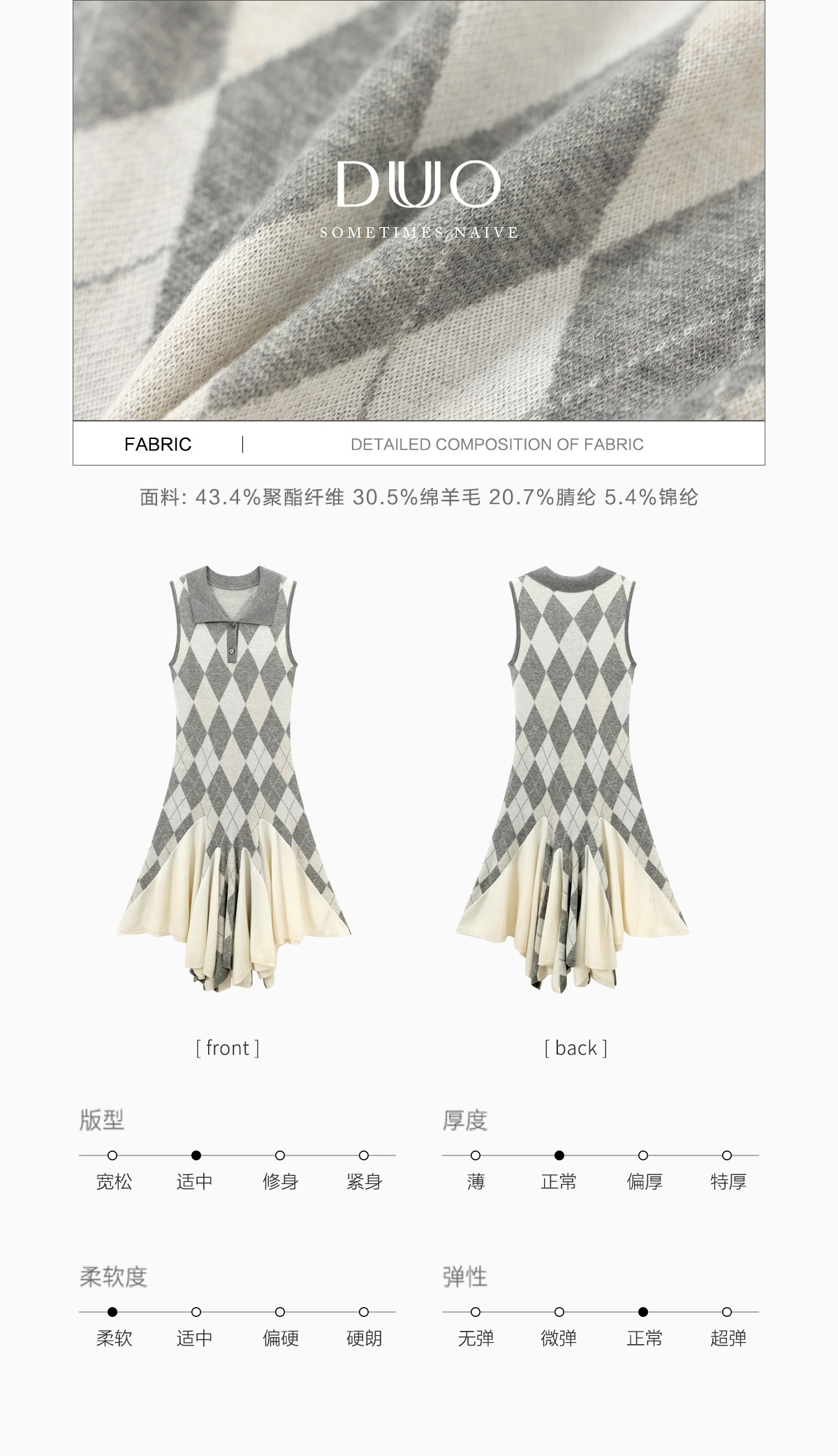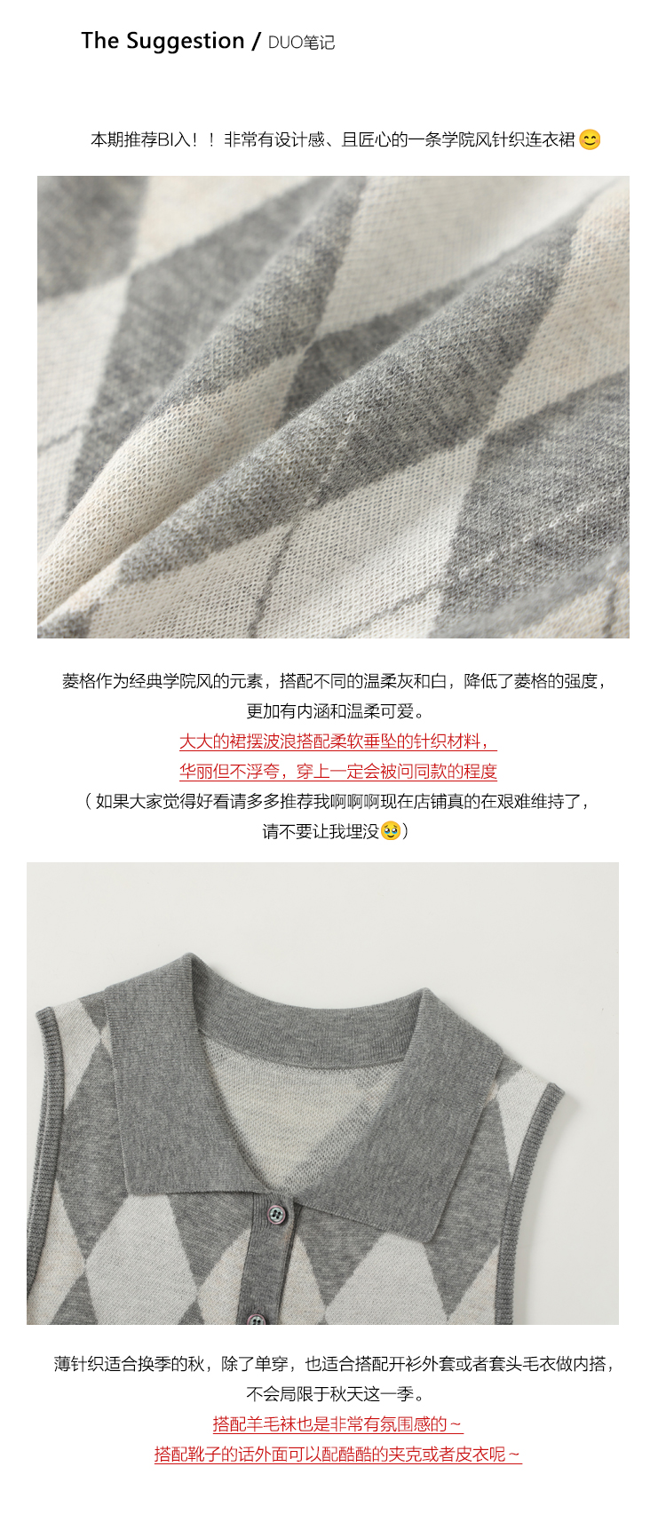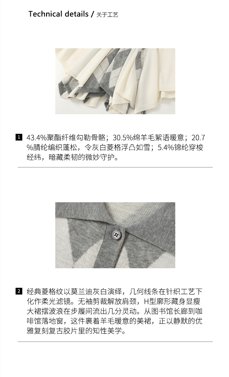 DUO智仙生 芭比学院衣橱 斯嘉丽佰分佰羊毛菱格拼接针织连衣裙