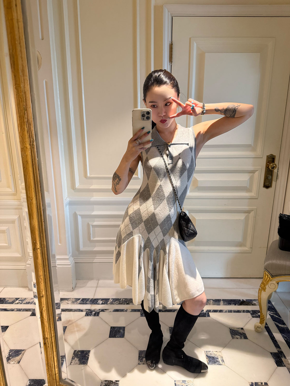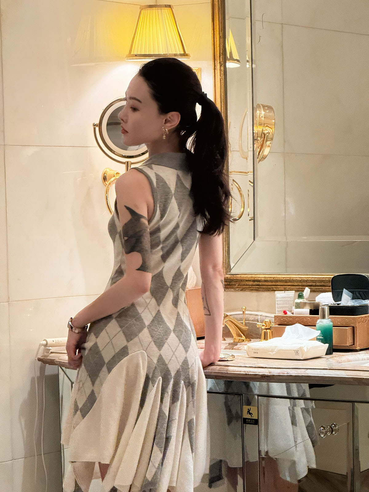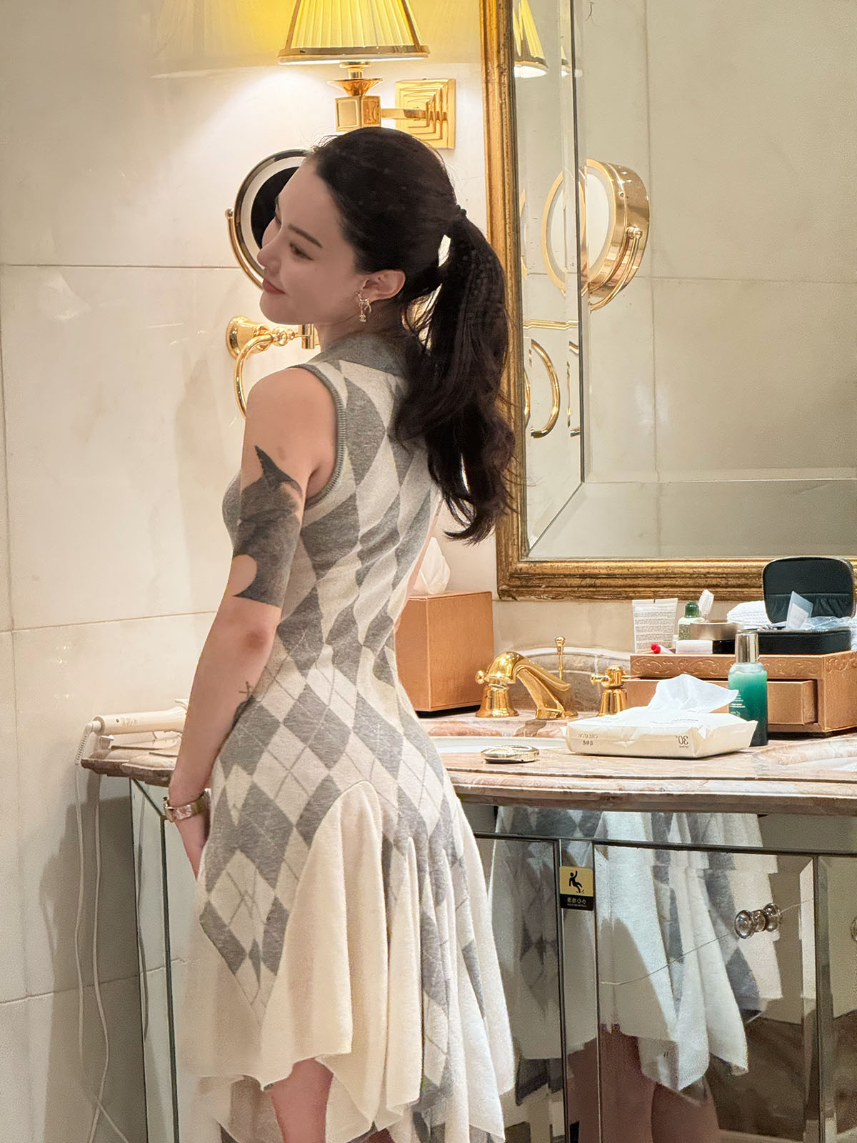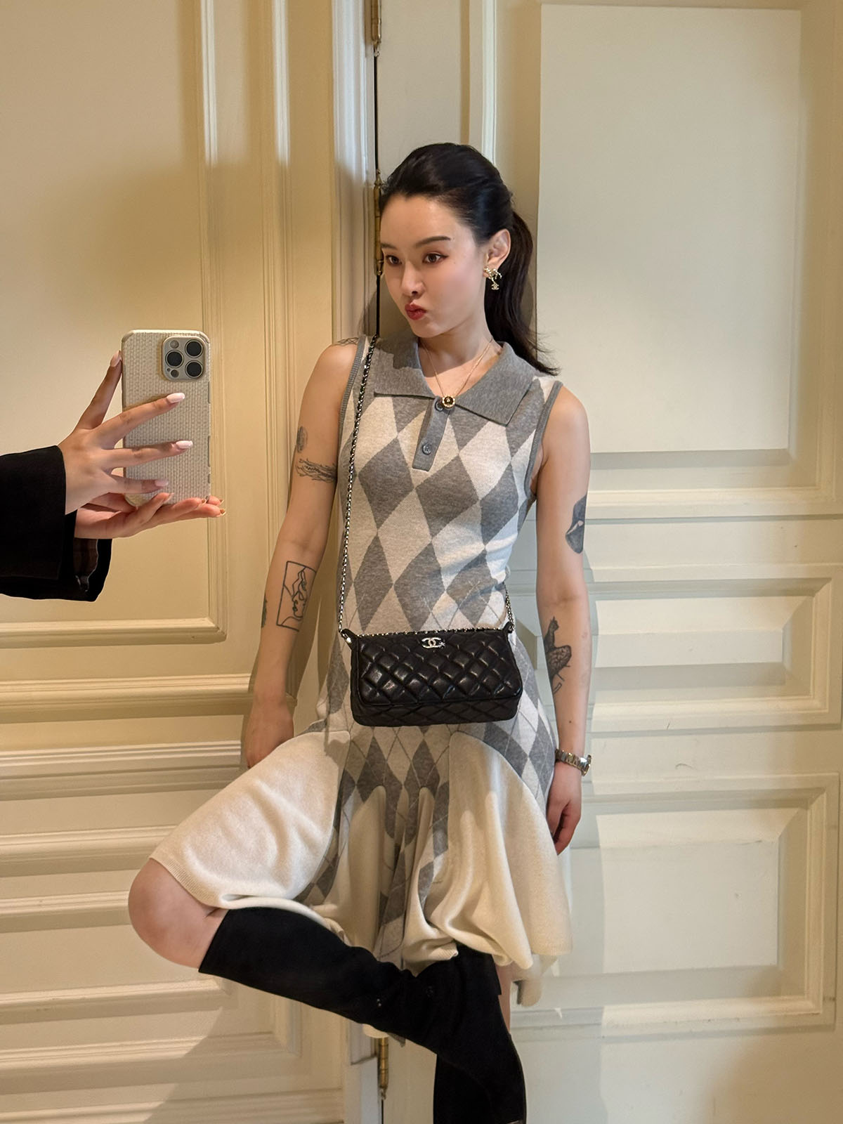 DUO智仙生 芭比学院衣橱 斯嘉丽佰分佰羊毛菱格拼接针织连衣裙