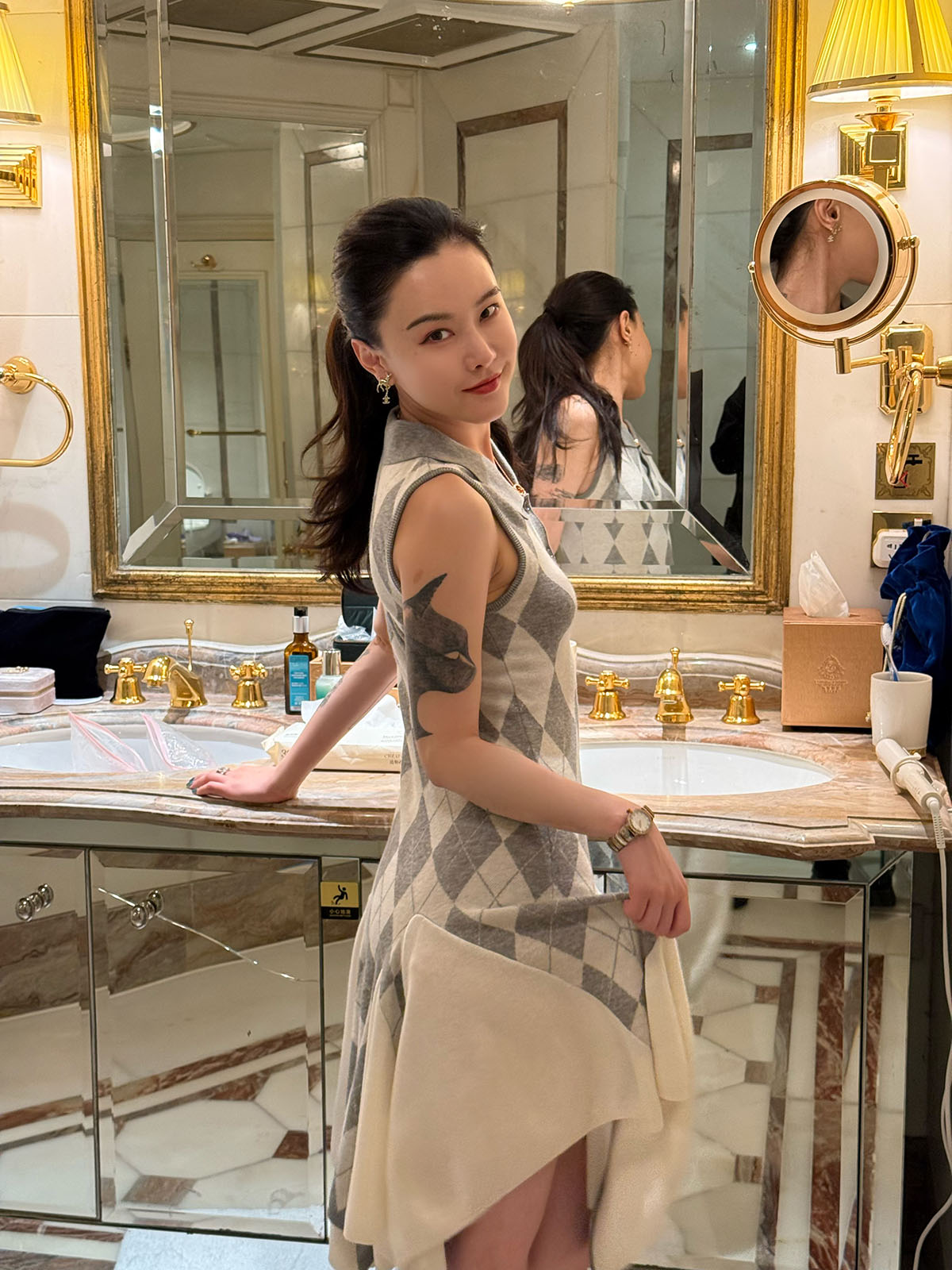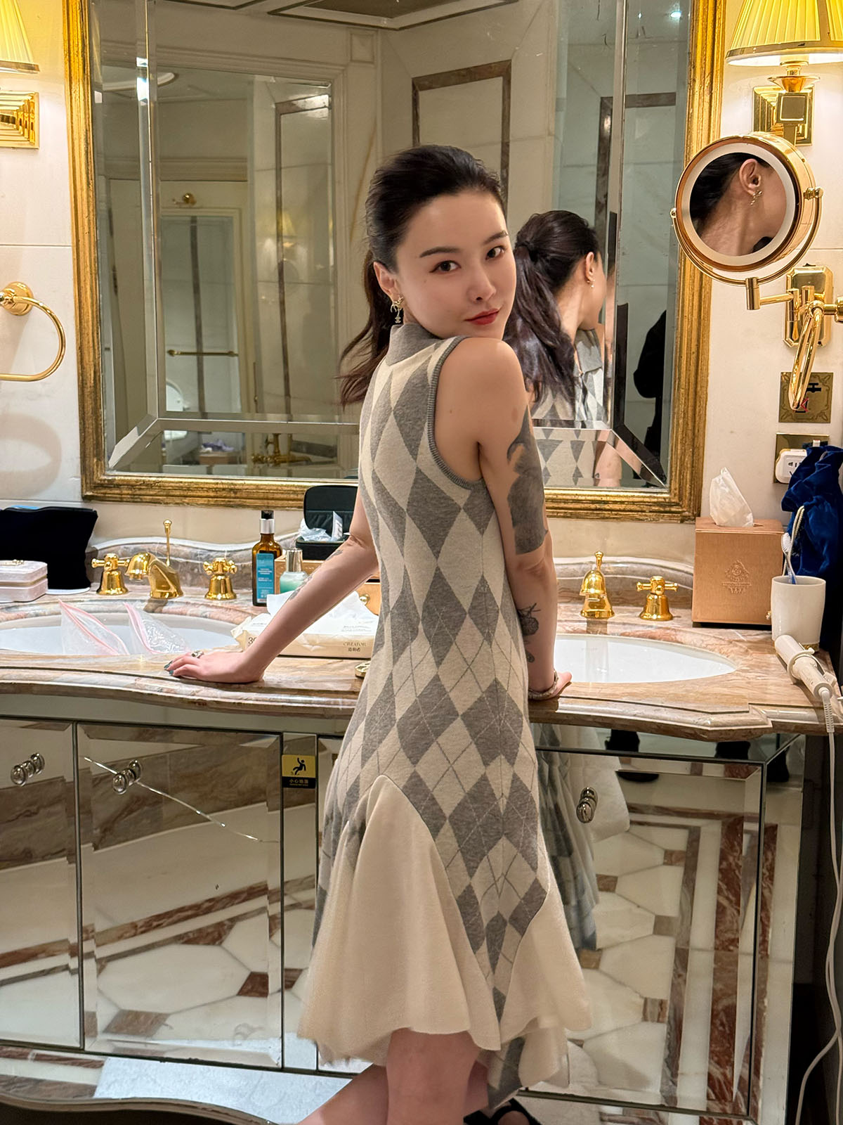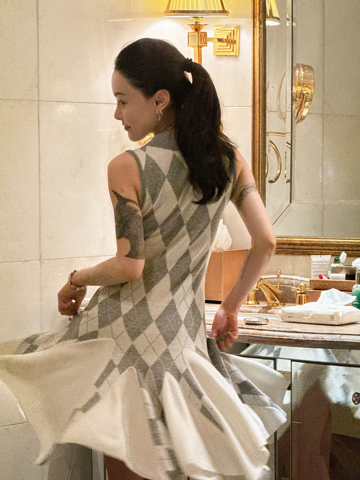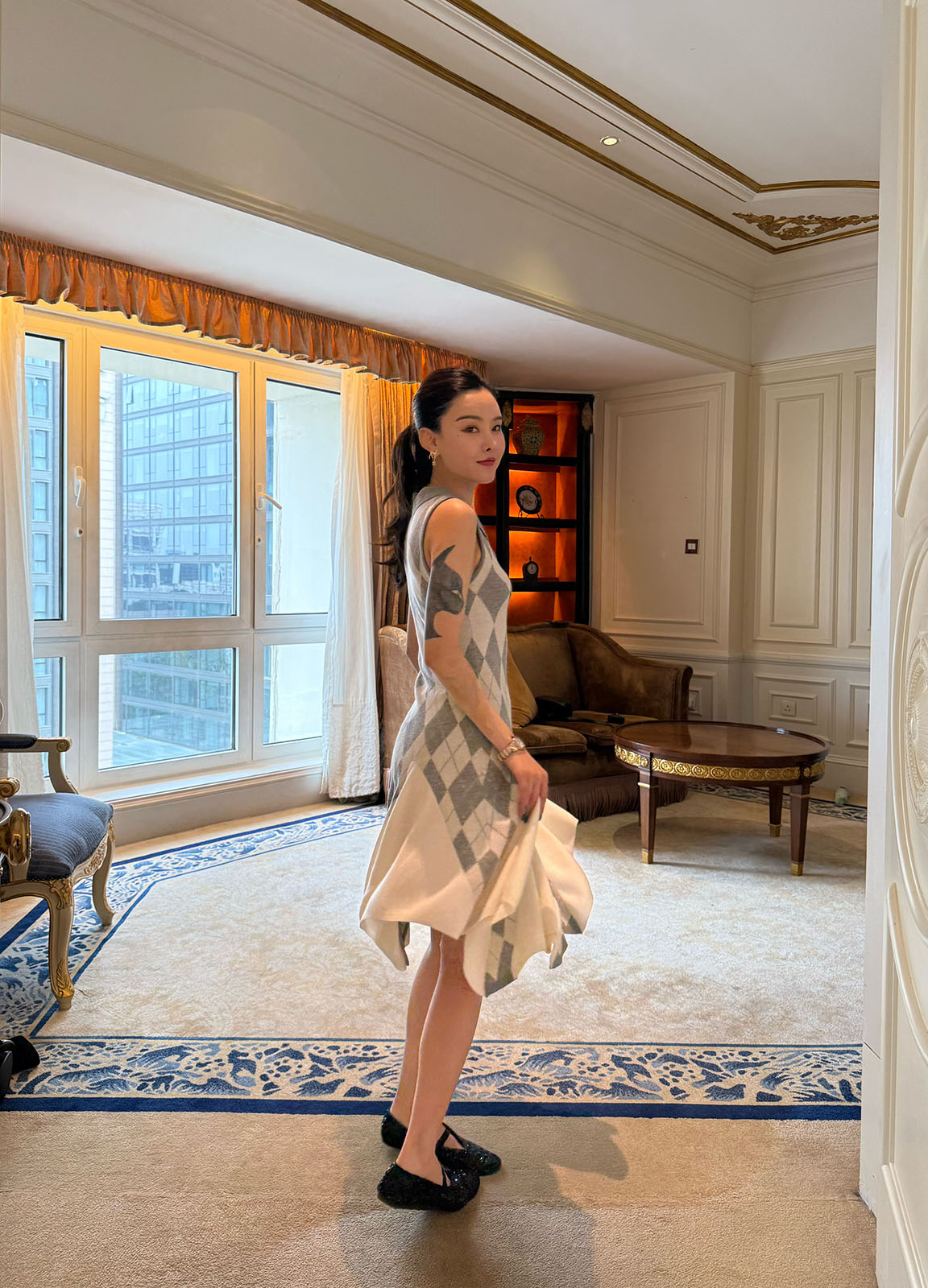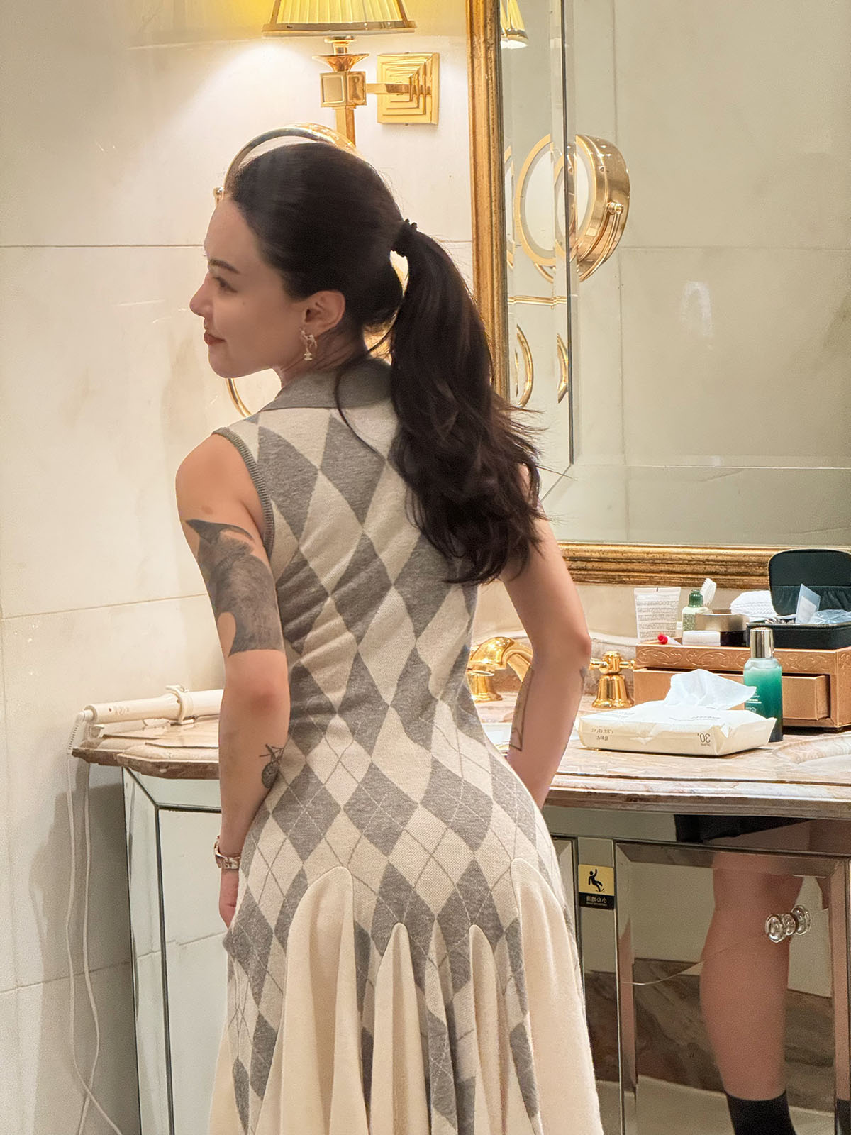 DUO智仙生 芭比学院衣橱 斯嘉丽佰分佰羊毛菱格拼接针织连衣裙