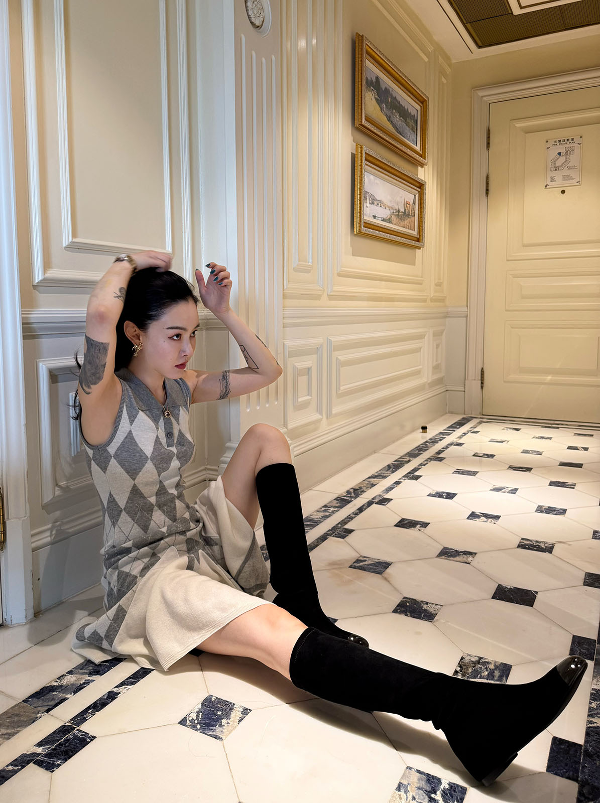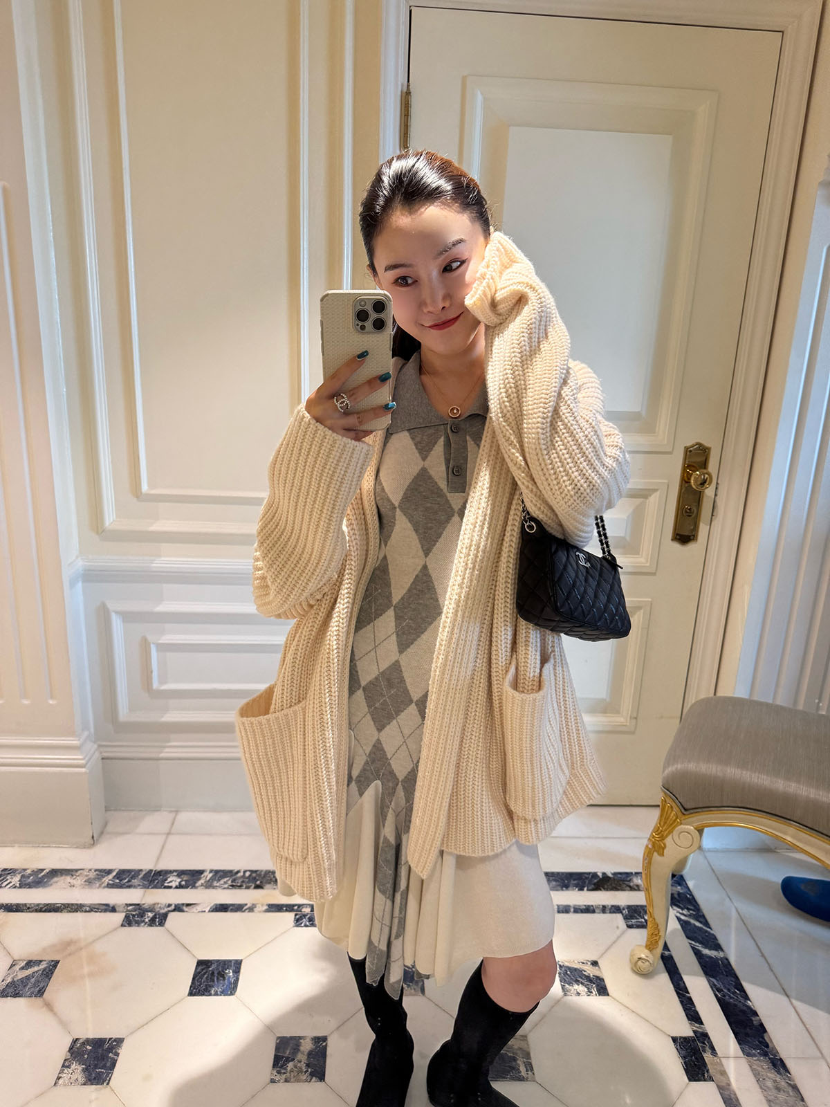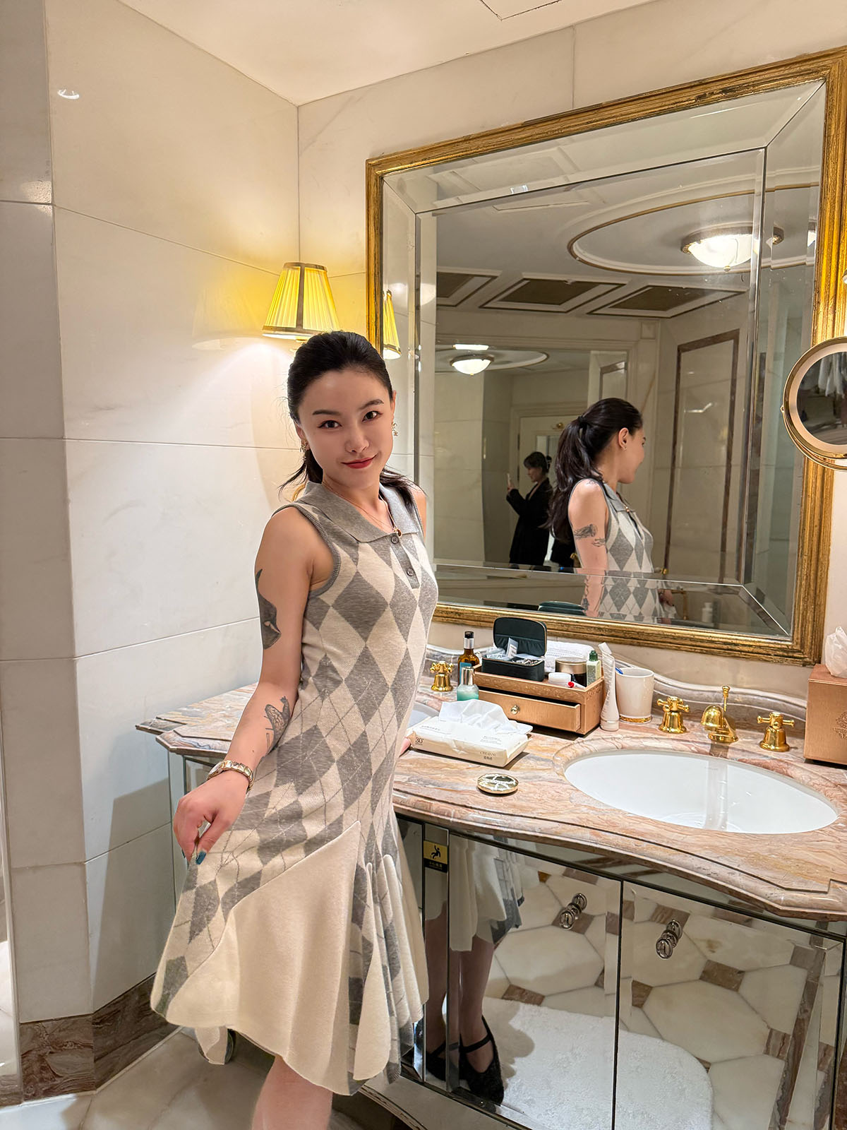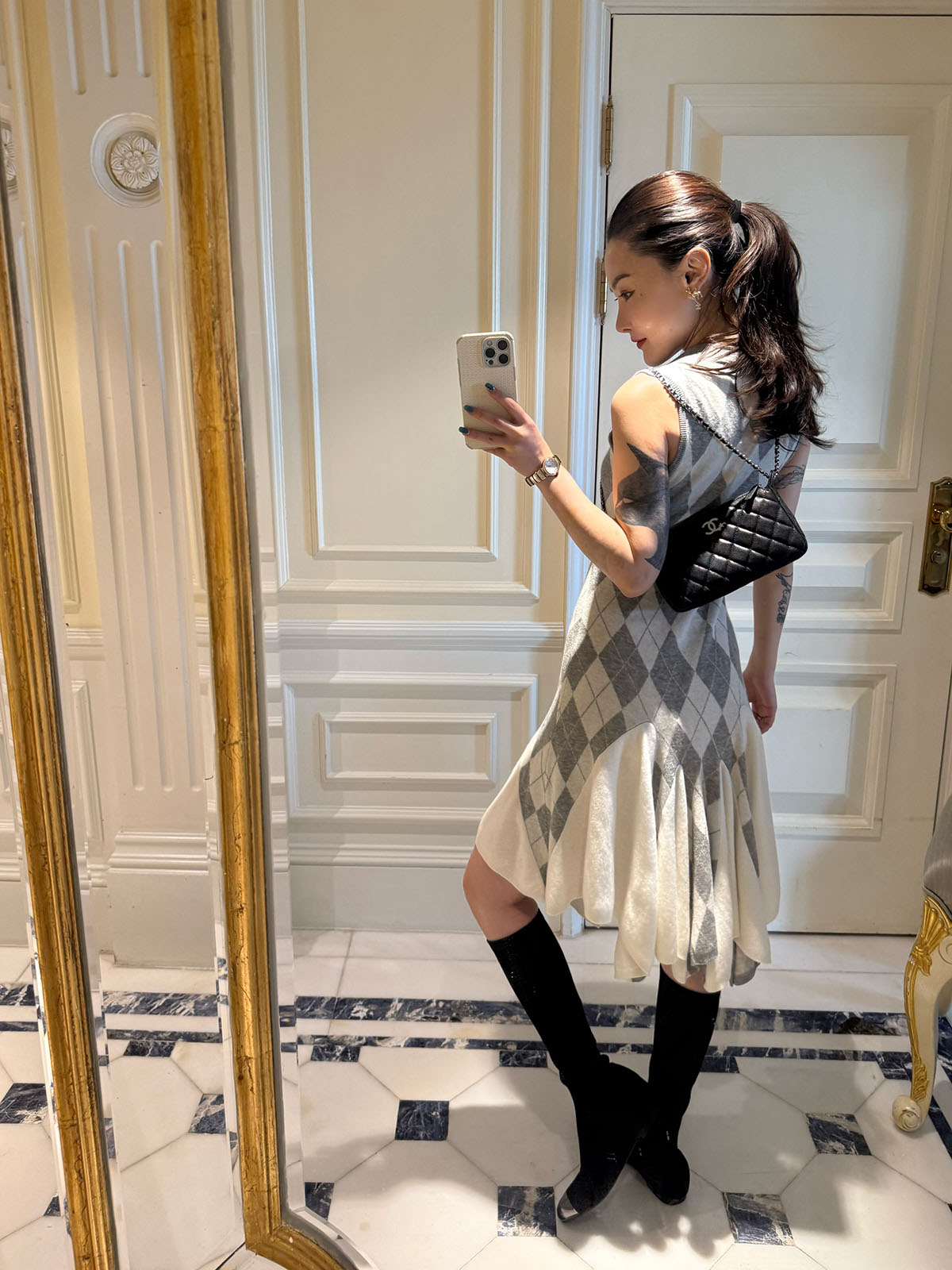 DUO智仙生 芭比学院衣橱 斯嘉丽佰分佰羊毛菱格拼接针织连衣裙
