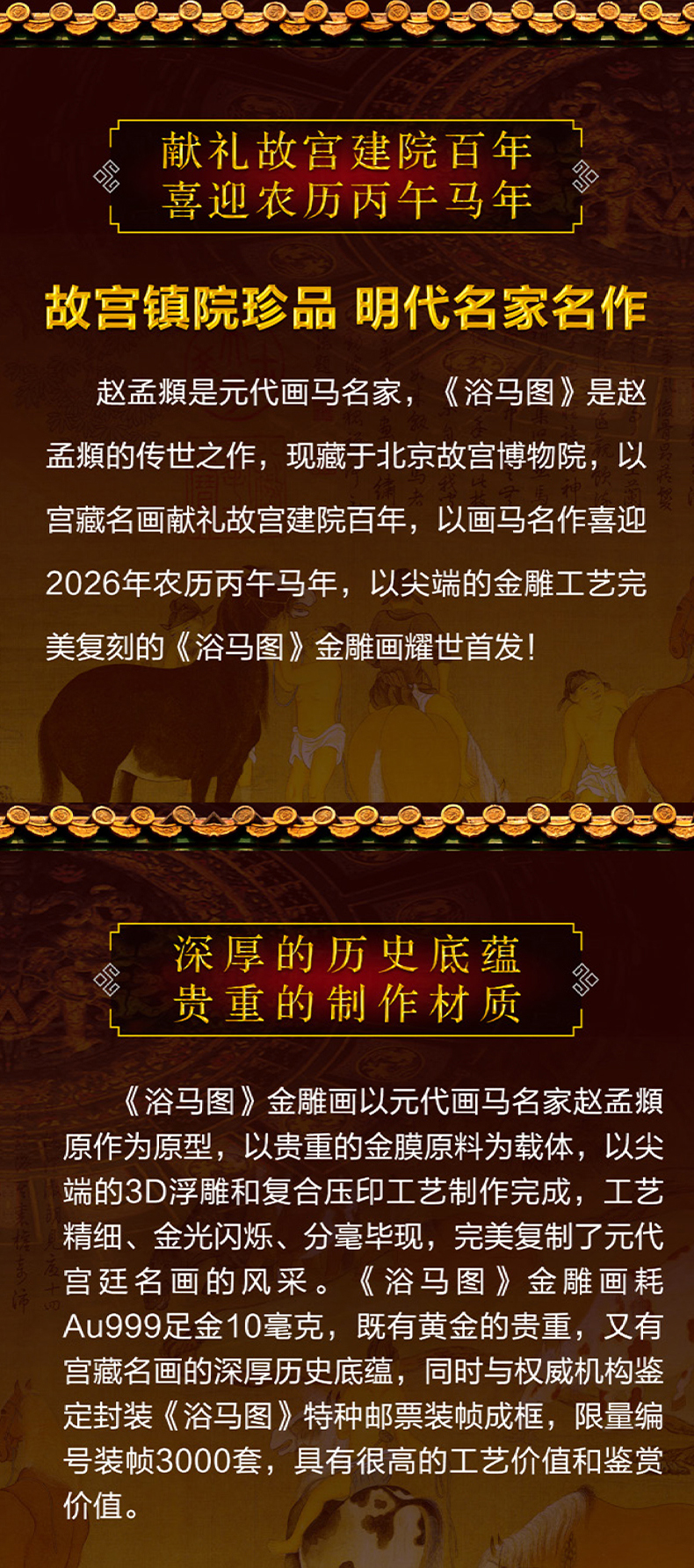 马年必藏!故宫馆藏《浴马图》金雕画 足金立体复刻 宜礼宜藏