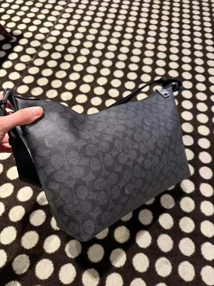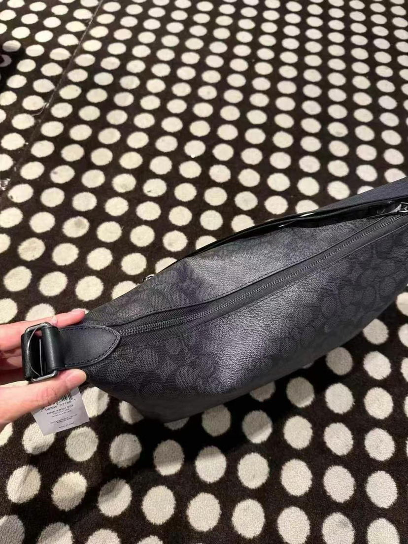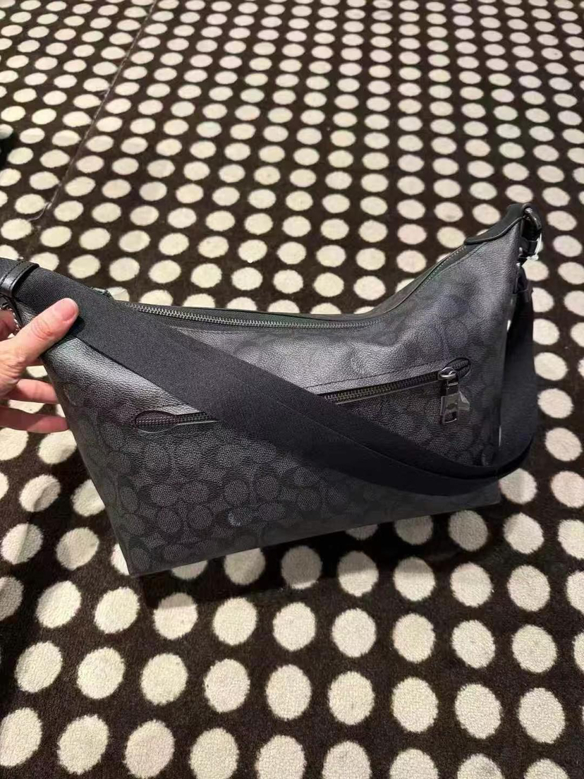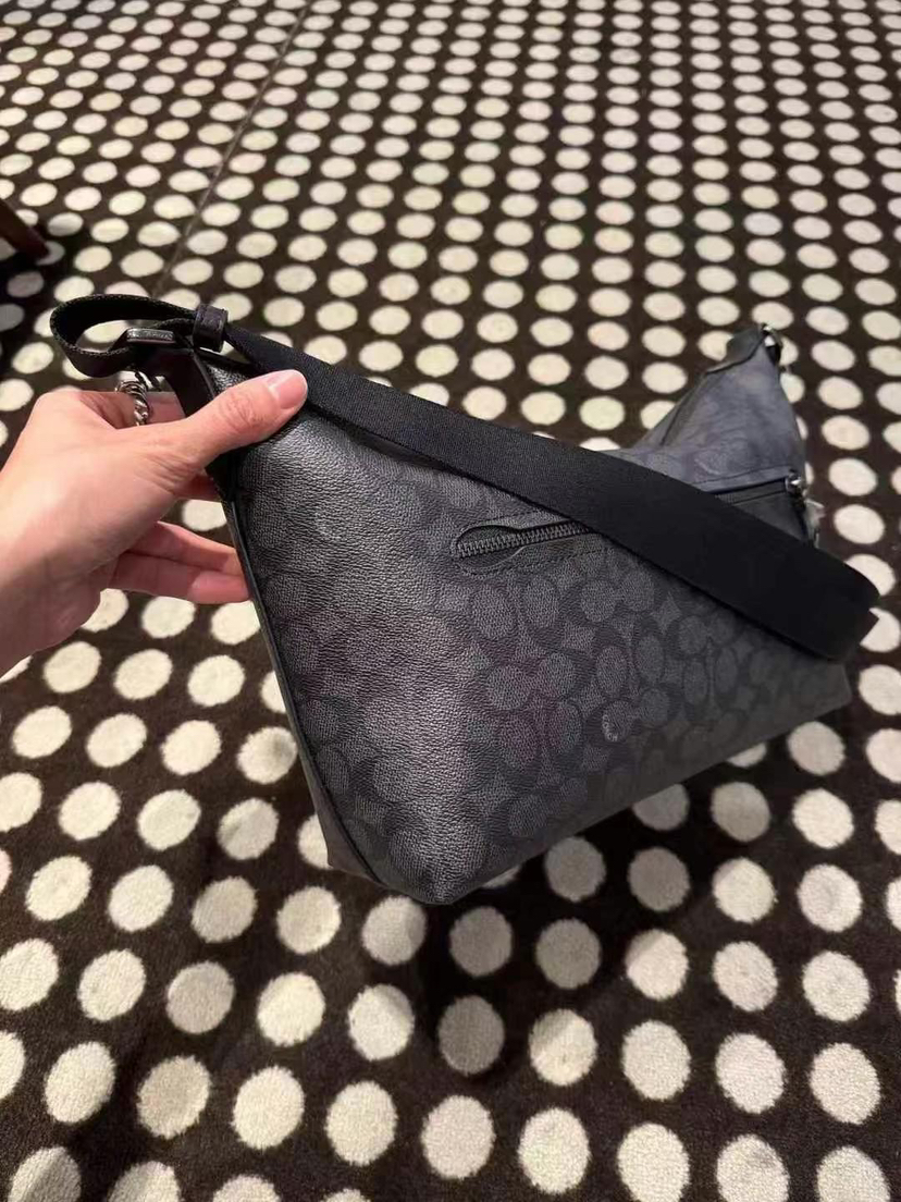 👨🏻超低好价,1250直邮到手!Coach 男士新系列Finn购物袋斜挎包,黑灰色logo材质,超级大容量,内外都有拉链夹层,可商务可休闲的百搭男款斜挎包