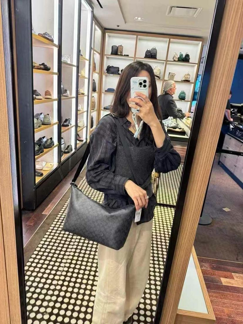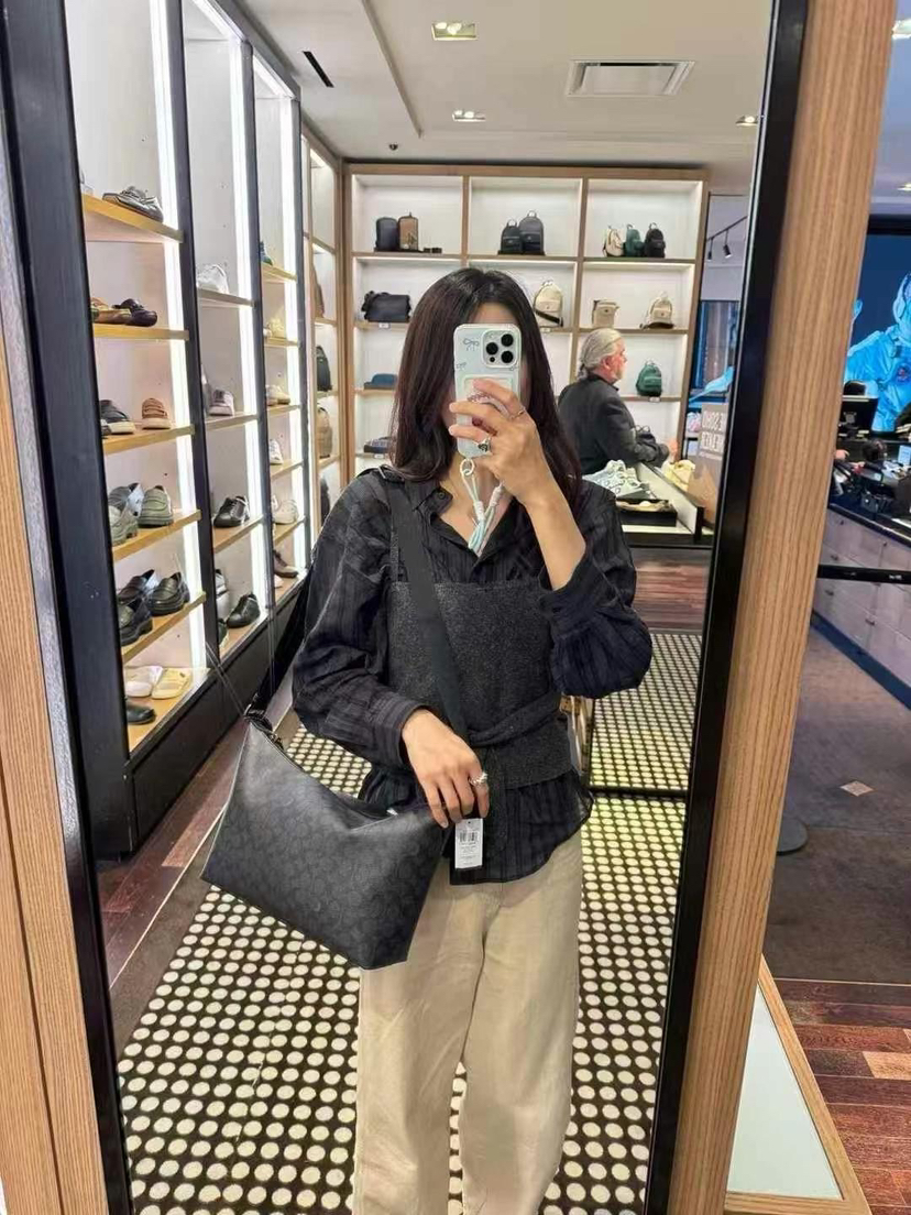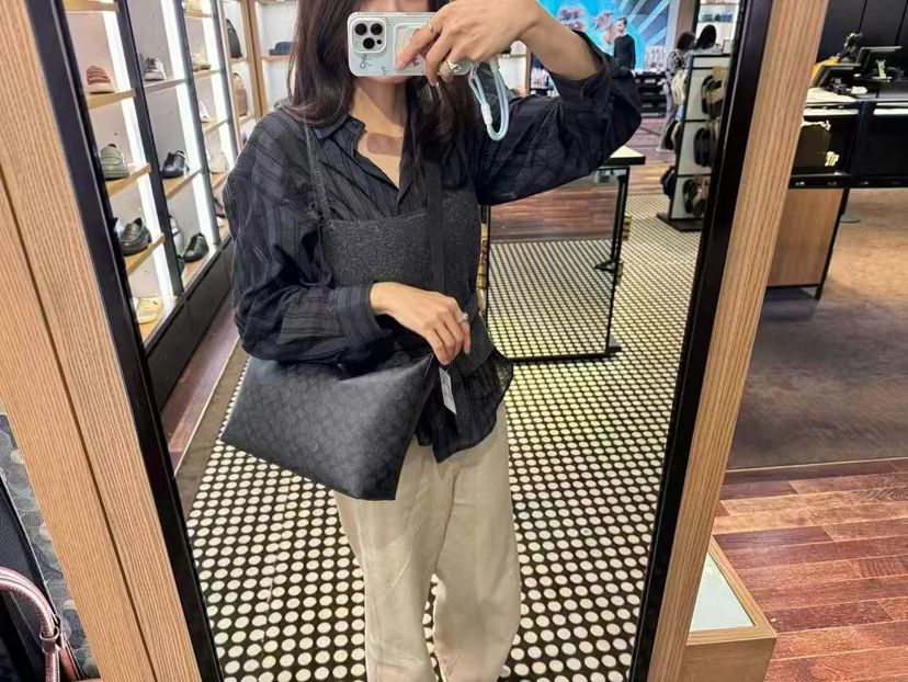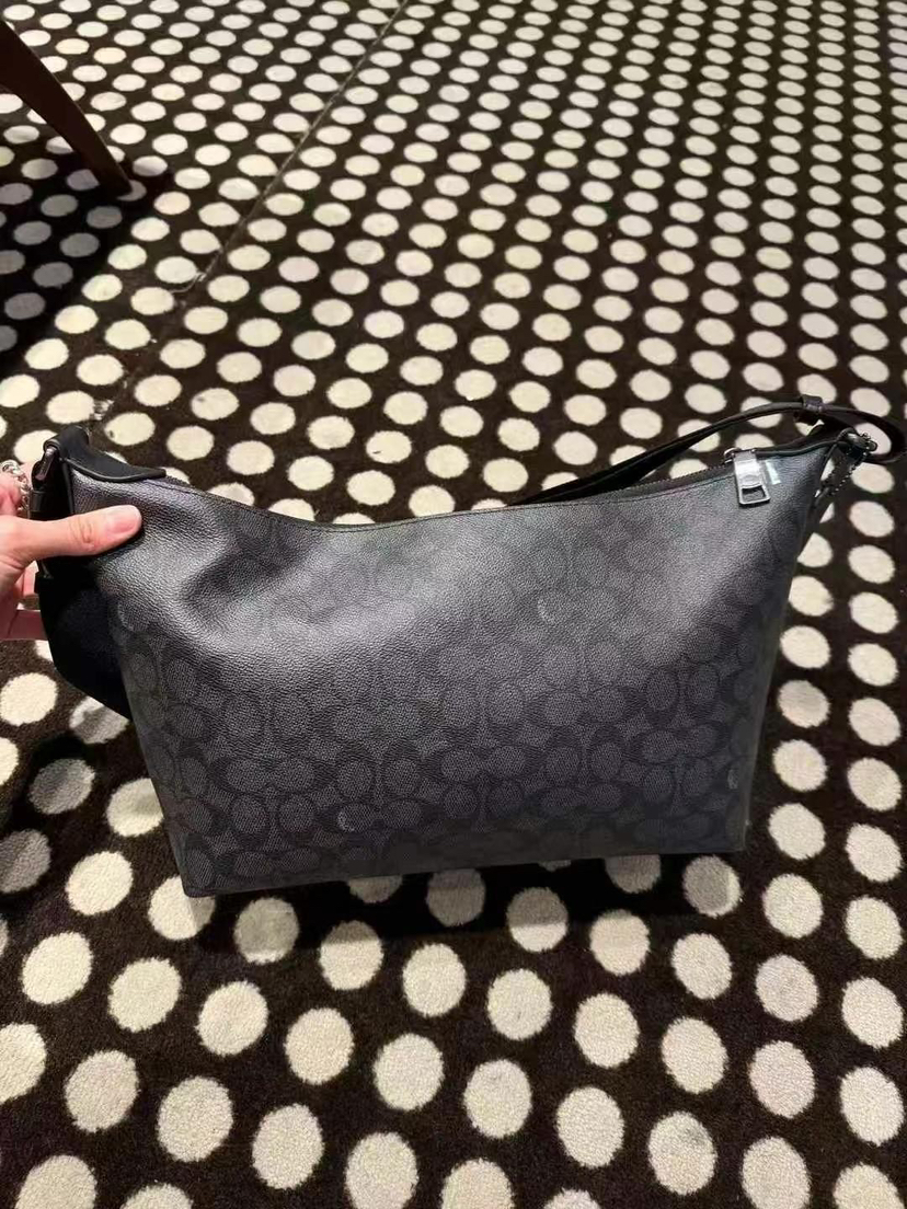 👨🏻超低好价,1250直邮到手!Coach 男士新系列Finn购物袋斜挎包,黑灰色logo材质,超级大容量,内外都有拉链夹层,可商务可休闲的百搭男款斜挎包