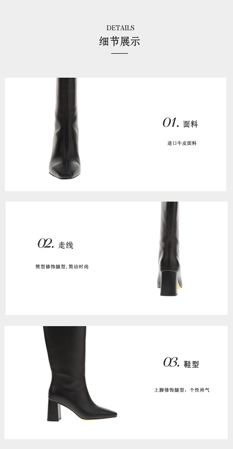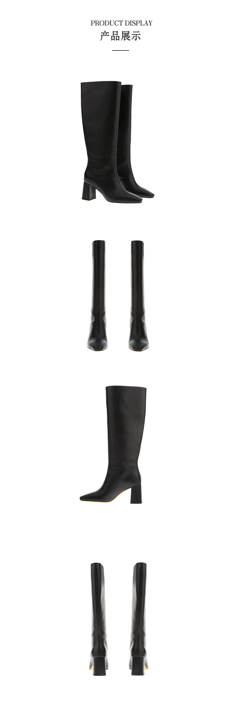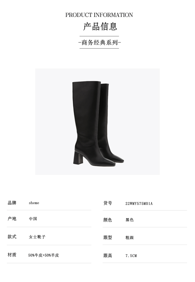 sheme真皮女鞋商务经典简约百搭小方头高跟长靴可定制