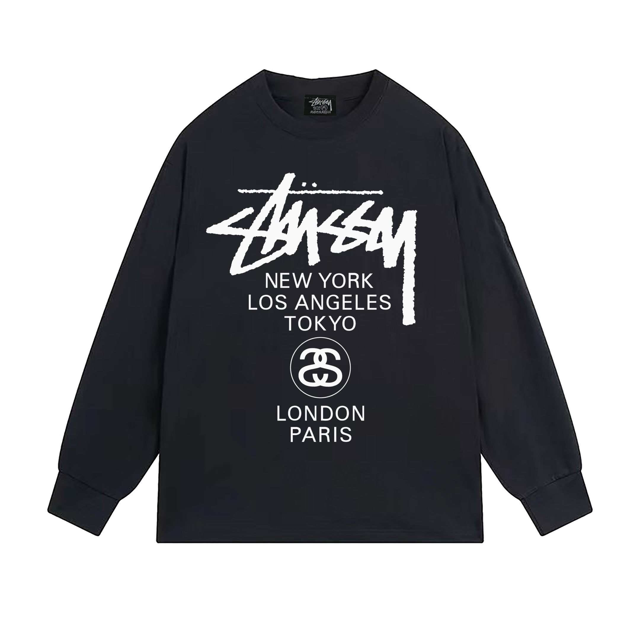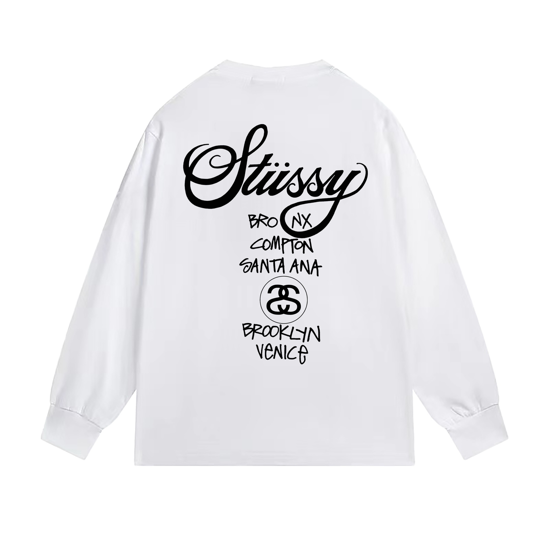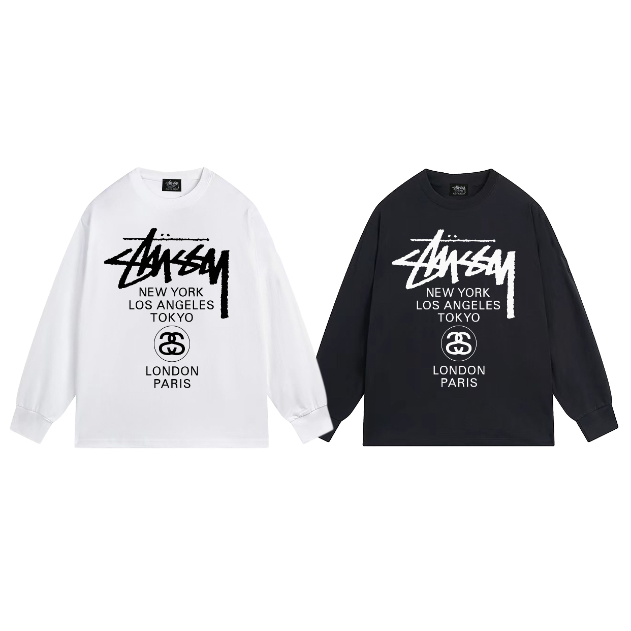 STUSSY 斯图西 经典巡游系列印花情侣圆领长袖T恤-