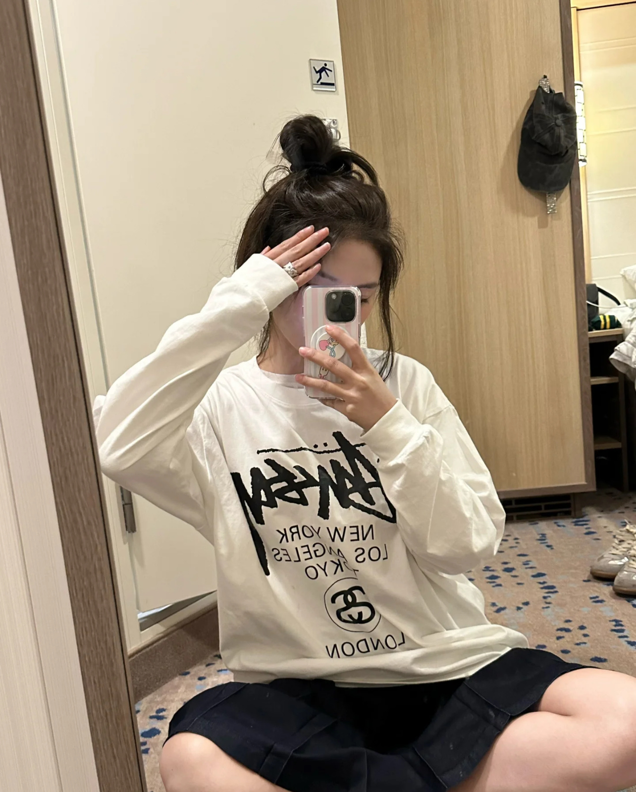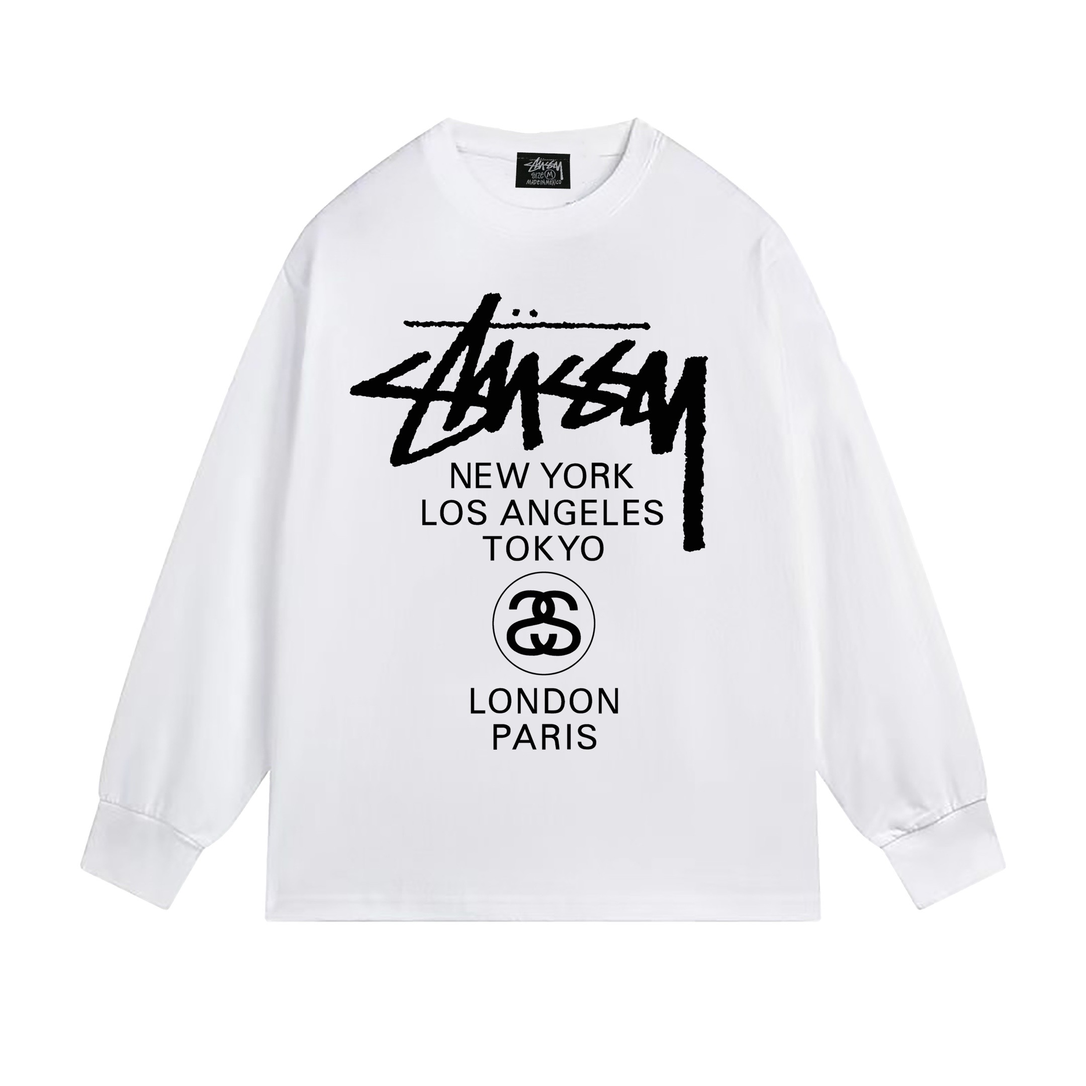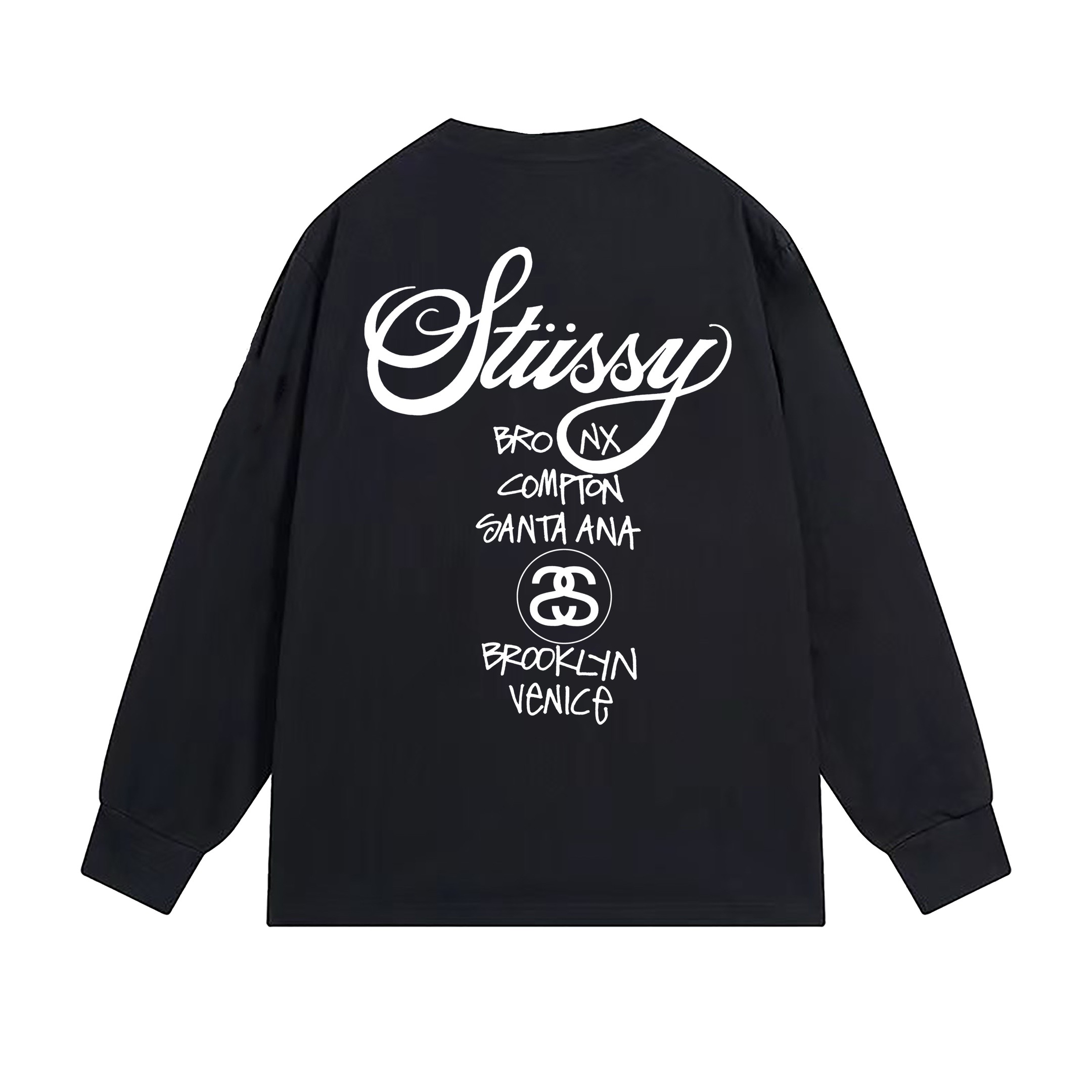 STUSSY 斯图西 经典巡游系列印花情侣圆领长袖T恤-