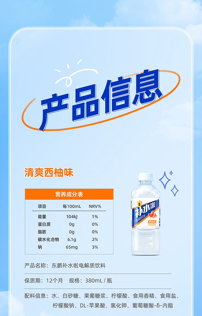 【活动专属】东鹏饮料补水啦电解制水饮料380ml*6瓶