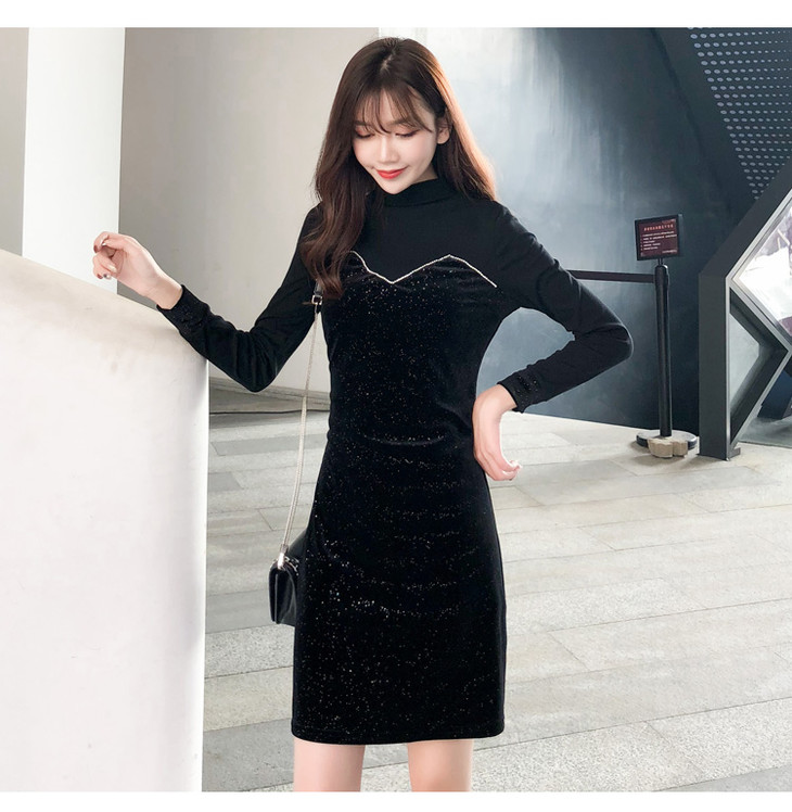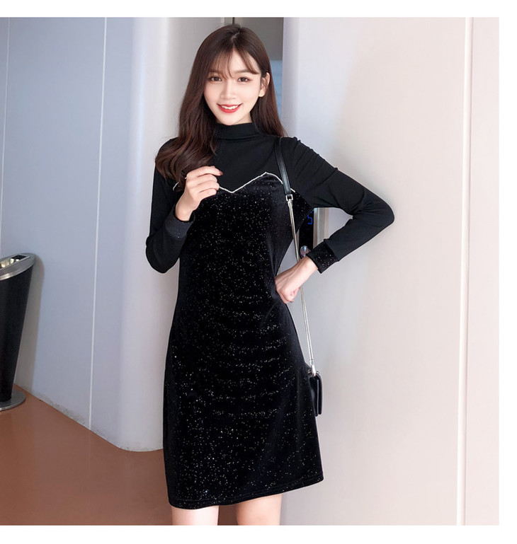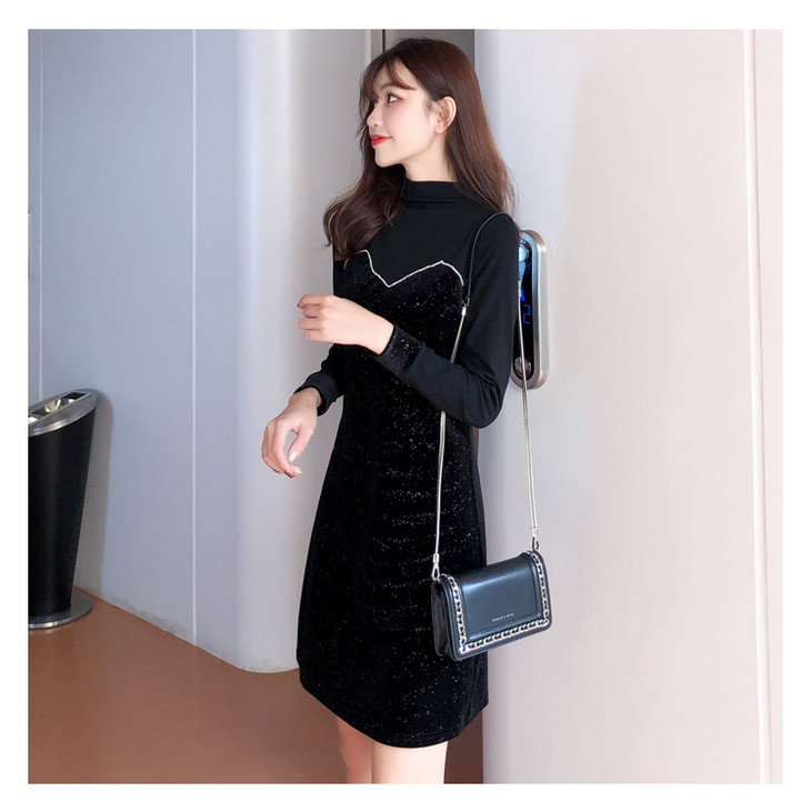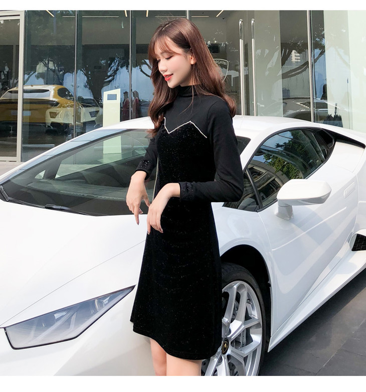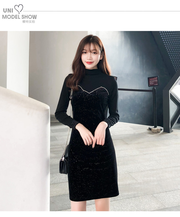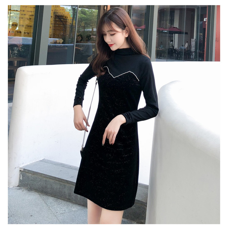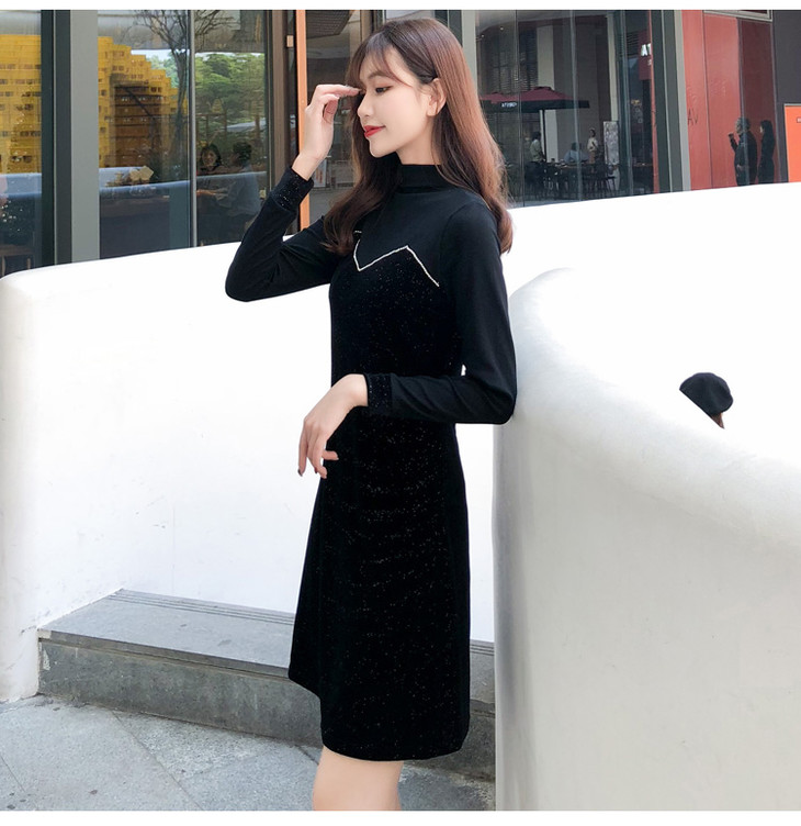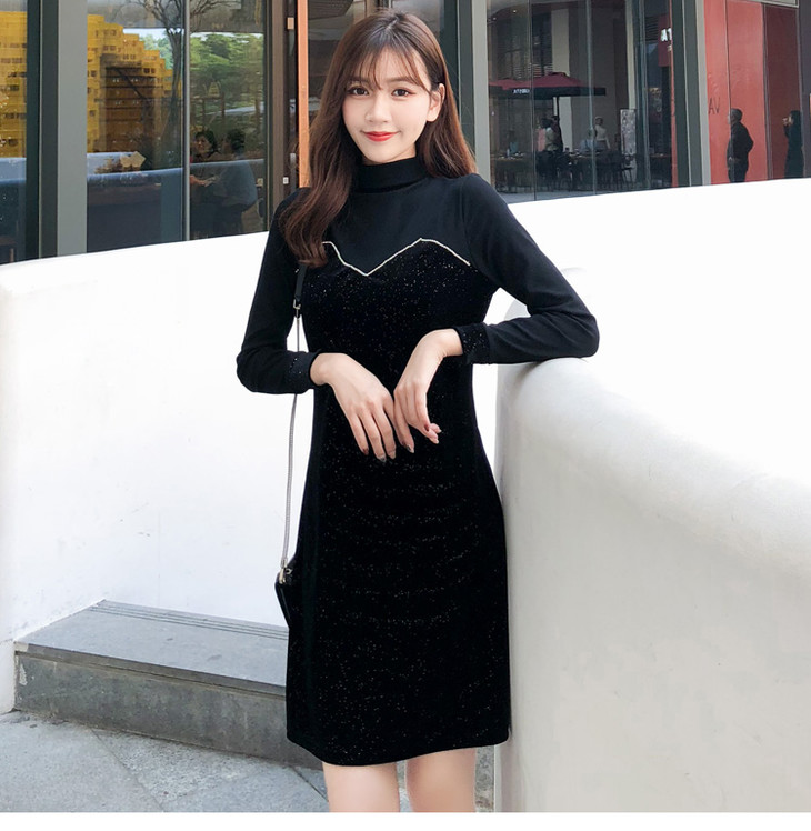 【服饰鞋包】小众连衣裙女秋冬复古打底针织金丝绒裙子礼服