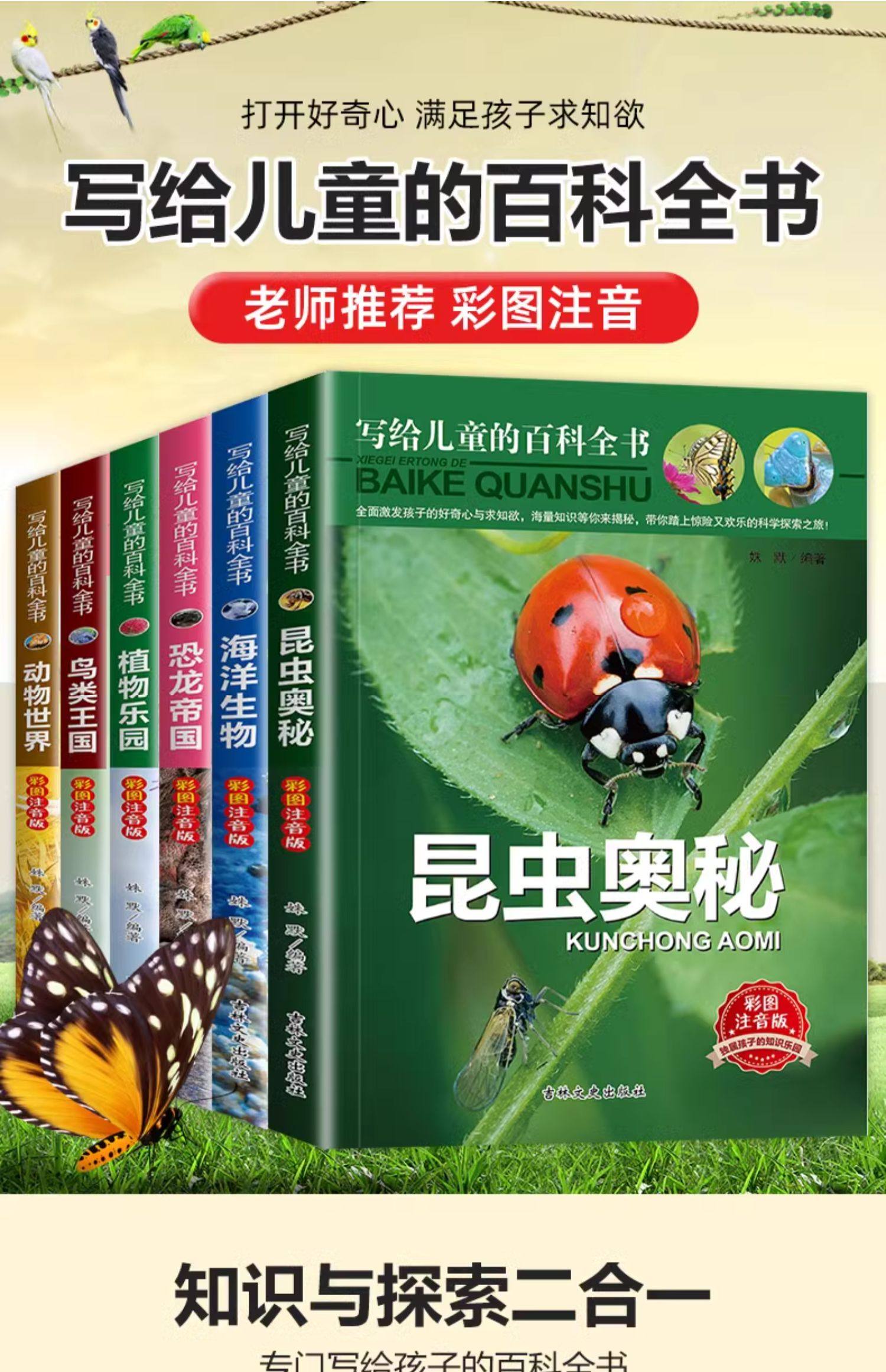 全套6册 儿童昆虫百科全书 彩图注音版昆虫百科大全书小学生科普类书籍小学科学读物百科全书昆虫图鉴