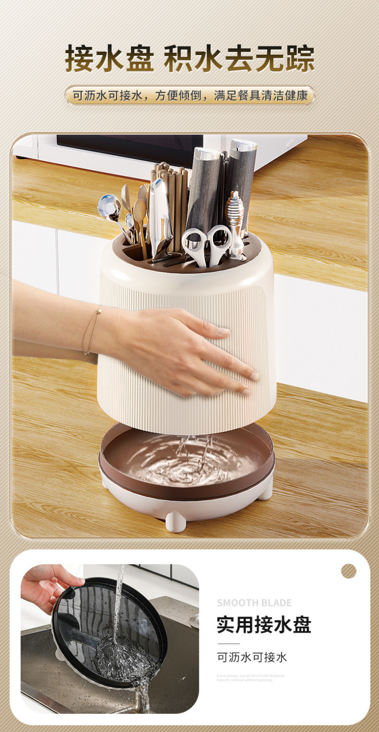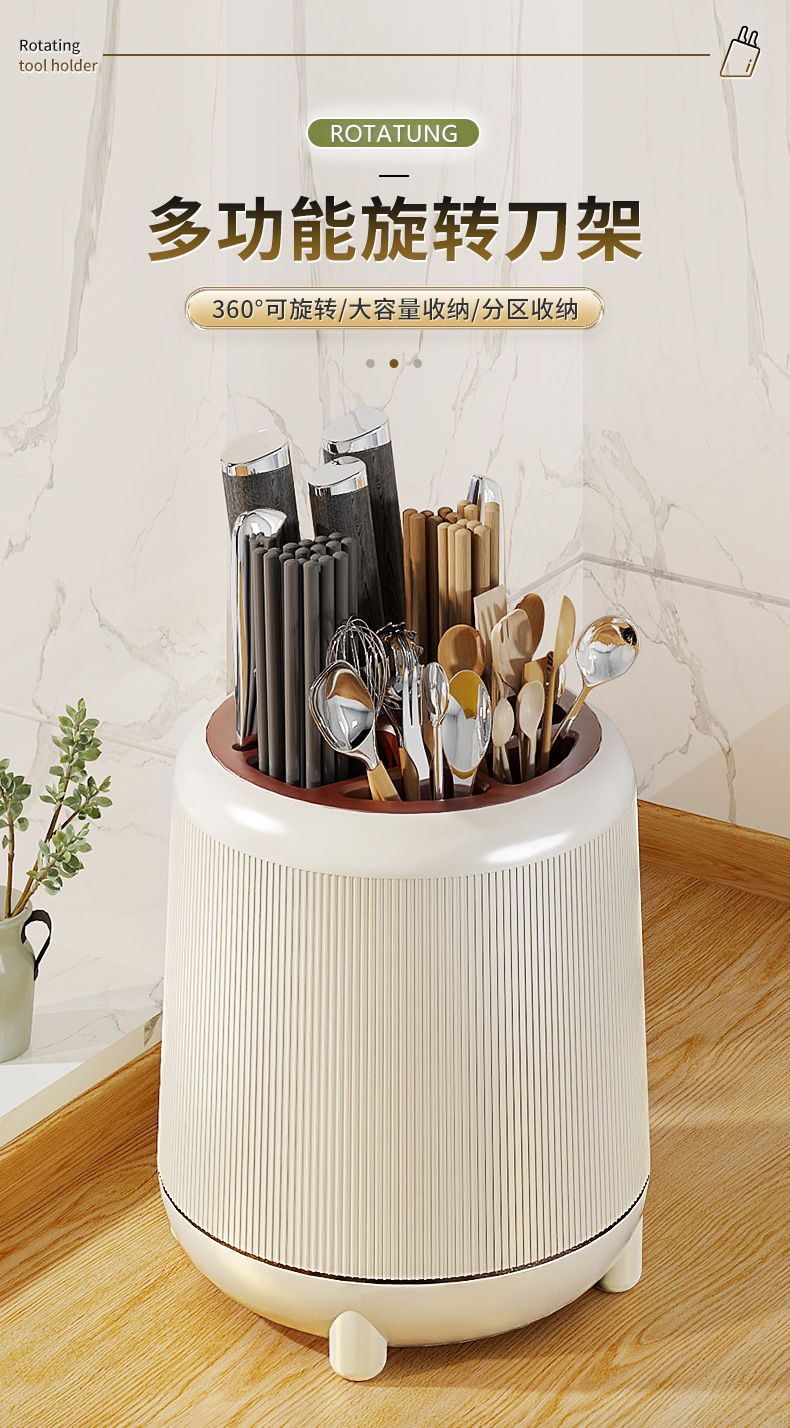 可旋转刀架厨房置物架筷子收纳筒筷子收纳盒刀具收纳架台面多功能