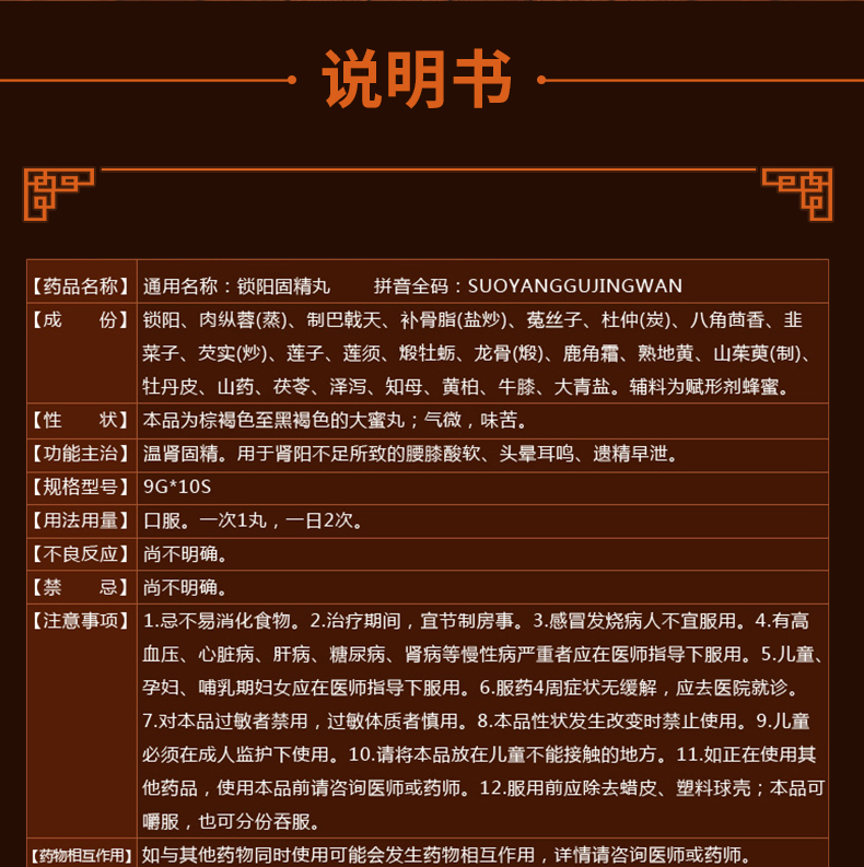 同仁堂锁阳固精丸锁阳丸肾虚遗精早泄阳亏补肾中药金锁固精精丸