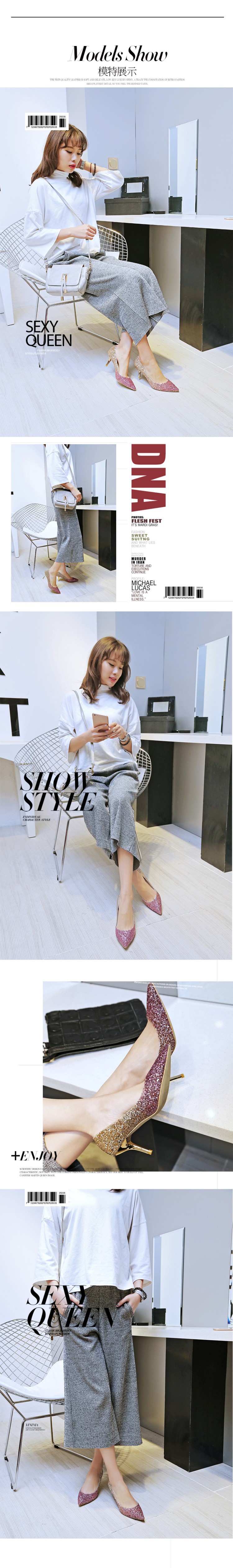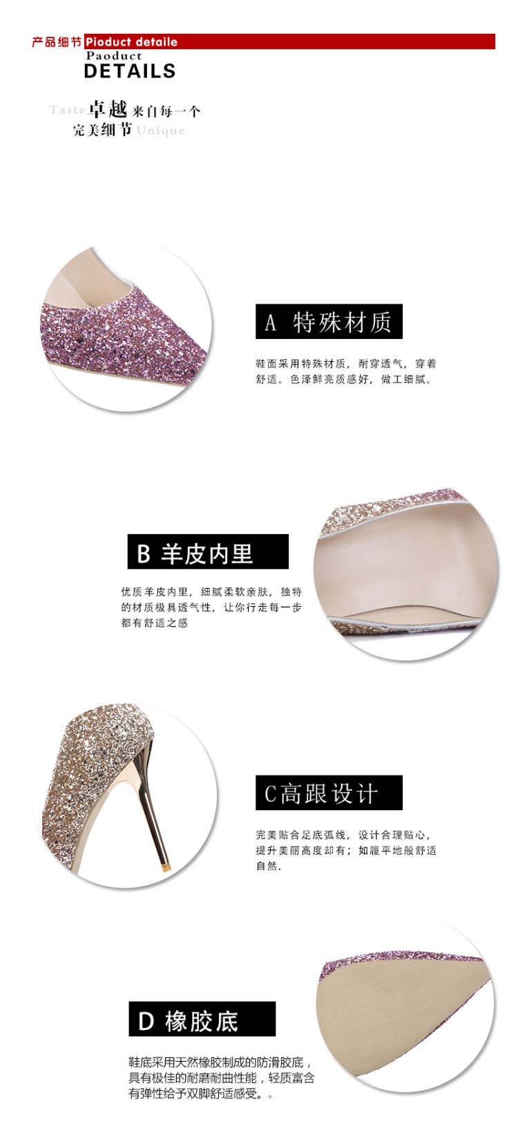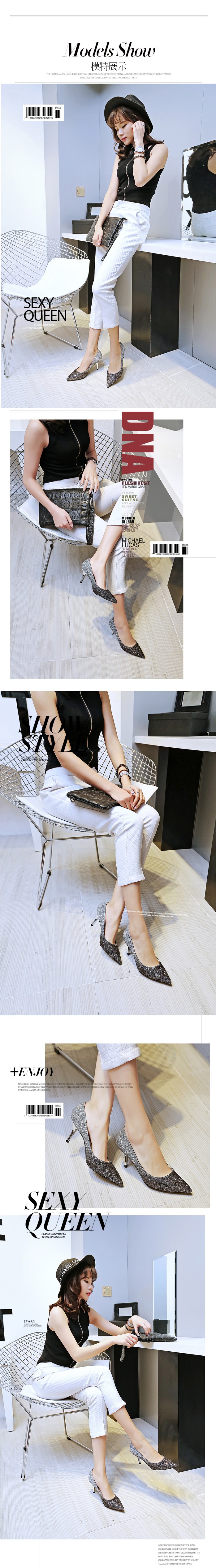 【服饰鞋包】春季新款欧美流行女鞋亮片尖头高跟鞋新款细跟夜店单鞋