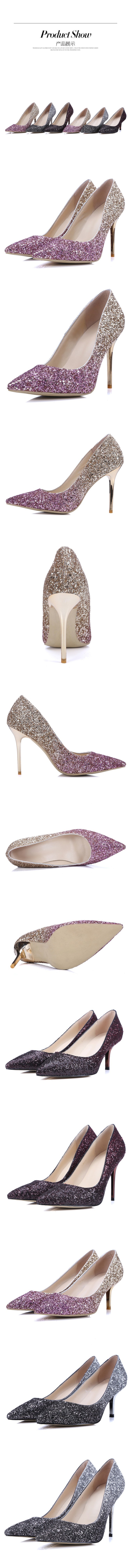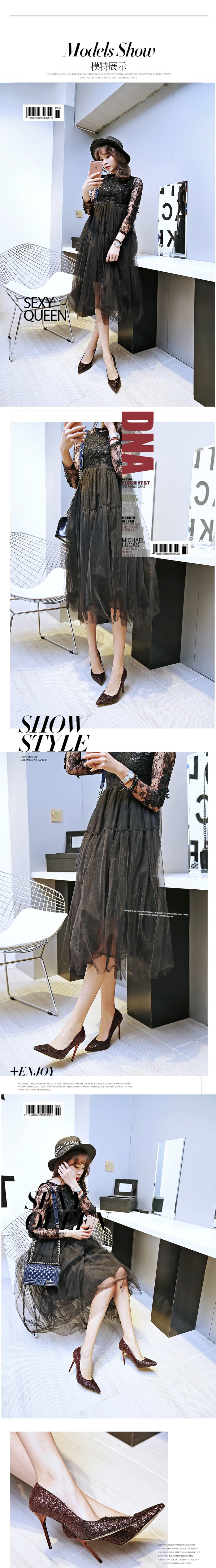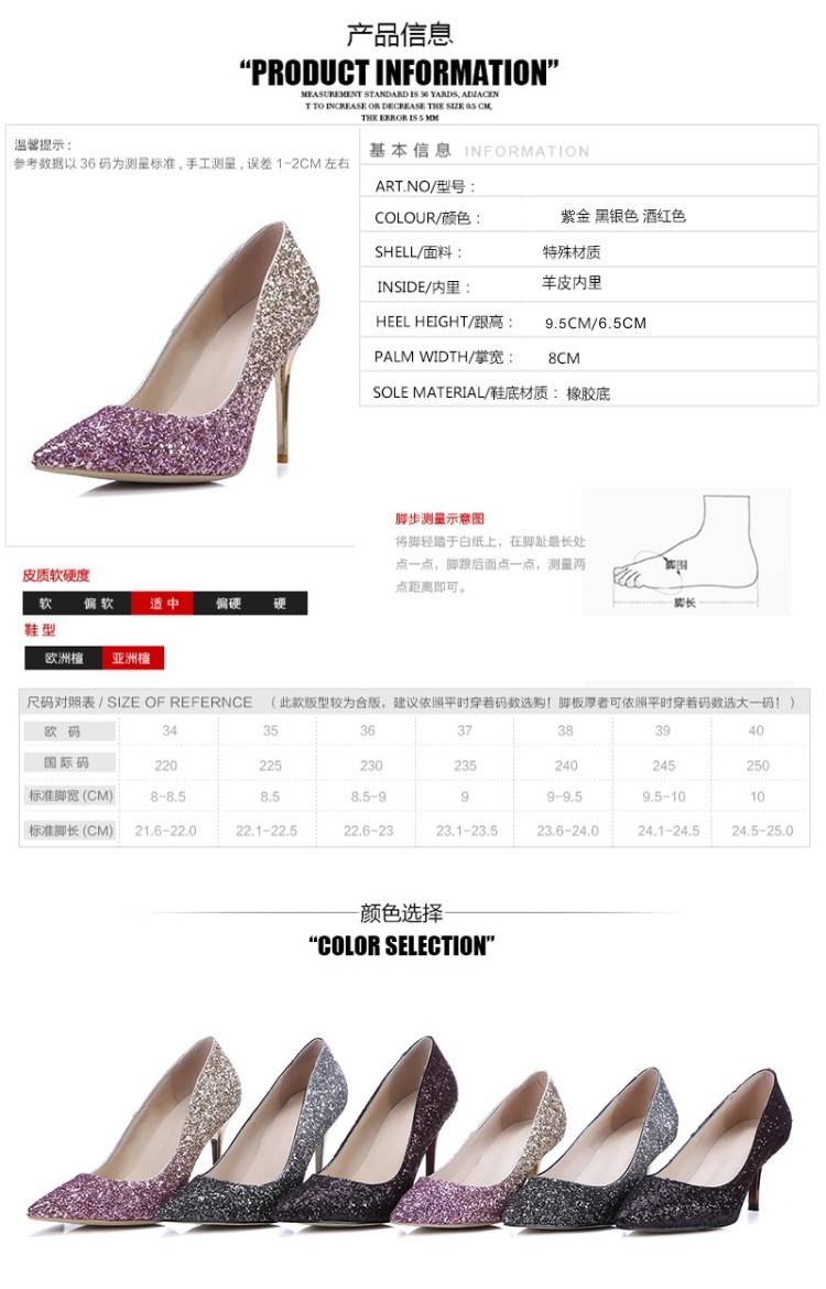 【服饰鞋包】春季新款欧美流行女鞋亮片尖头高跟鞋新款细跟夜店单鞋