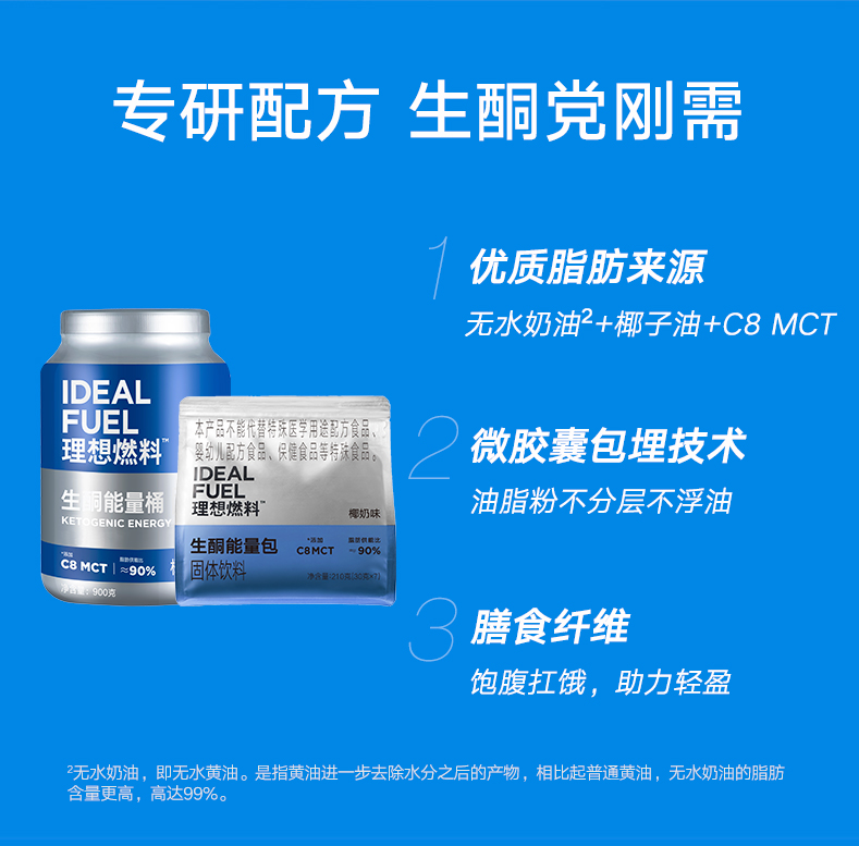 FX 理想燃料| 防弹能量包生酮油脂粉代餐饱腹供能MCT能量大蓝桶900g*01桶装