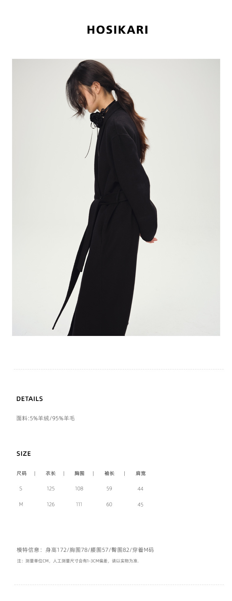 HOSIKARI|HO22AW29BK 黑色羊绒⼤⾐外套 [ 黑 ]