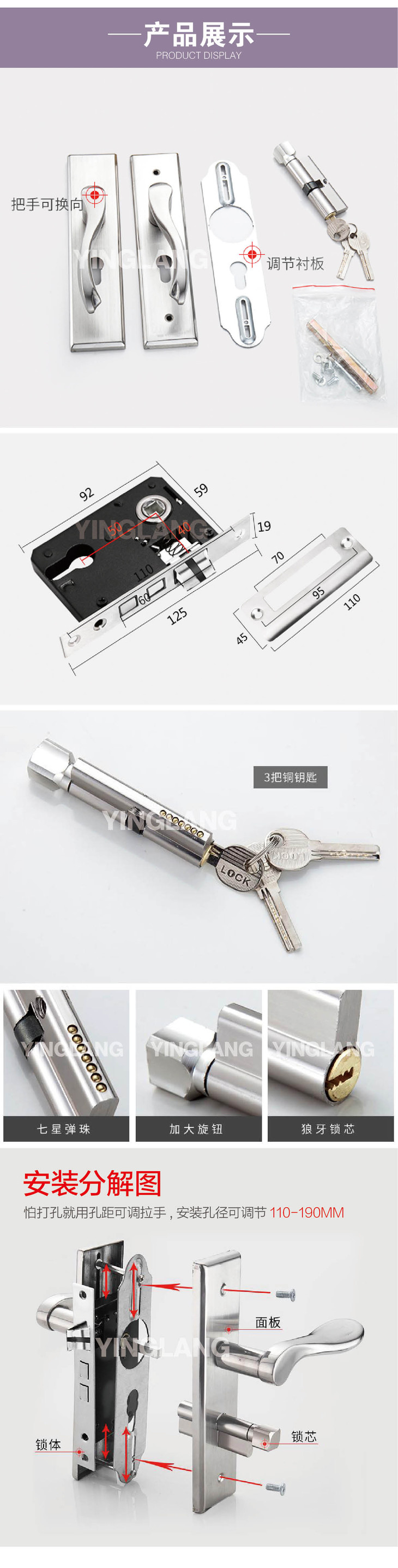 〖B311〗8882大58铜可调孔距双舌执手锁